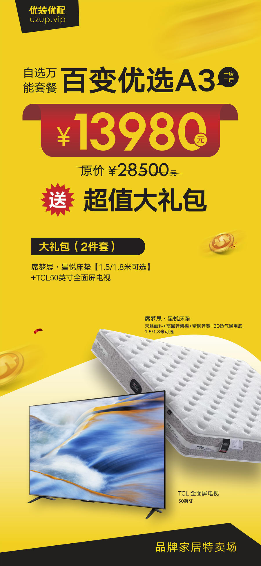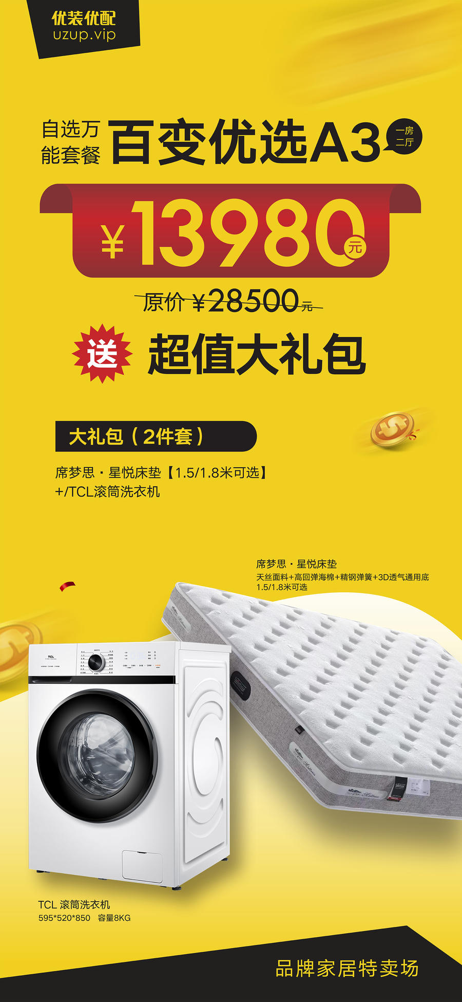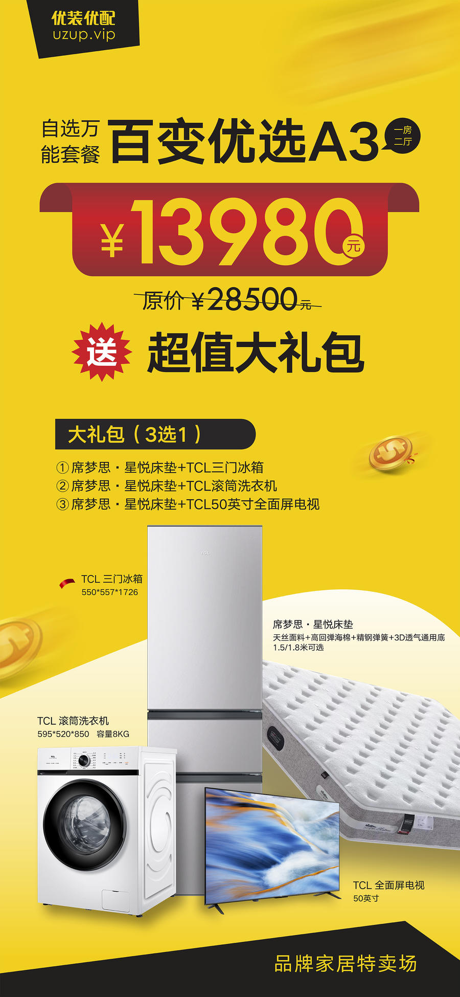 A3高性价比家居家电套餐大礼包(需随A3套餐同时下单,不支持单独购买)