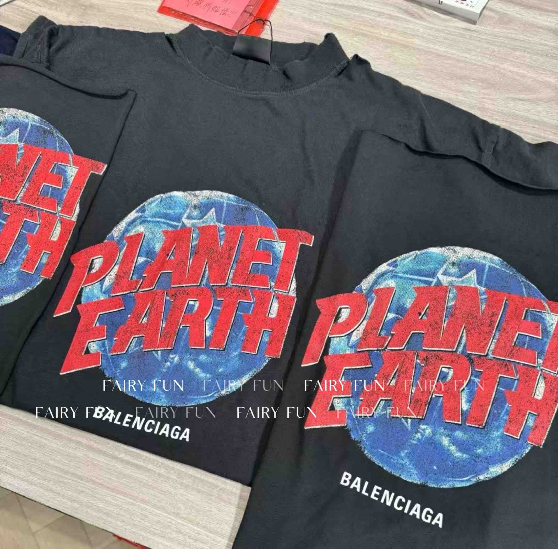 BA-T 地球印花做旧T恤