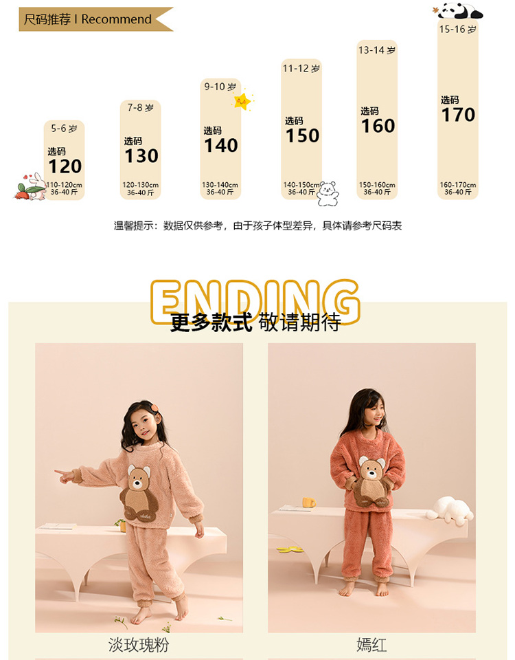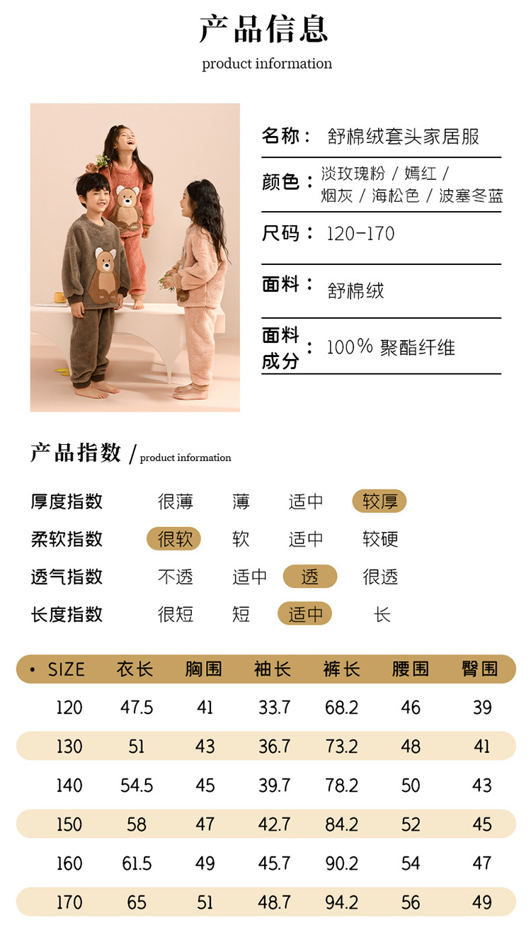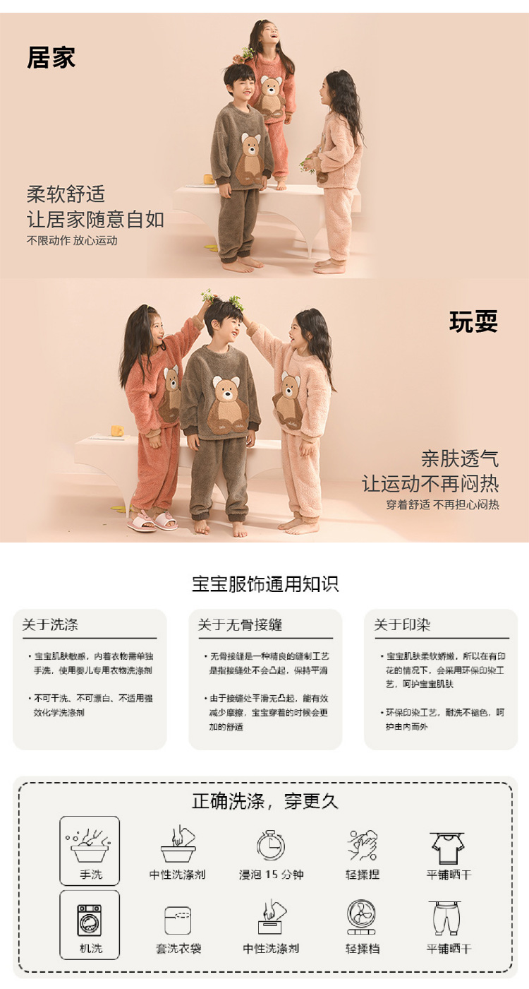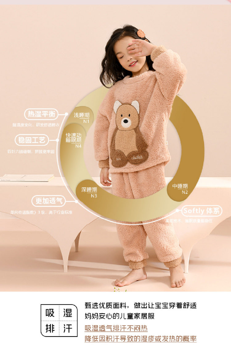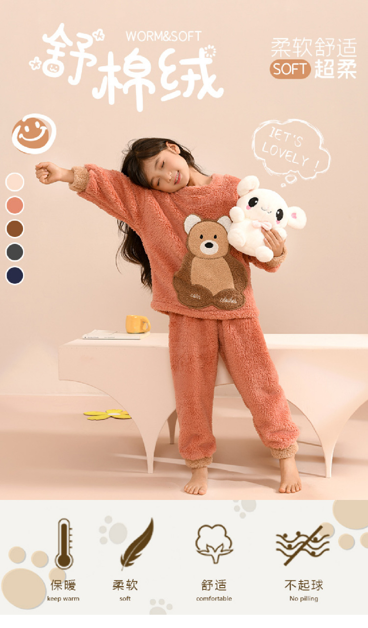 儿童睡衣秋冬套装 男女中大童加厚舒棉绒儿童家居服