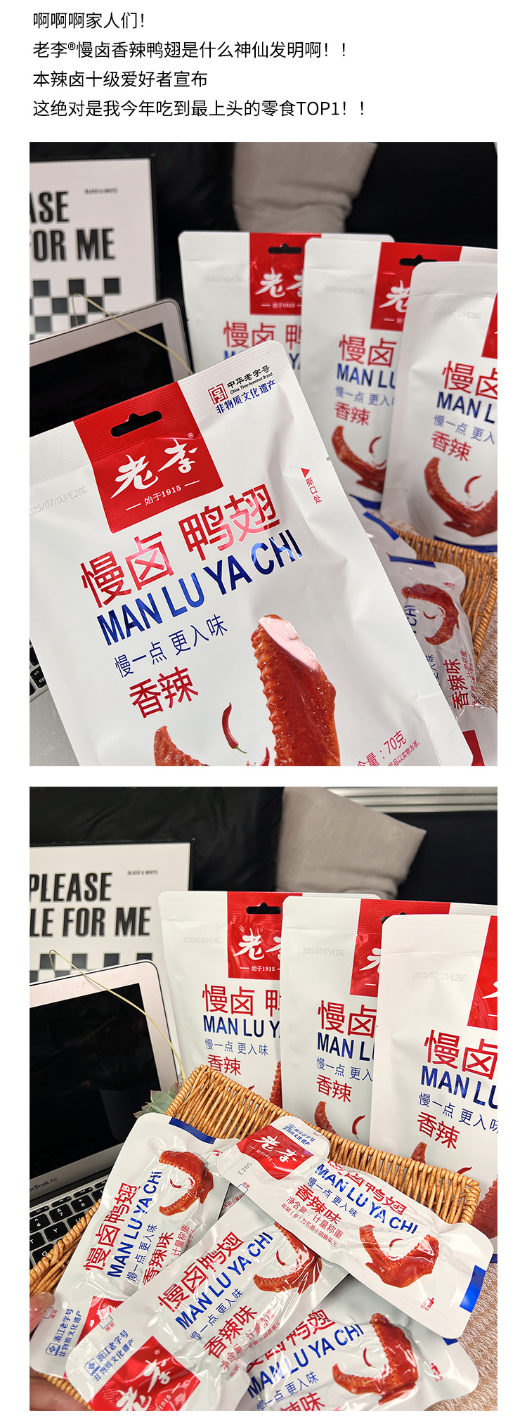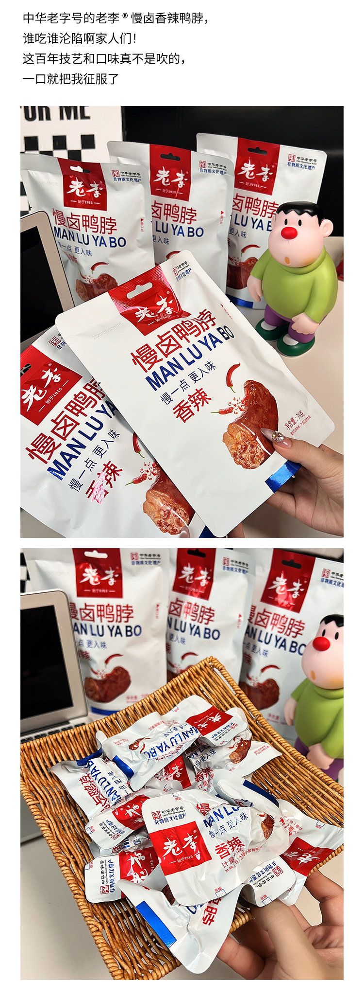 【老李慢卤鸭系列】鸭脖温州特产鸭脖子开袋即食卤味休闲解馋熟零食小吃