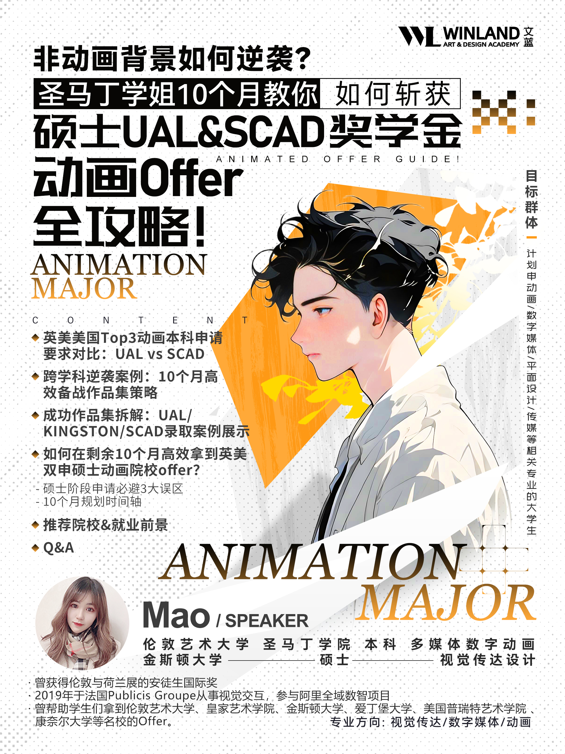 【9.28艺术】非动画背景如何逆袭?圣马丁学姐10个月教你如何斩获硕士UAL&SCAD 奖学金动画Offer全攻略!