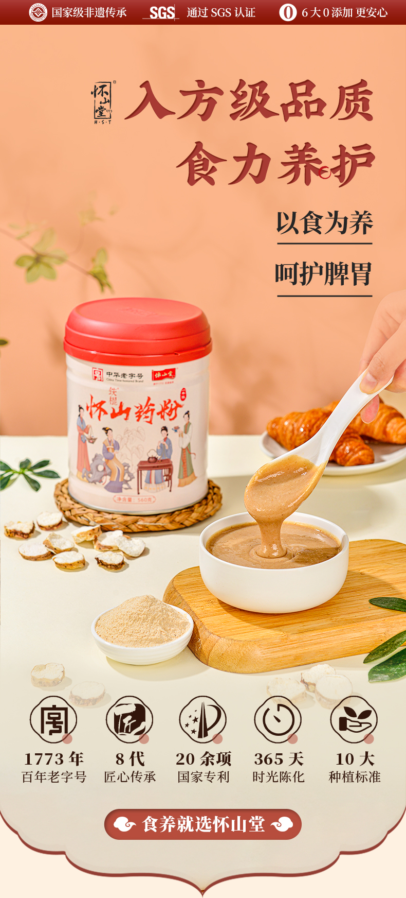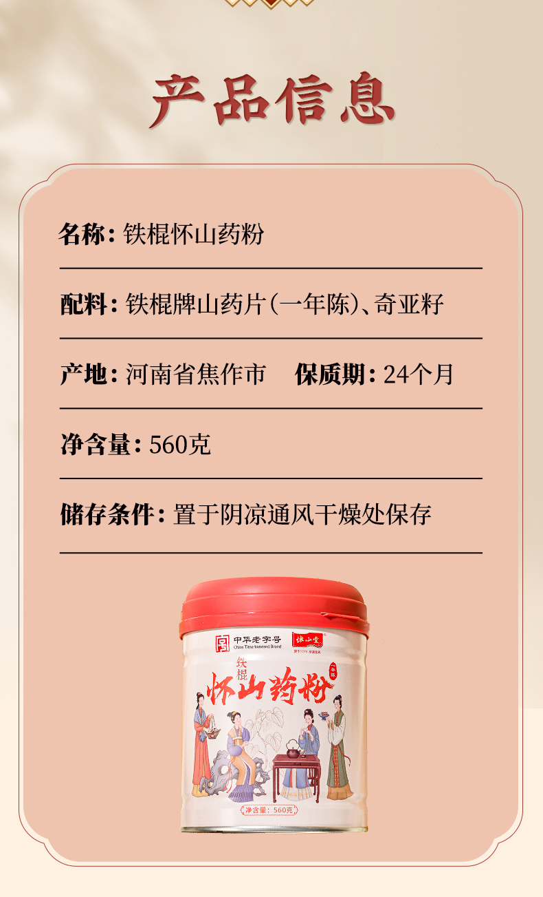怀山堂 一年陈铁棍山药粉560g罐装温县垆土铁棍怀山药熟粉中华老字号非遗山药粉(2罐礼盒装)