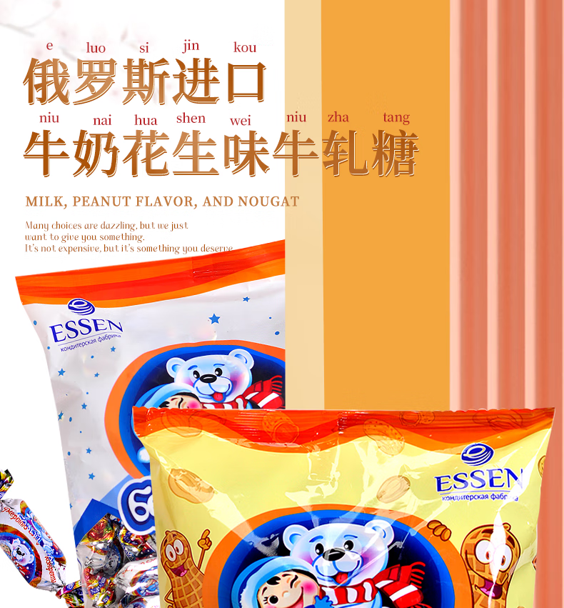罗斯利德牌俄吉宝系列牛轧糖花生牛奶味402g/064535 奶香四溢唇齿留香
