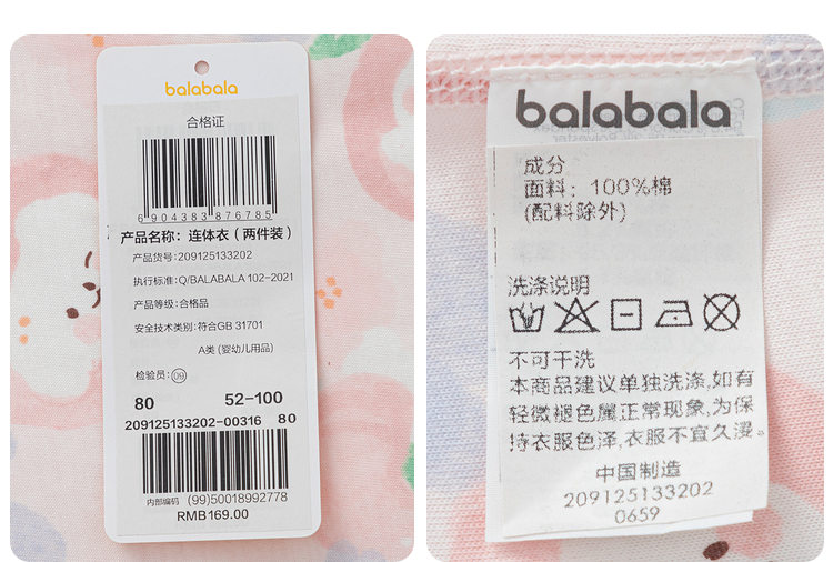 巴拉巴拉童装婴儿连体衣宝宝衣服新生儿哈衣爬服2025年新款两件装