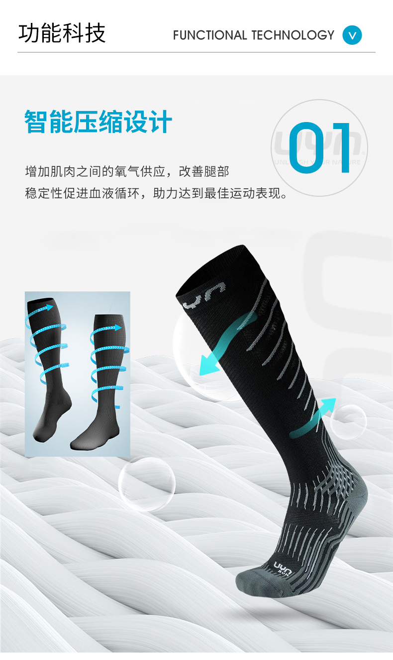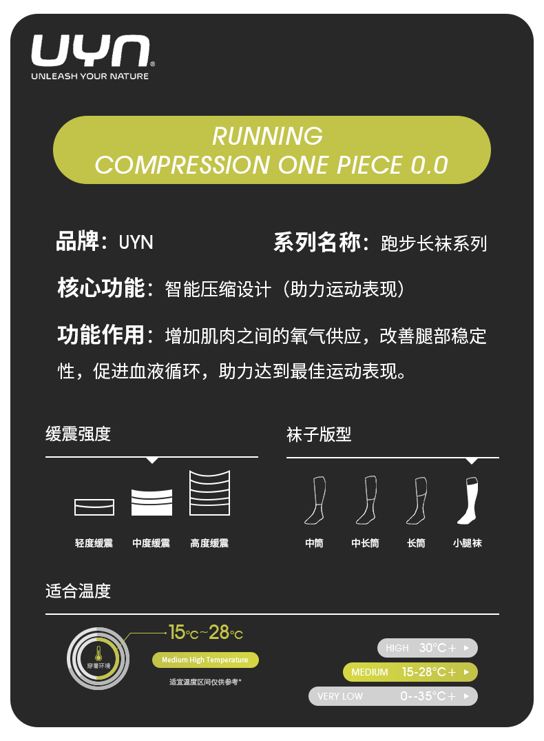 UYN跑步压缩一体长袜男女款冬季保暖防滑减震长筒袜耐磨速干高帮袜
