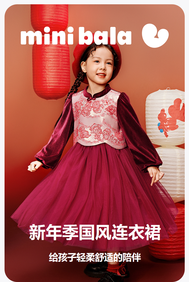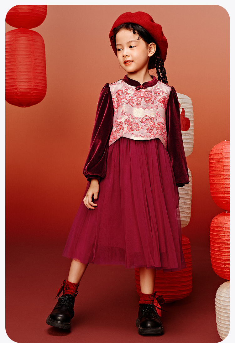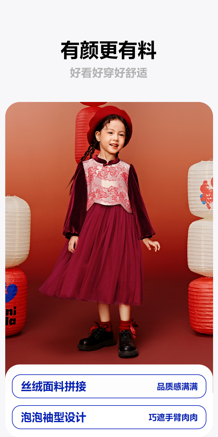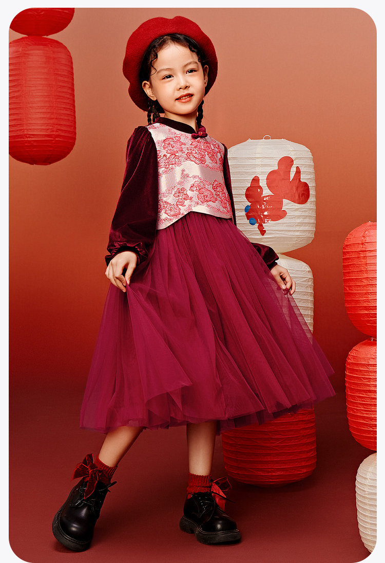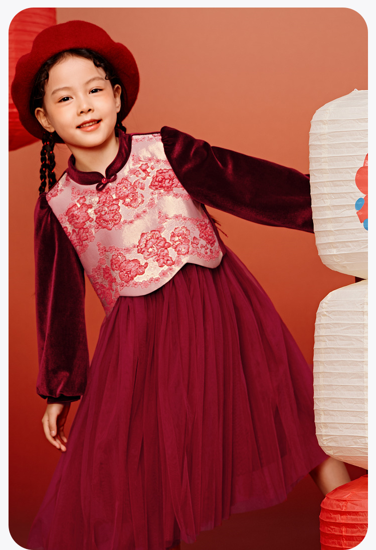【新年季】迷你巴拉女童亲肤柔软新中式夹棉甜美网纱连衣裙