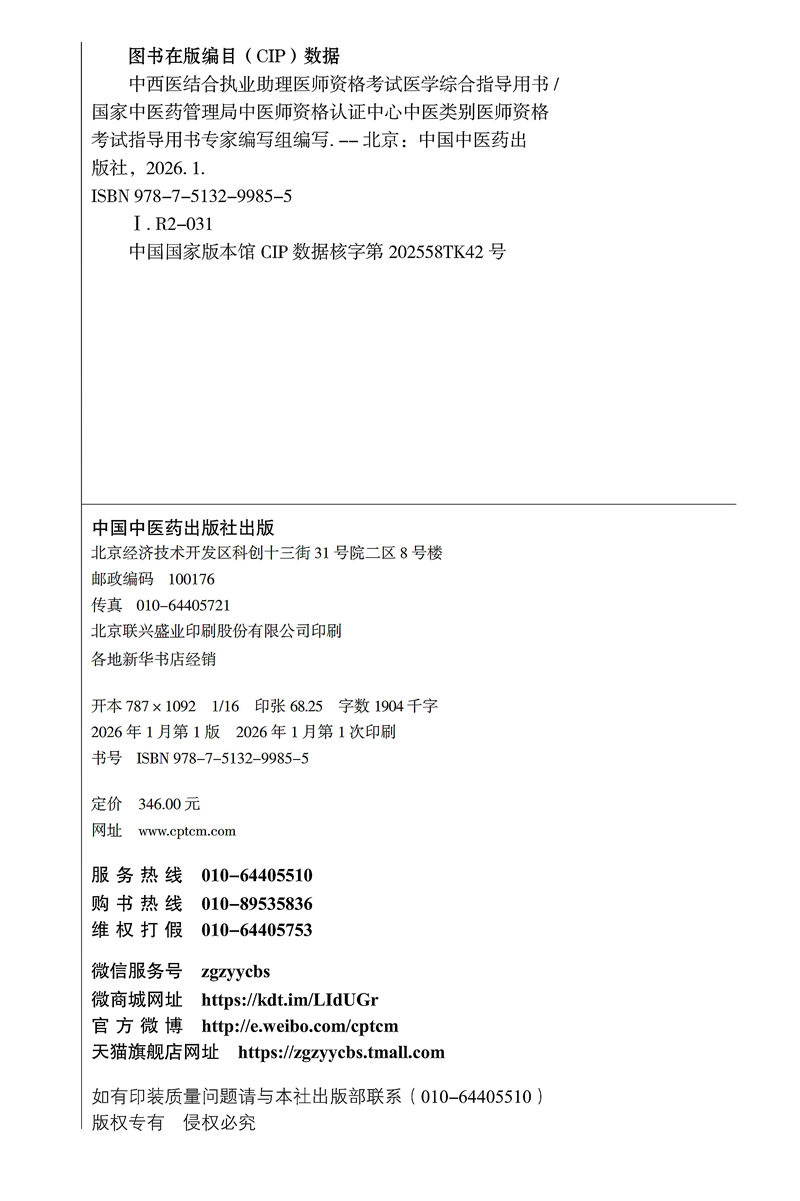 书名:2026年中西医结合执业助理医师资格考试医学综合笔试指导用书