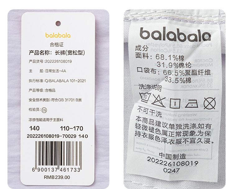 【商场同款】巴拉巴拉女童休闲裤儿童裤子2026夏薄款大童长裤凉感