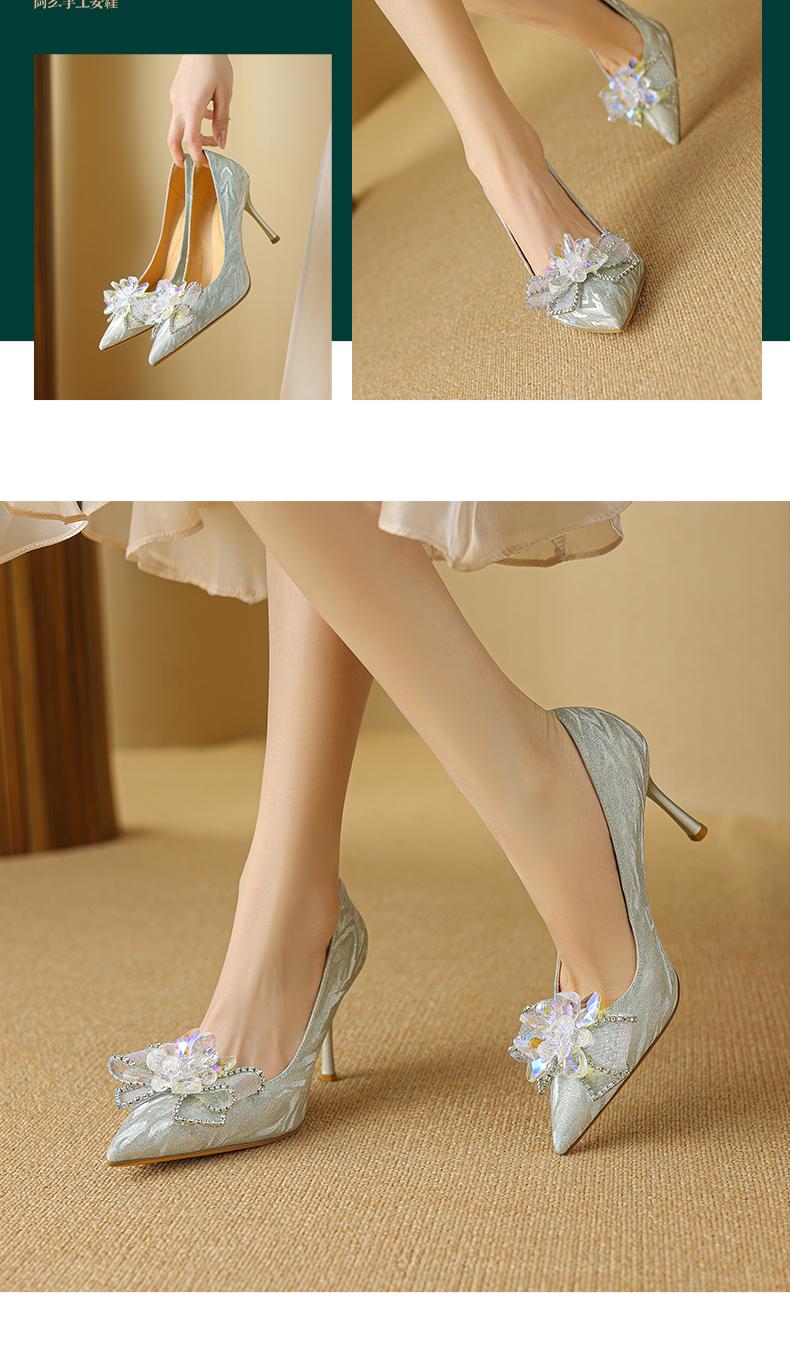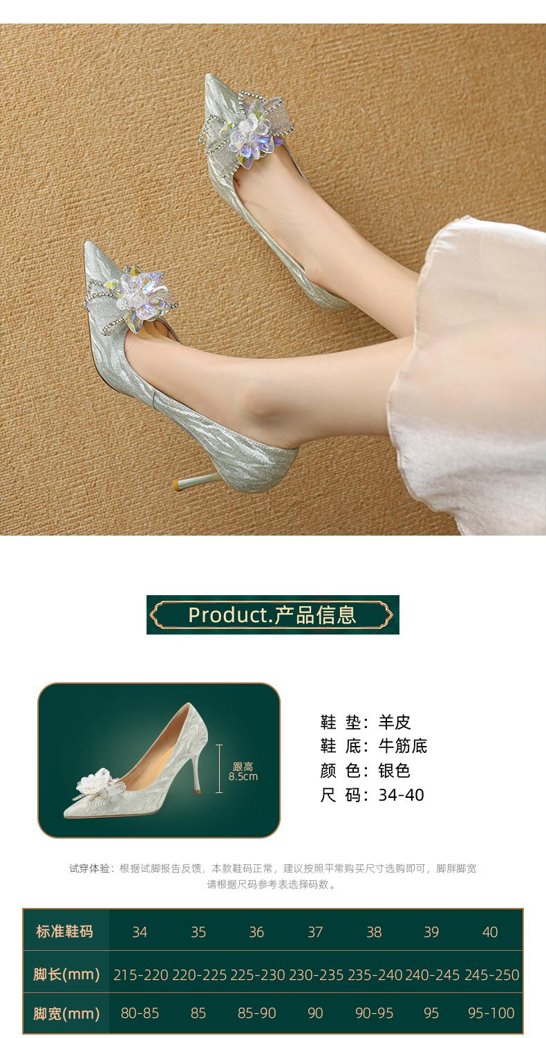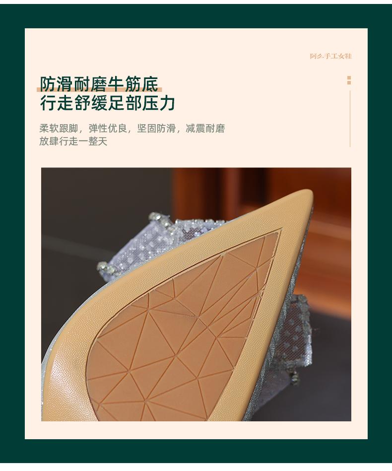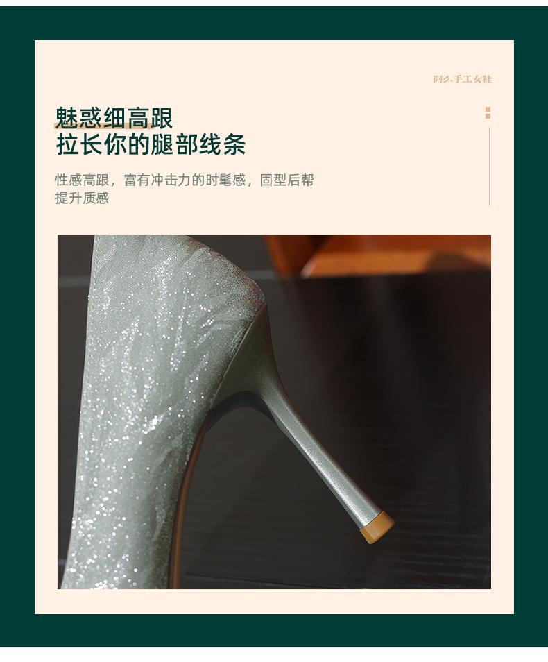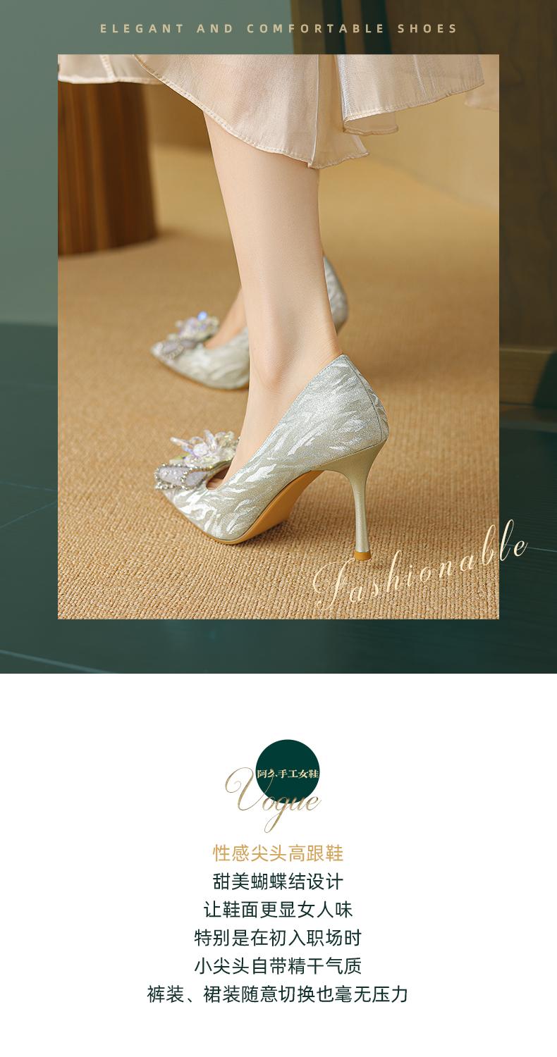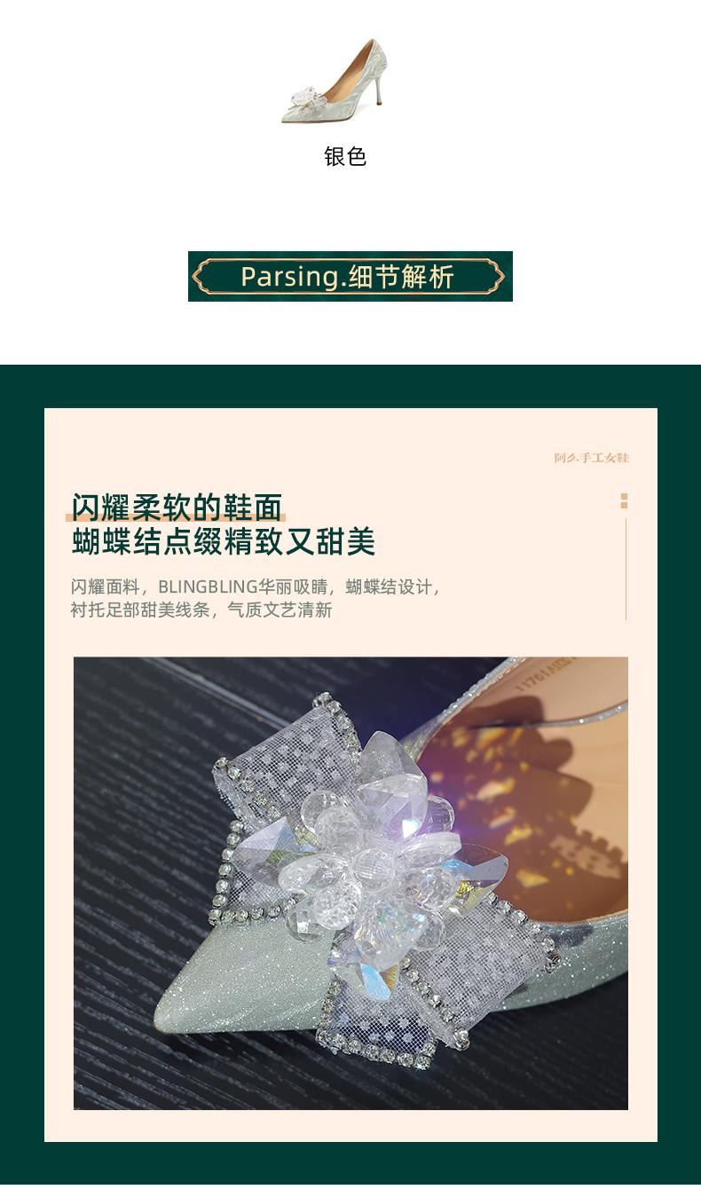 阿么手工女鞋水晶婚鞋宴会百搭细跟8.5CM法式亮片新娘高跟鞋尖头