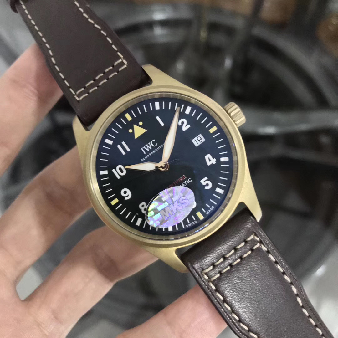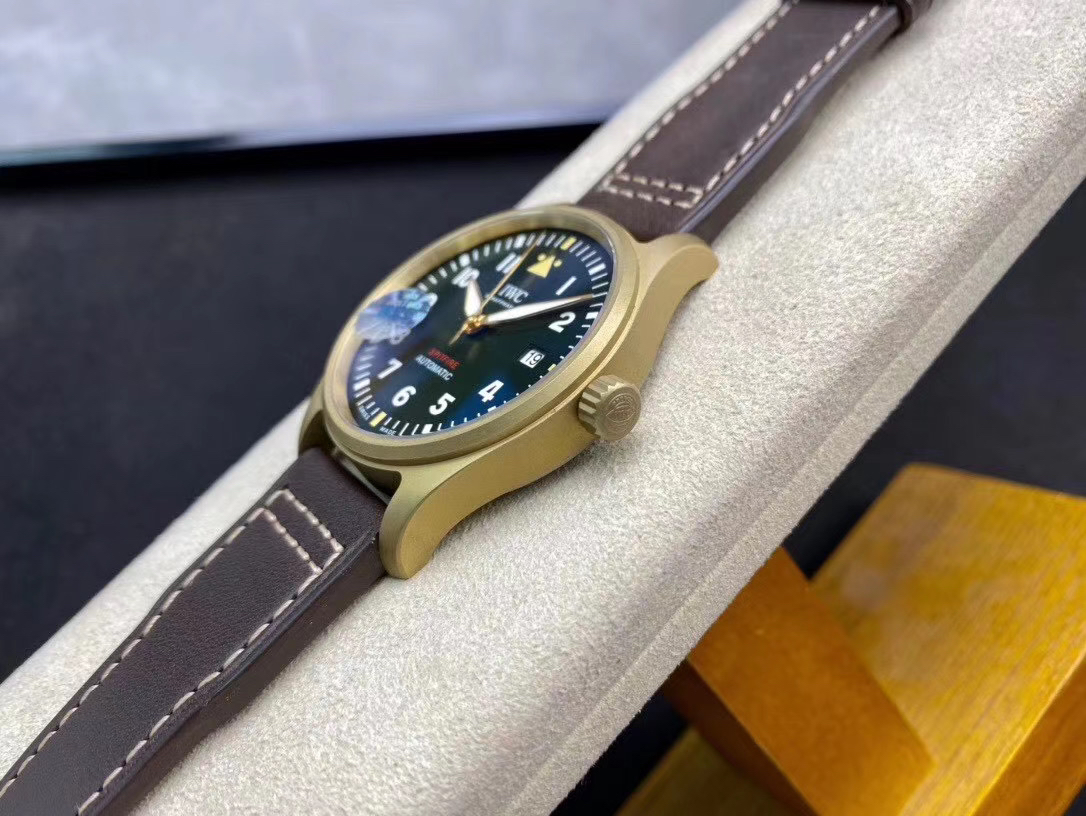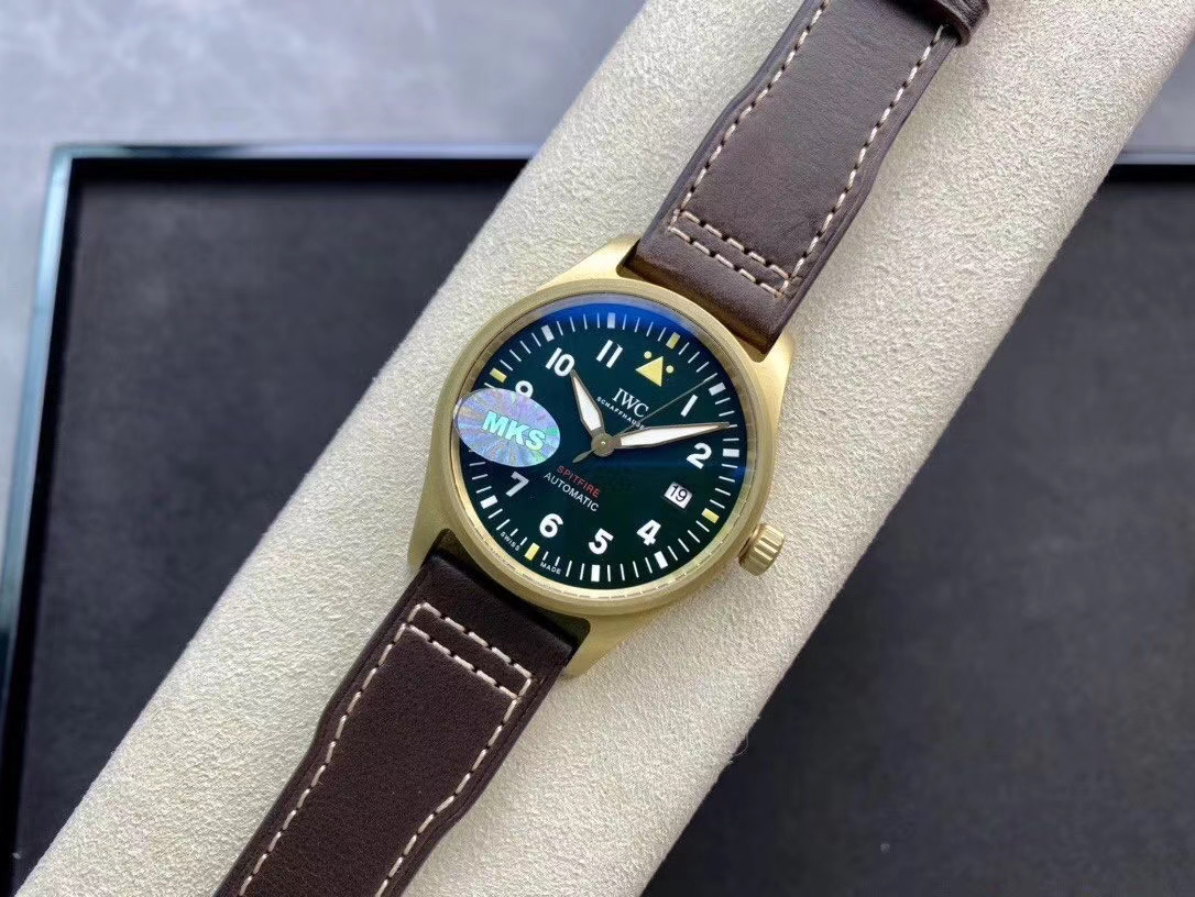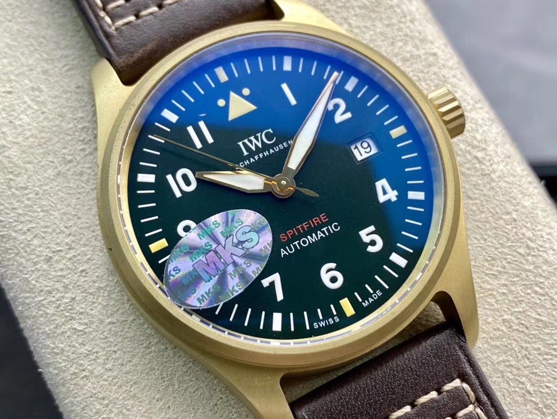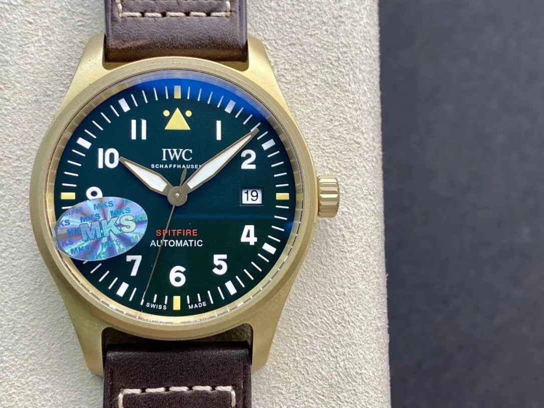 MKS 万国IWC喷火战机青铜腕表震撼出击。橄榄绿盘面,青铜材质外壳,腕表尺寸39mmX10.5mm,日本进口9015自动上旋机芯,男士腕表