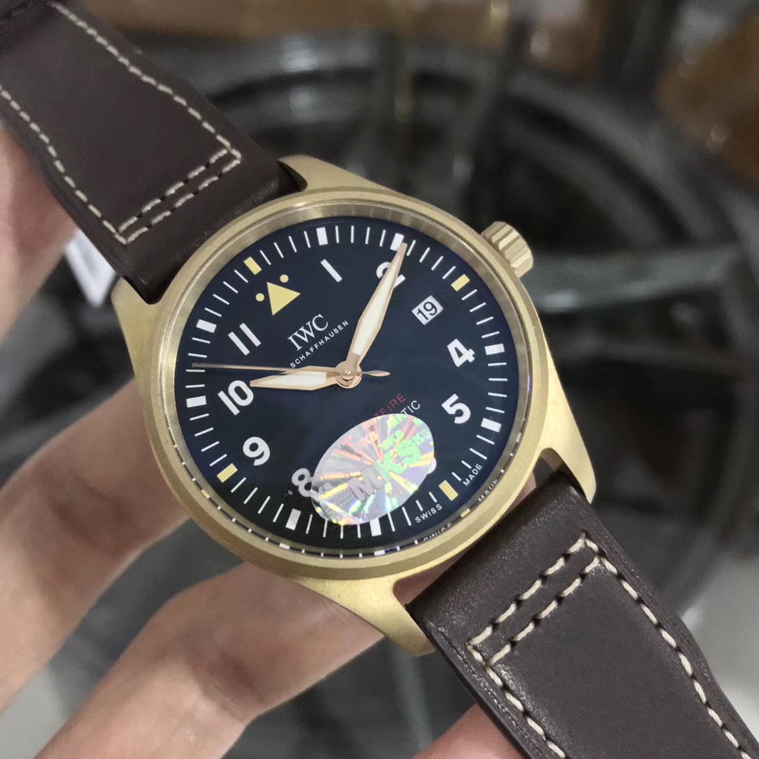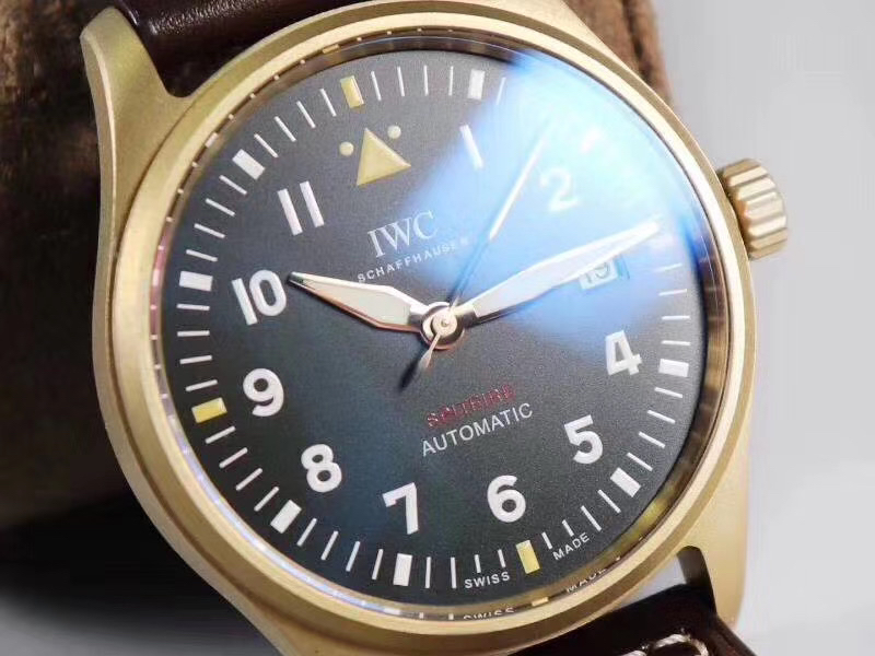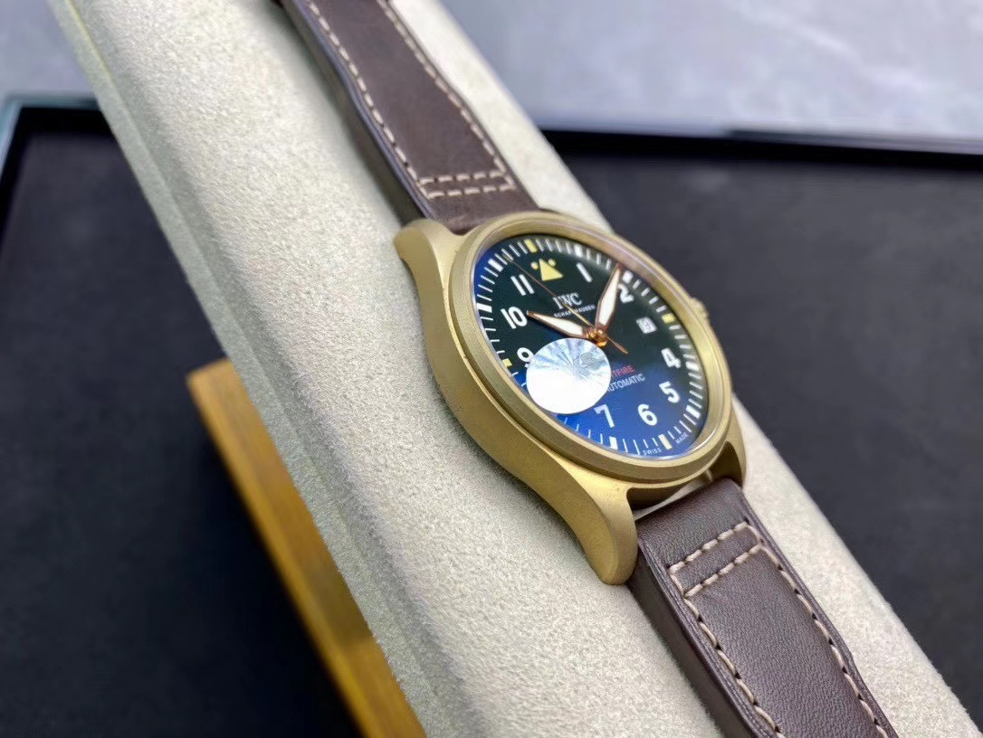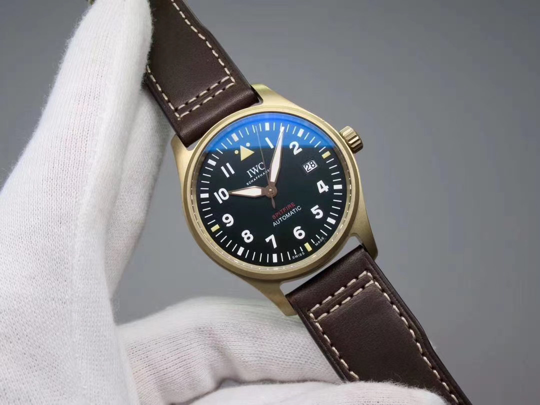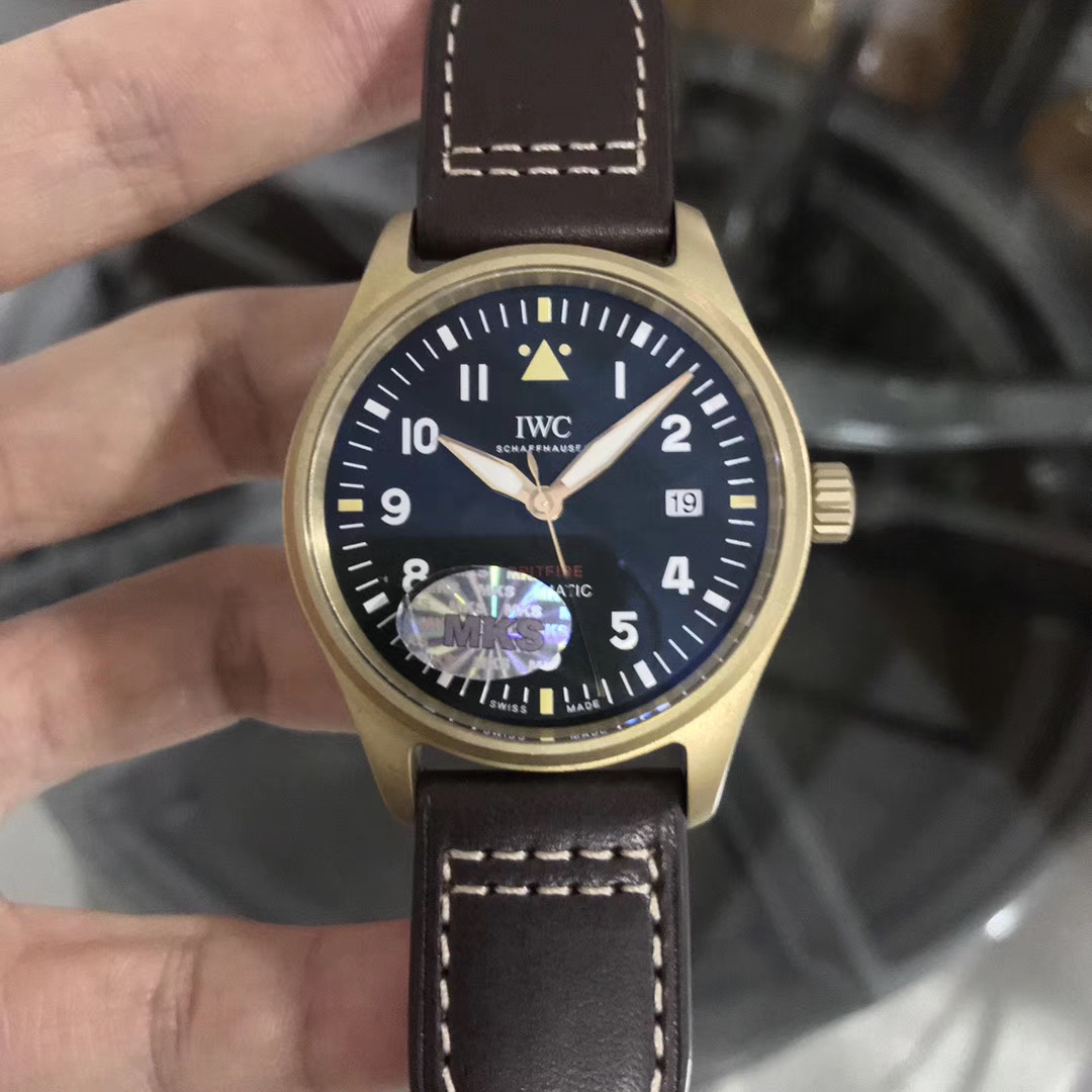 MKS 万国IWC喷火战机青铜腕表震撼出击。橄榄绿盘面,青铜材质外壳,腕表尺寸39mmX10.5mm,日本进口9015自动上旋机芯,男士腕表