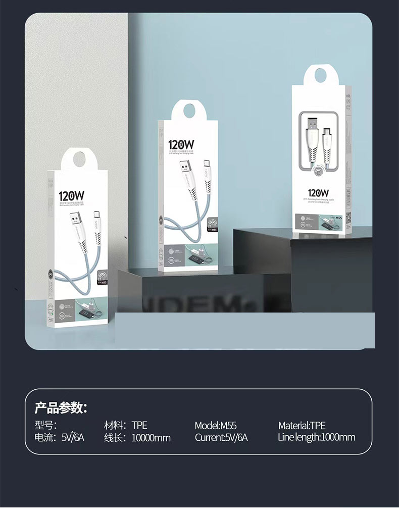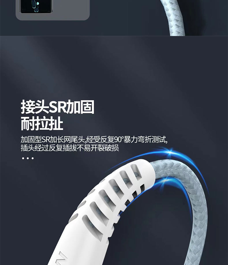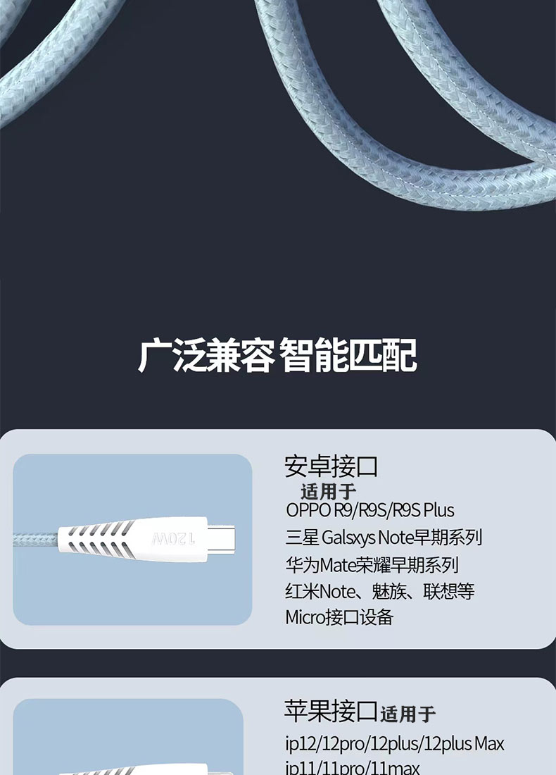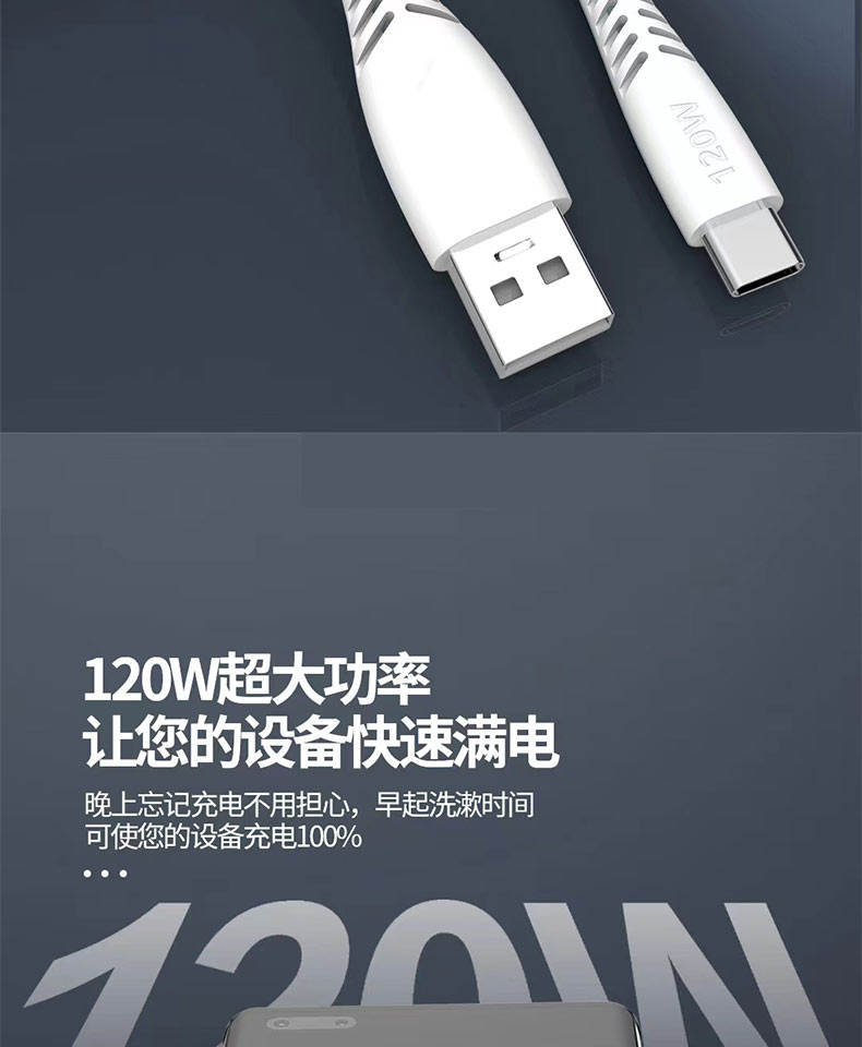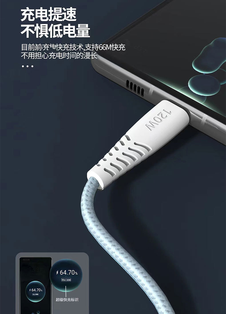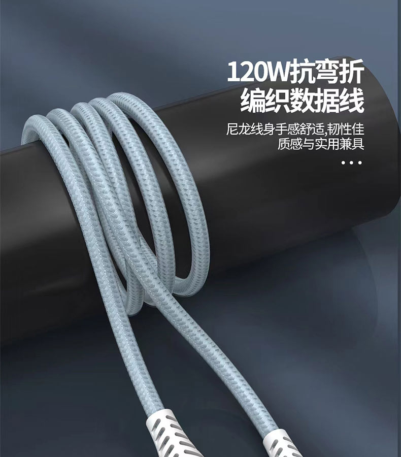 120w缝布编织数据线快充数据线加固接头