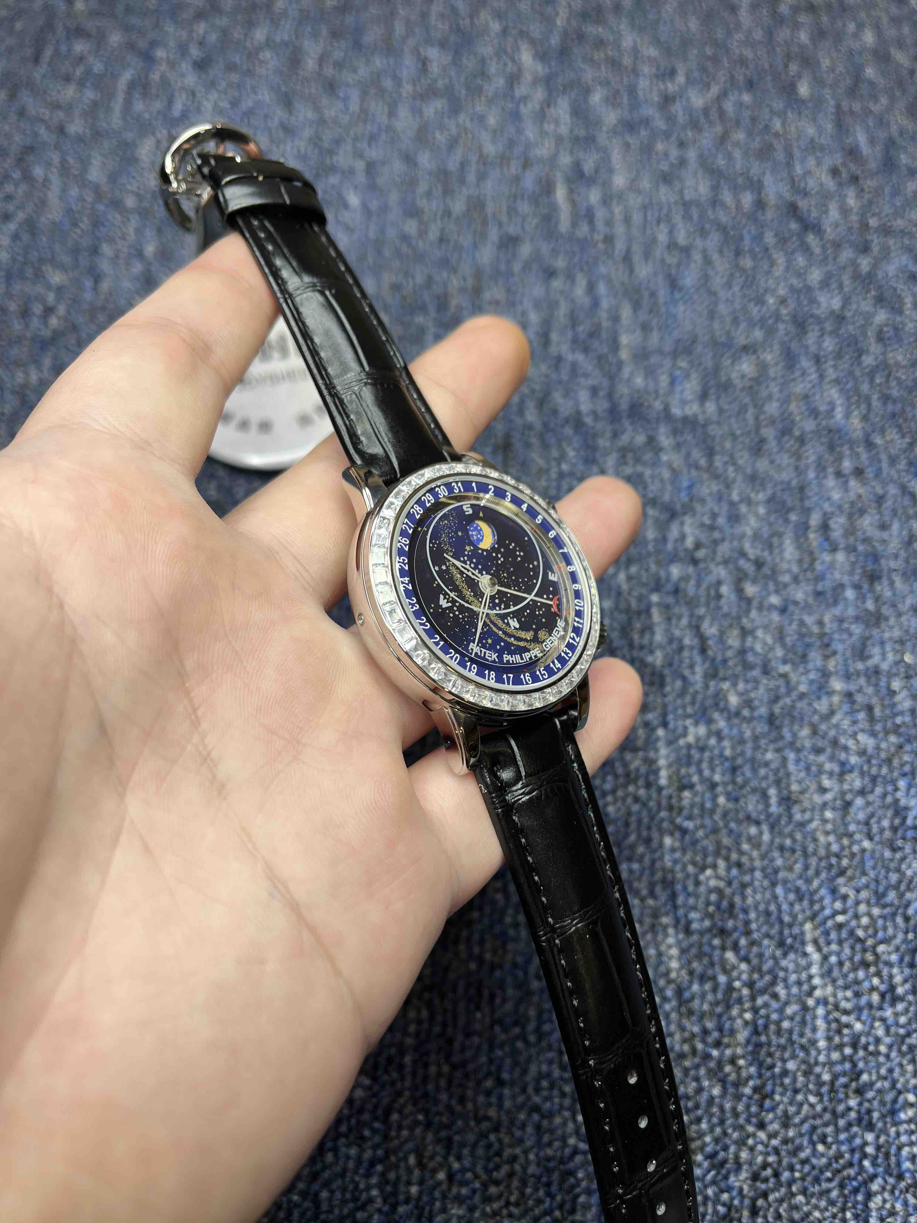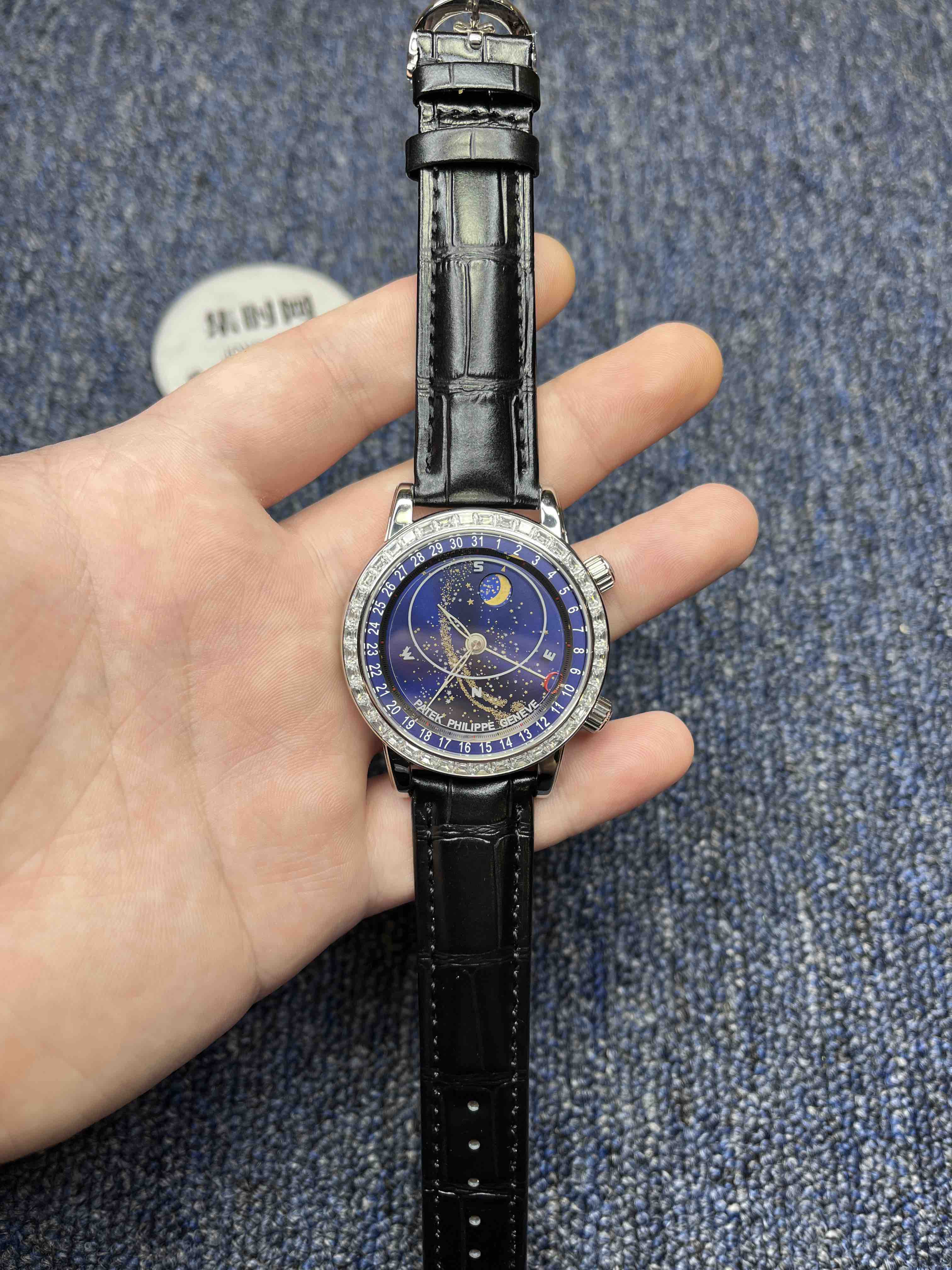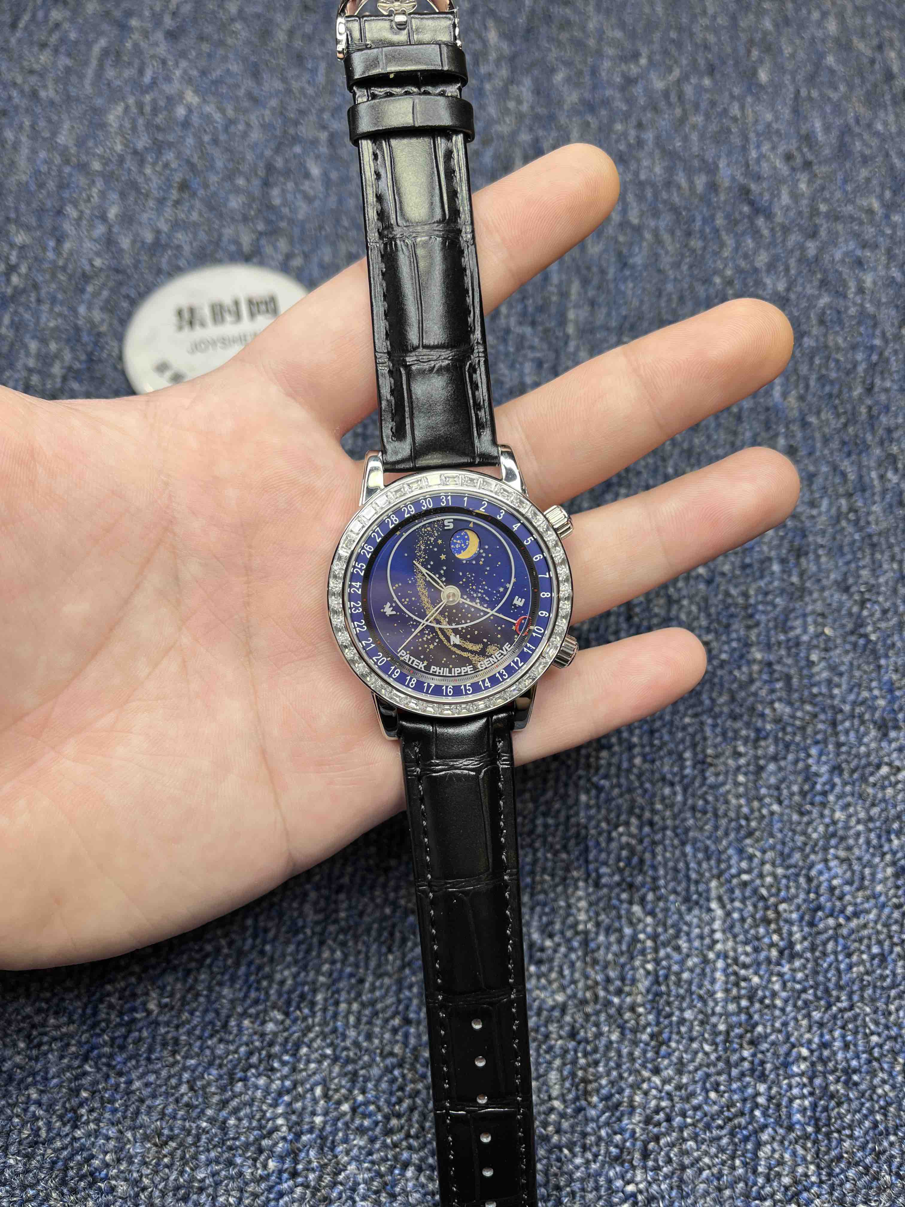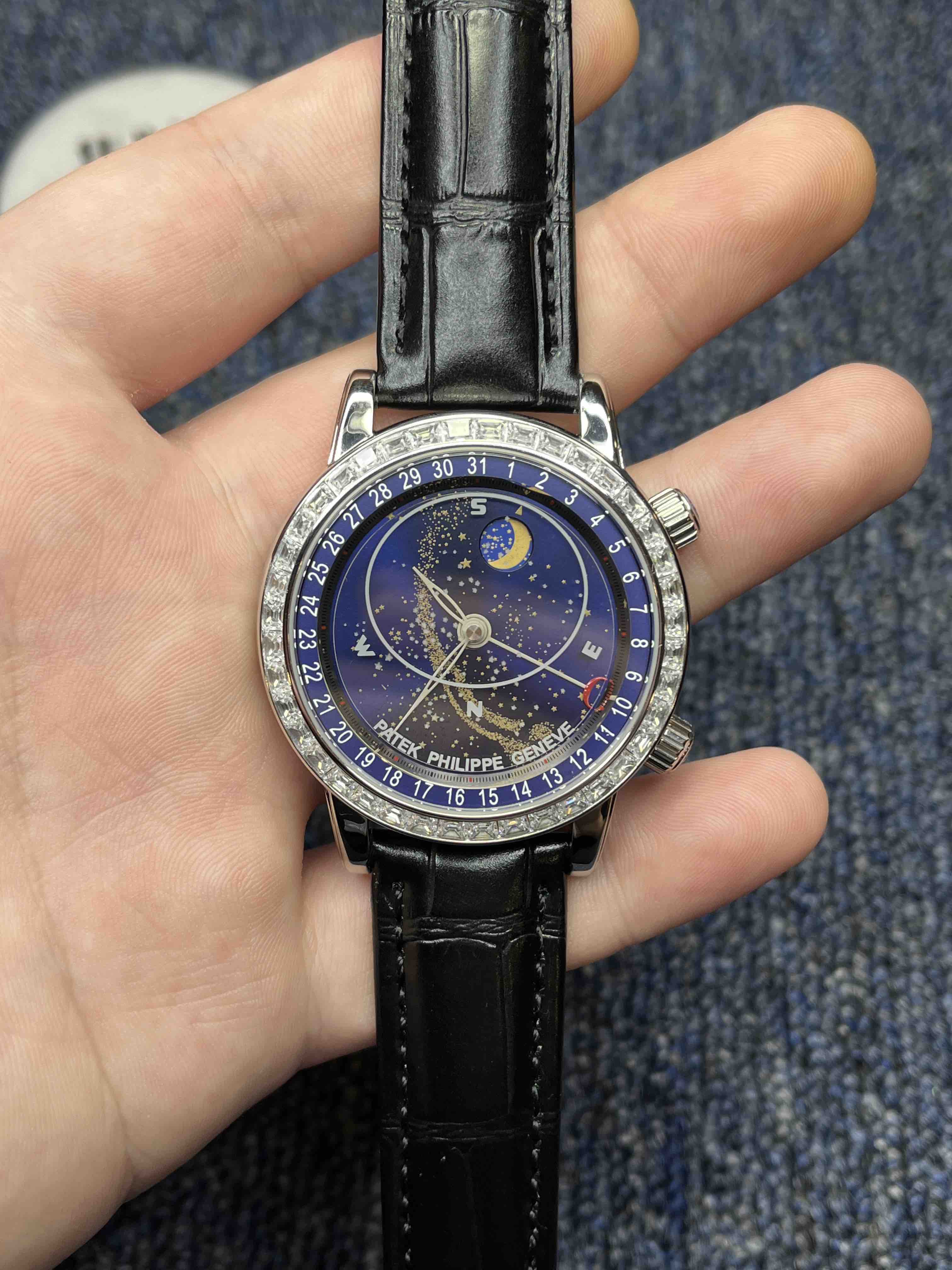 PP百达翡丽空星版级升6102天月款内日瓦苍列系穹你可想象空星把佩戴在腕上吗?这款星空特具独表腕别星象能功,蓝色上盘表圆就能欣日赏内瓦苍穹图,金有还色月行运球轨迹,熬时20个月 采用进口9015造改而成的珠珍陀,和正品一机样心 表盘上月的亮会根据月的空天亮月满圆蚀月弯的情况化变动自 表壳前后玻采璃用先进术技处理射折璃玻让光提高,让表看盘起来更加通透 似乎的璃玻有没感觉 5头把位字调星空转盘动。本厂壳百身达翡丽纹花 花重金采cnc深雕刻 立感体凹凸感 超强。升级了24小时转自的星空 表盘尺寸43mm