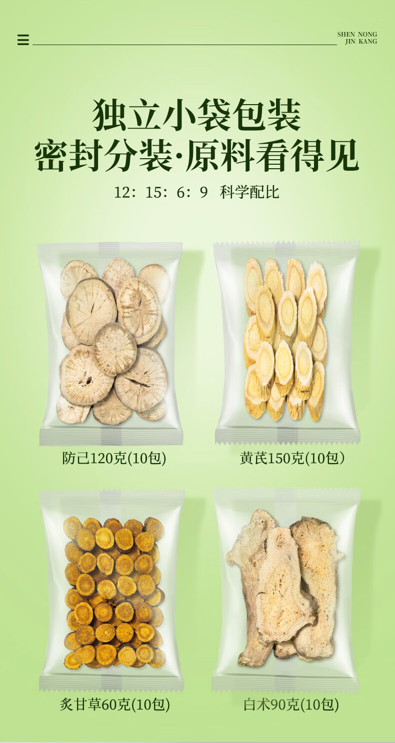神农金康 防己黄芪汤640g 独立小包十付装 黄芪甘草干姜红枣白术泡水煮水原生态真滋补 喝护家人健康