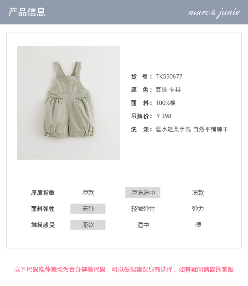 【柔软匹马棉】马克珍妮男女童背带灯笼裤宝宝裤子夏装新款550677