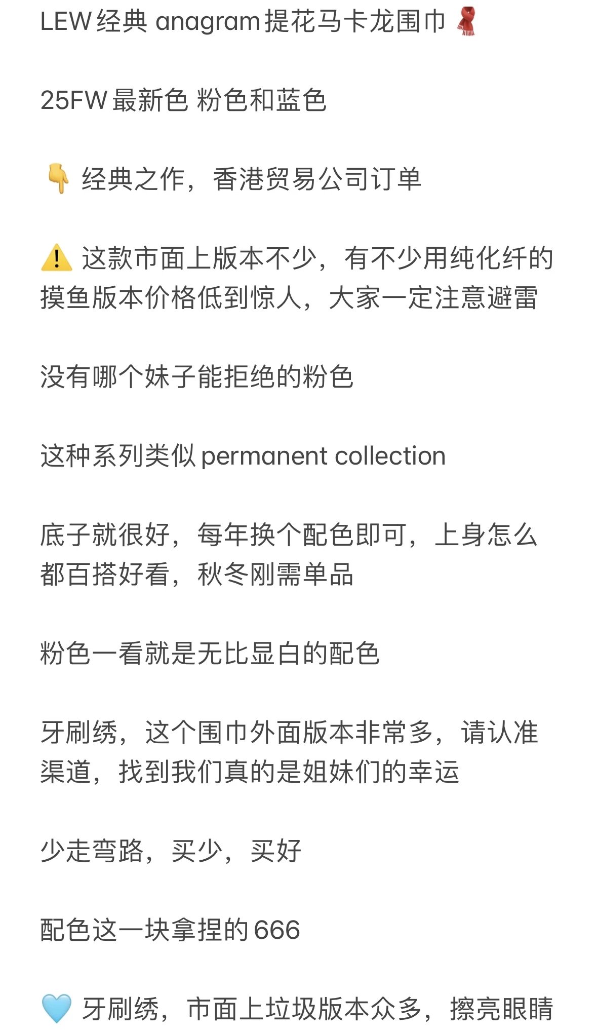 福利回馈 LEW经典 anagram提花围巾 马卡龙色系 男女同款 羊毛羊绒牙刷绣围巾