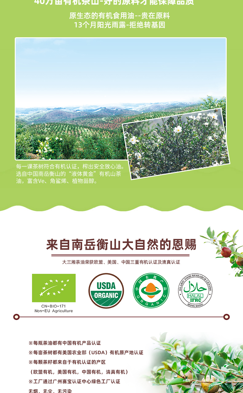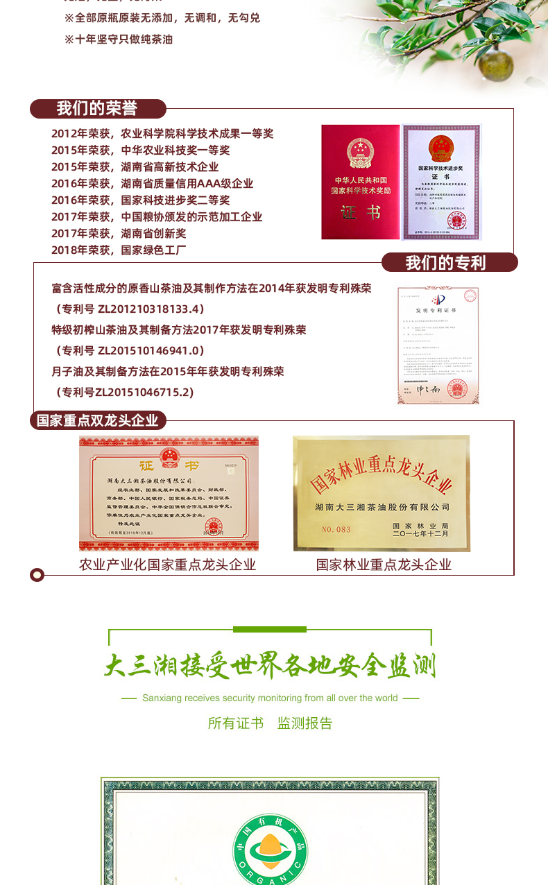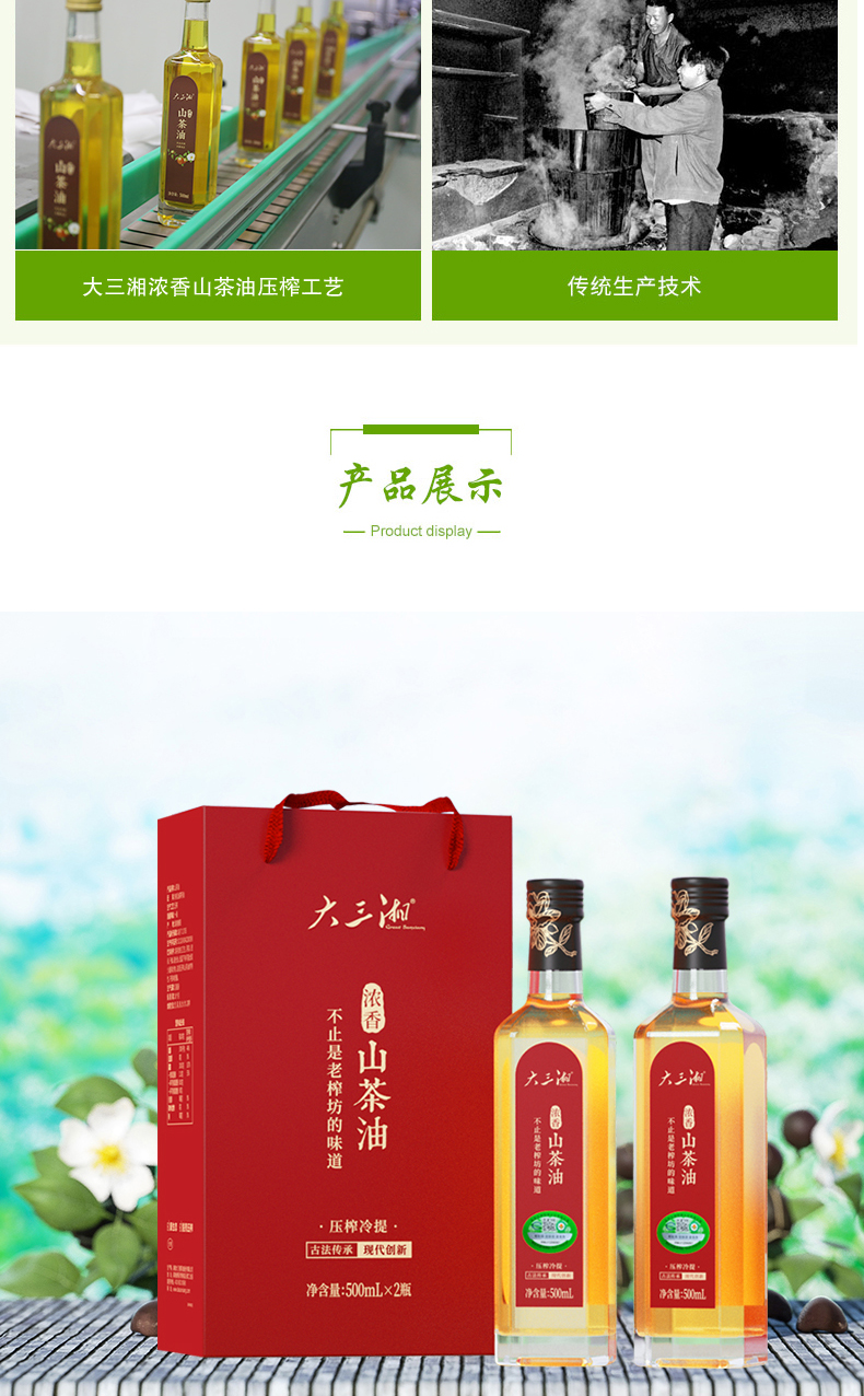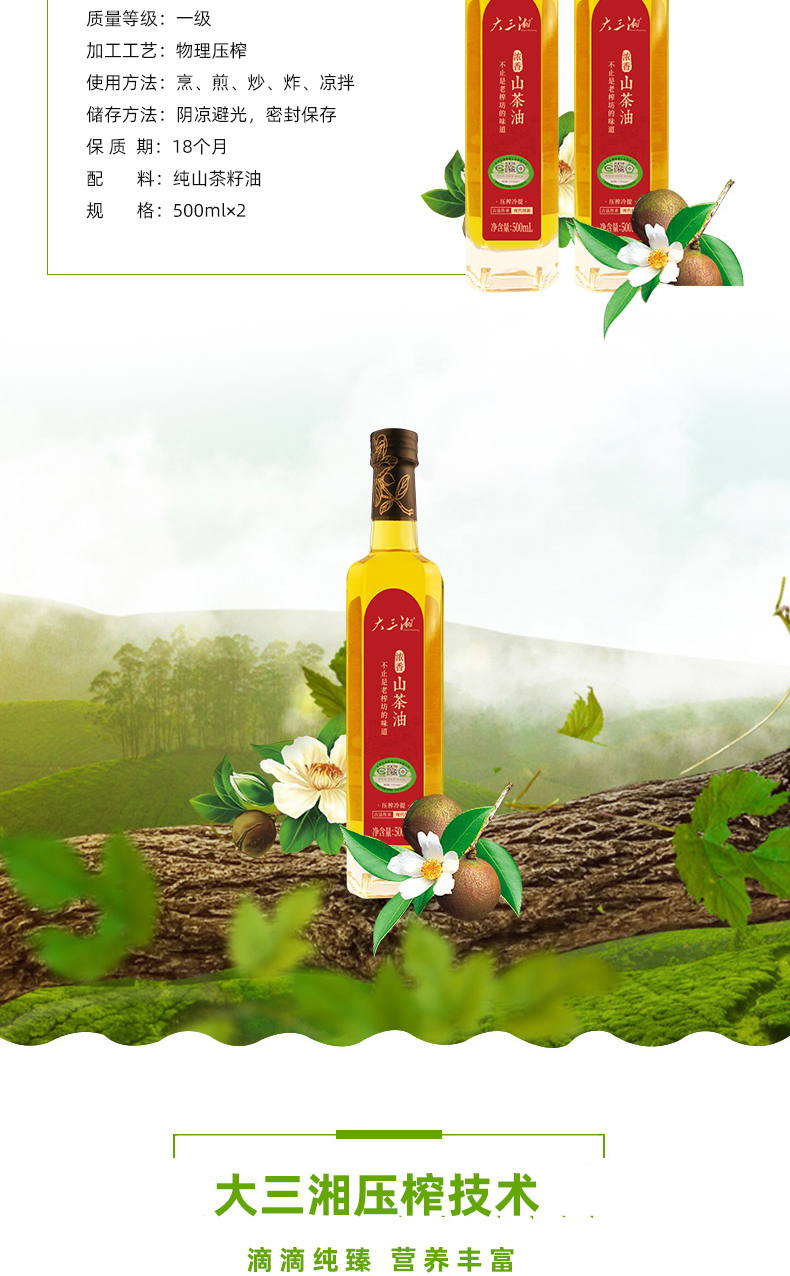 大三湘浓香茶油山茶油有机植物食用油压榨茶籽油礼盒500ml*2