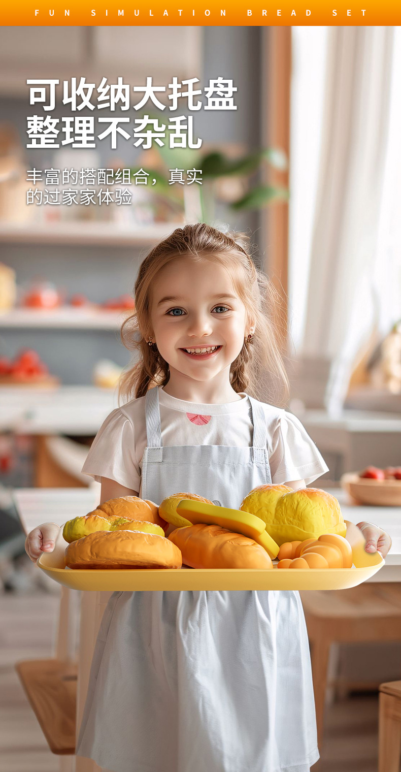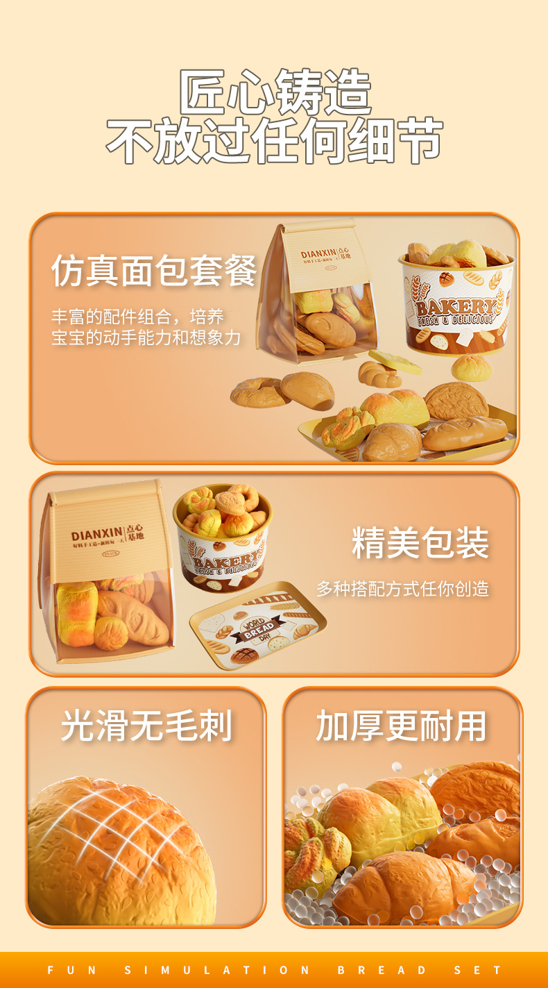 【点心基地 早餐玩具】过家家玩具面包套餐 儿童益智仿真模拟食物薯条面包披萨等仿真食玩
