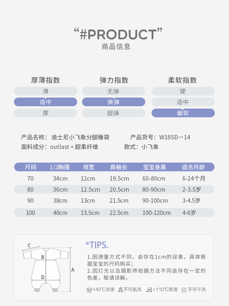 Minisol【厚款】小飞象马戏团 恒温睡袋婴儿防踢被宝宝睡袋春秋冬款儿童睡袋