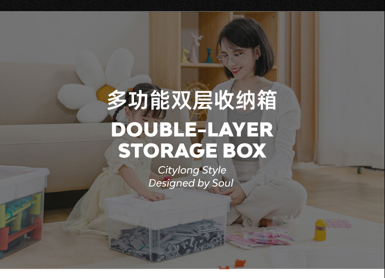 【积木分类收纳箱】禧天龙双层收纳箱透明收纳盒 养成宝宝整理好习惯 积木玩具分类分层整理箱