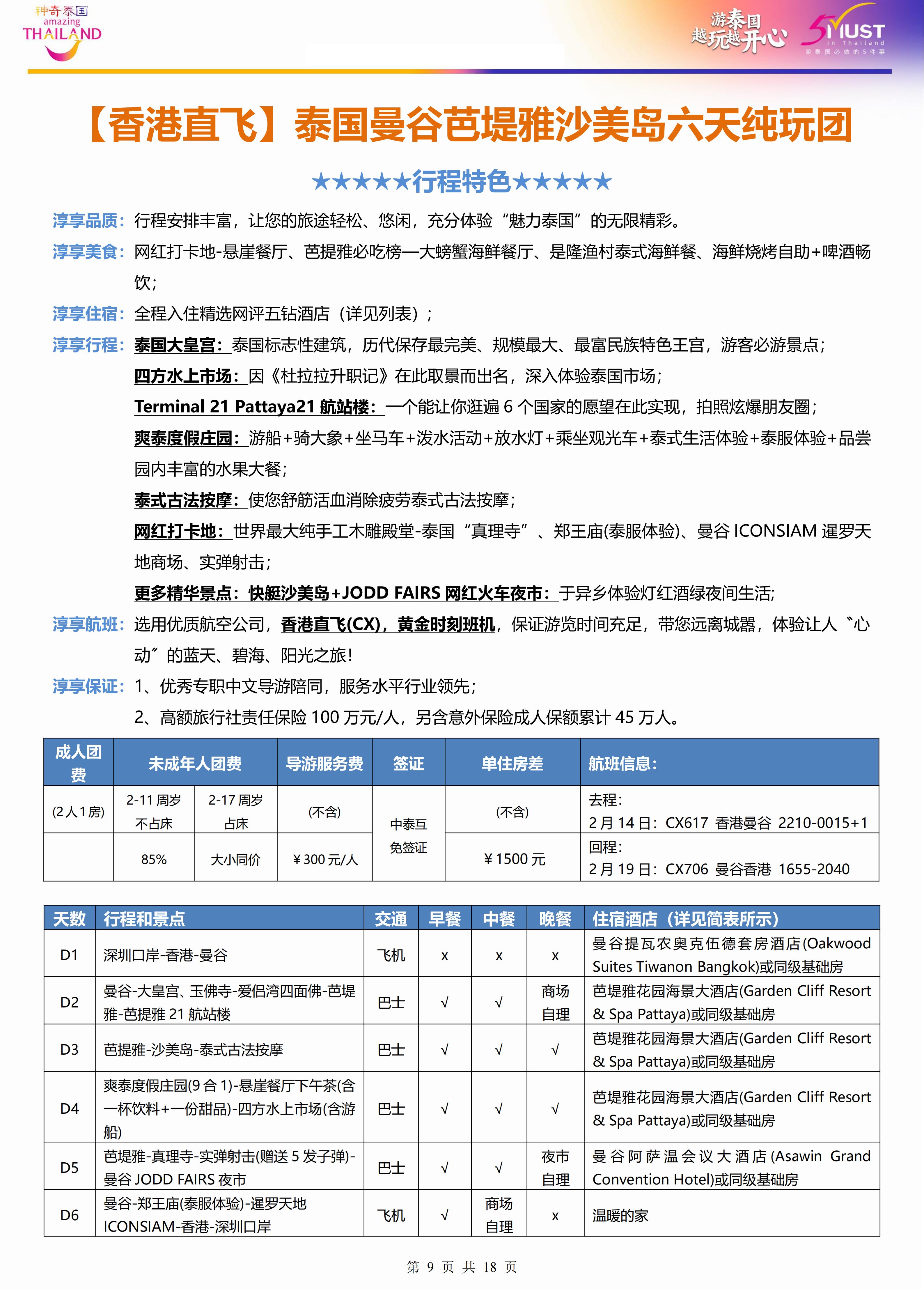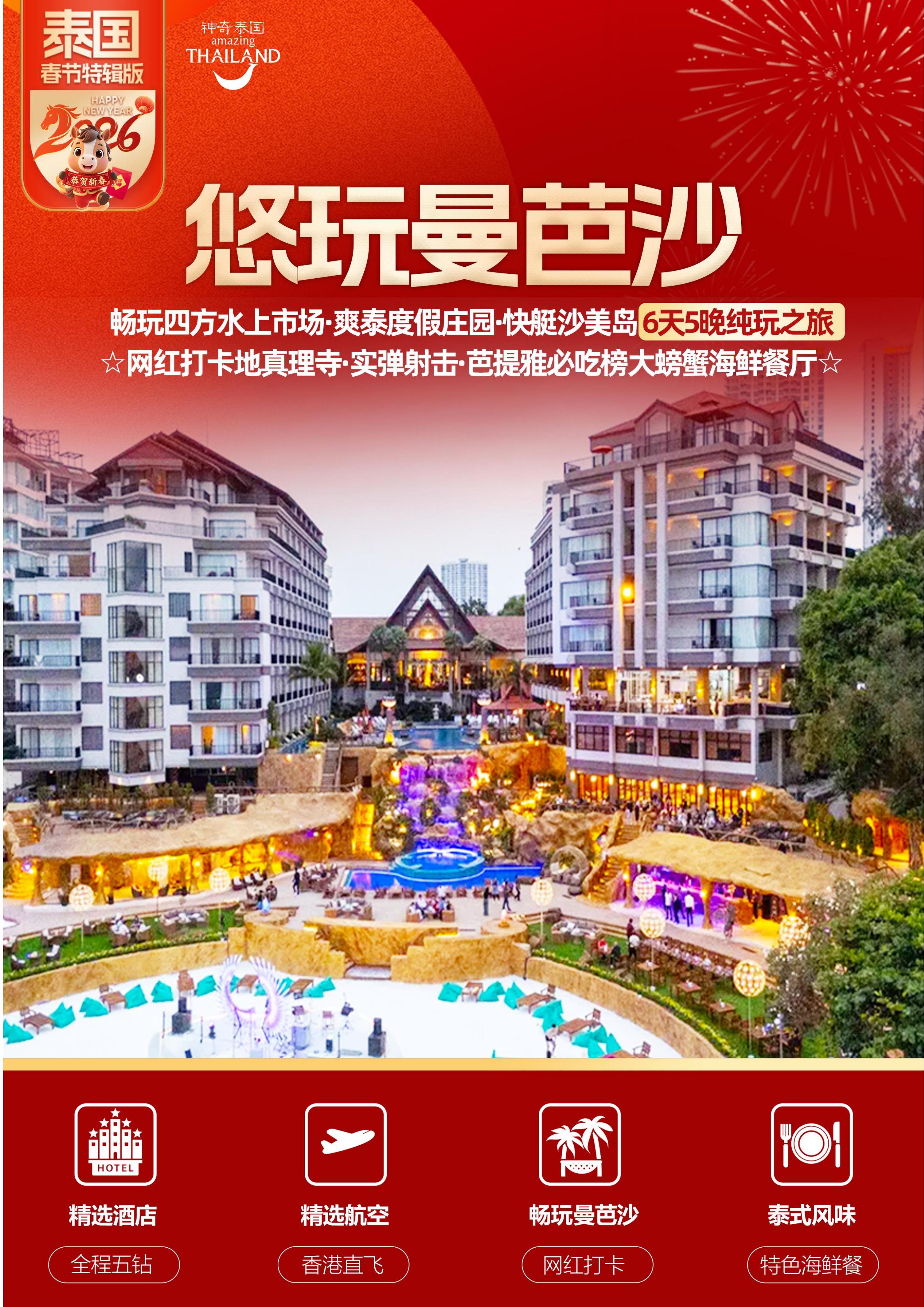 【寒假、春节】<泰国曼谷+芭堤雅+沙美岛六天>全程5钻酒店、泰国大皇宫、四方水上市场、爽泰度假庄园(9合1体验)、古法按摩、郑王庙(泰服体验)、实弹射击、JODD FAIRS 红火车夜市