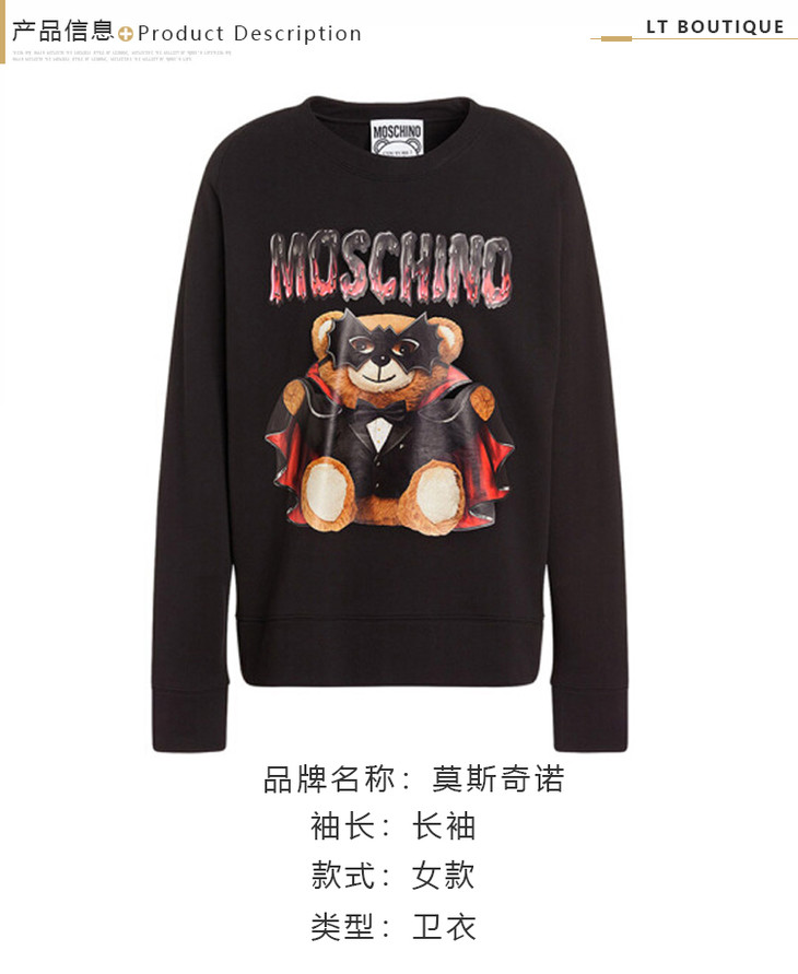 MOSCHINO 莫斯奇诺 黑色 长袖T恤衫卫衣 黑色 1719 0227 1555