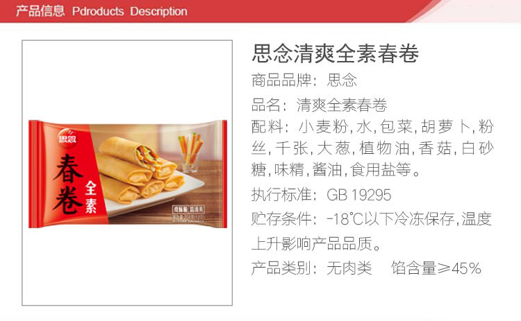 思念速冻食品 全素春卷 204g 12只 方便速食面点
