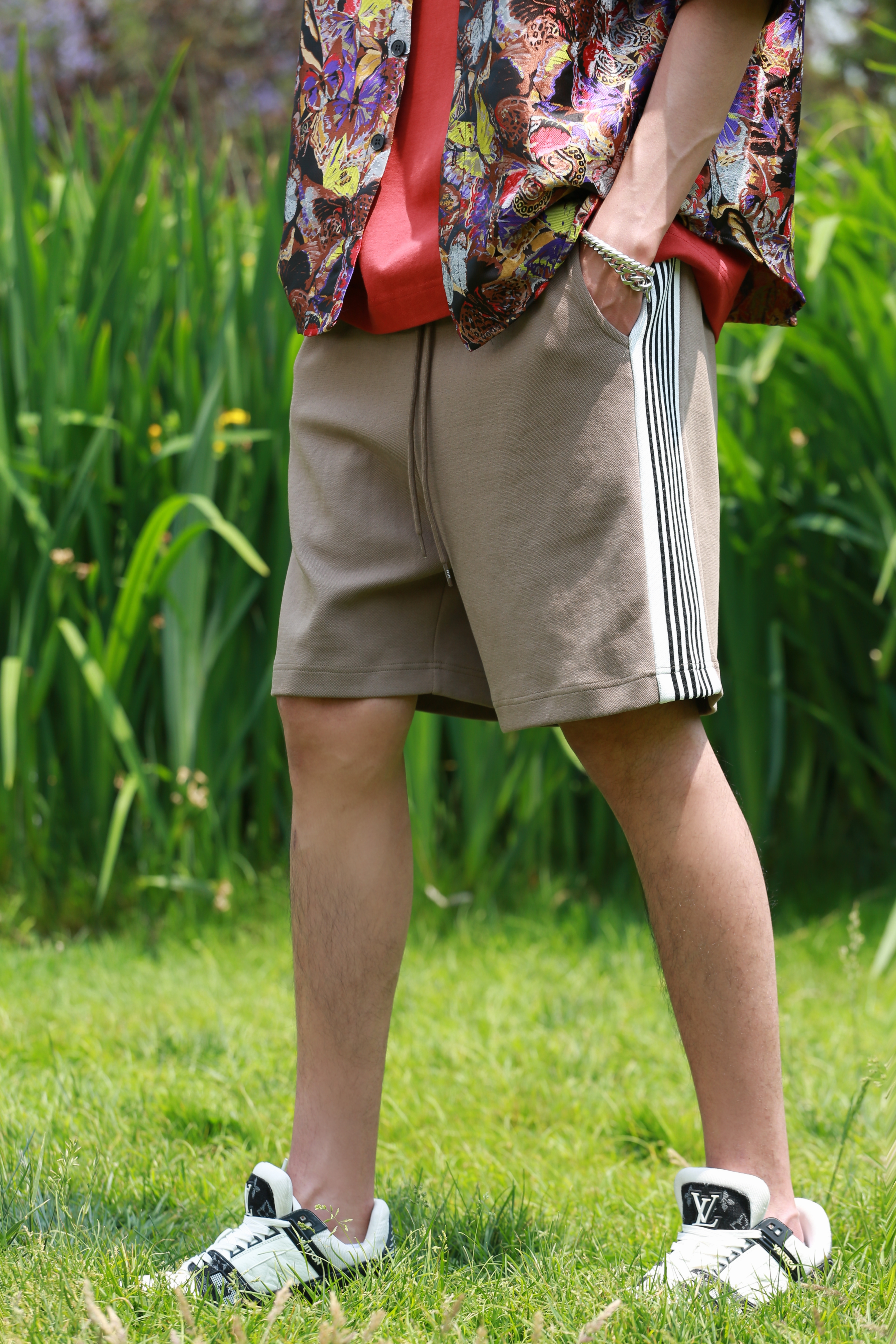 W326033186条纹拼接针织短裤