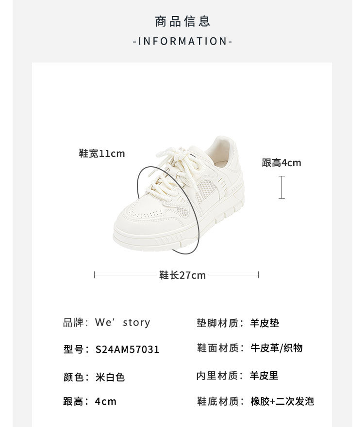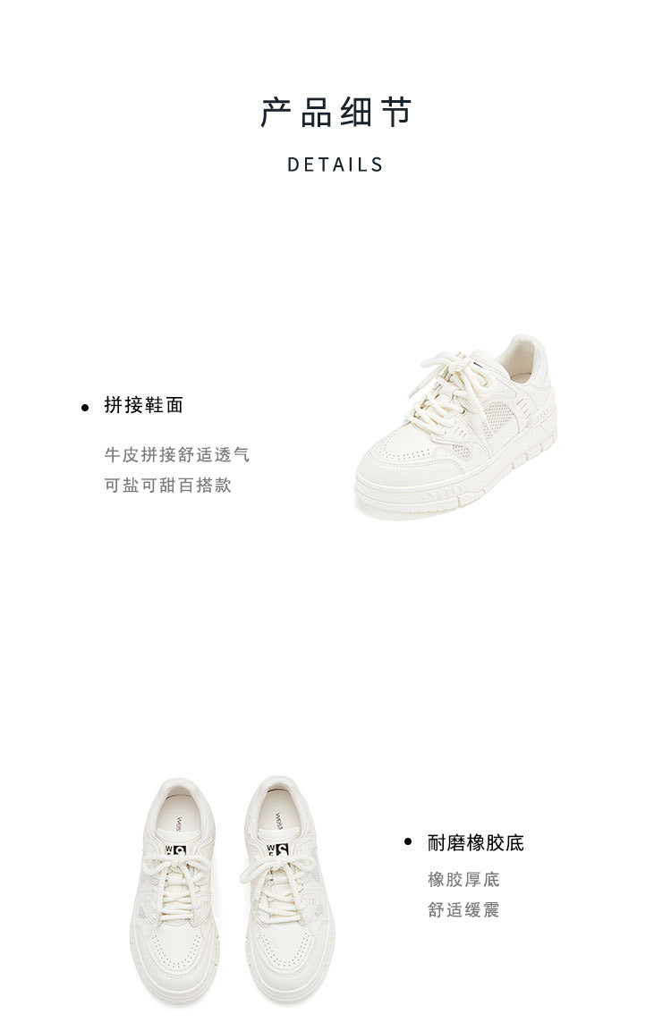 westory2023年春季新款真皮增高厚底低帮小白鞋百搭透气板鞋55691