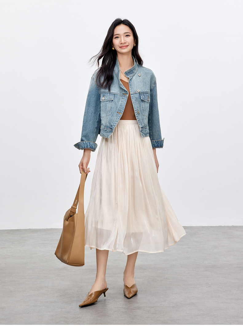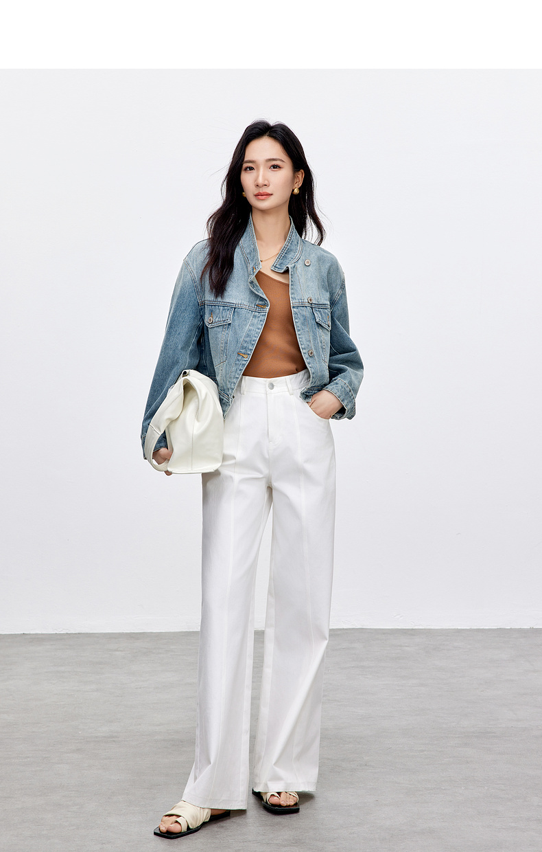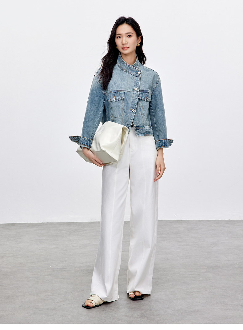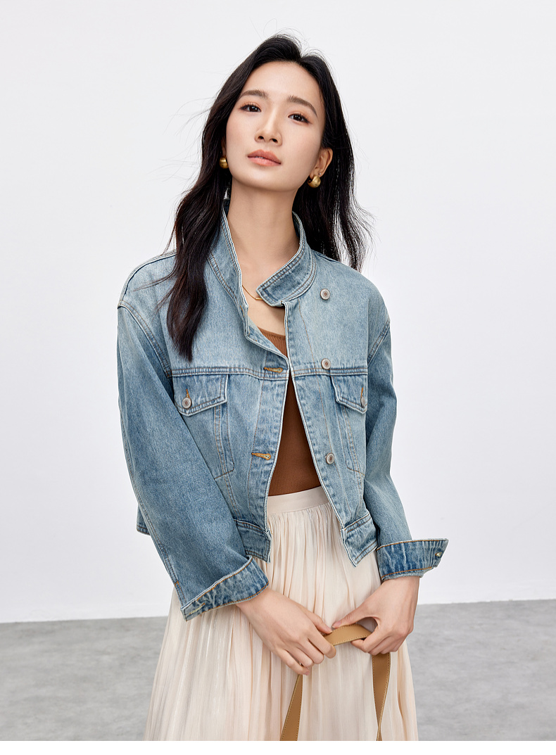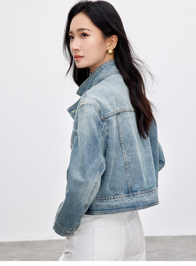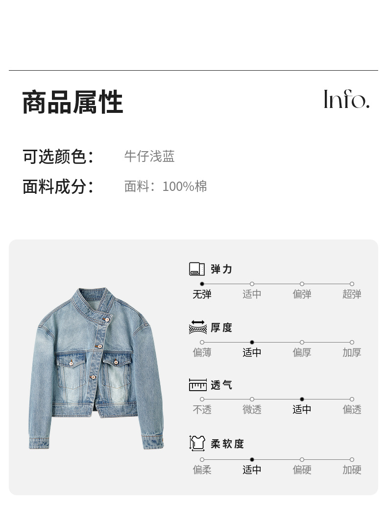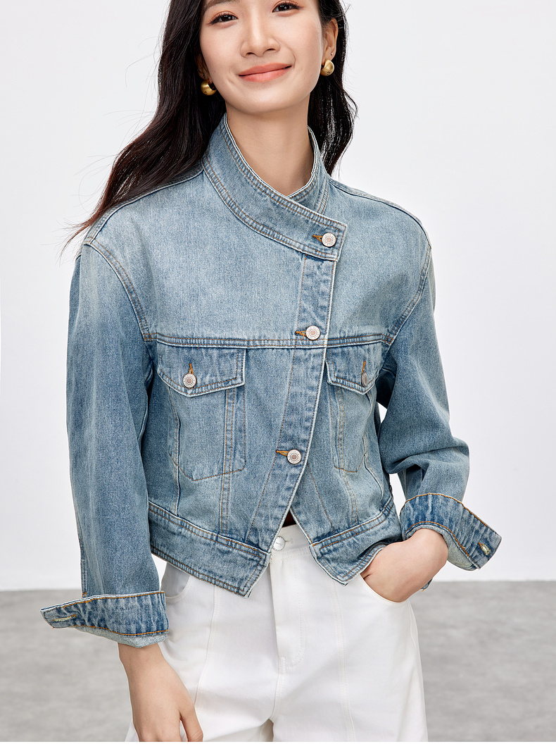 【内购】【水洗纯棉牛仔外套】休闲斜领字母五金扣小众洋气纯棉牛仔外套-W51W58966X