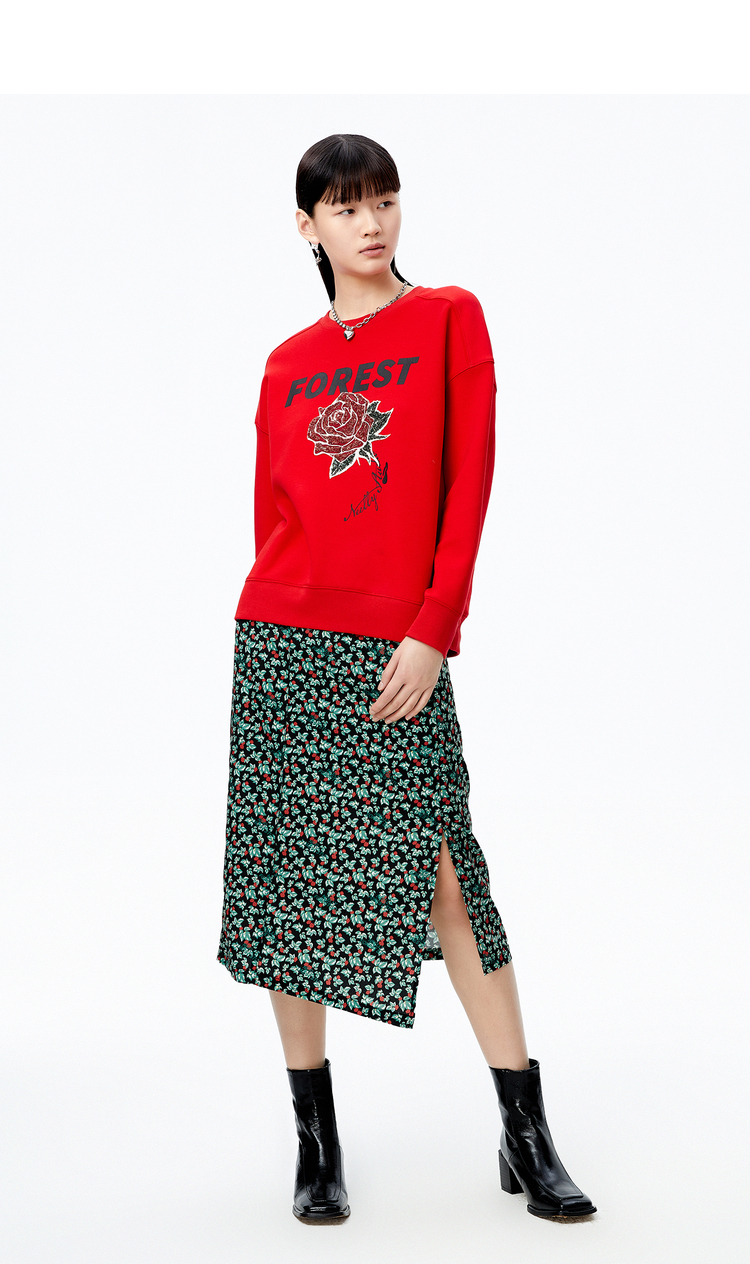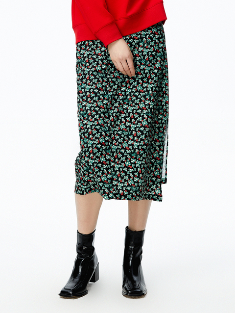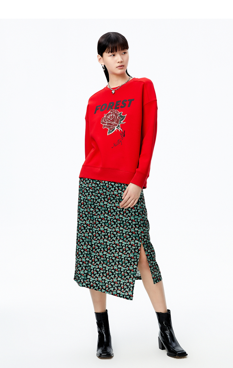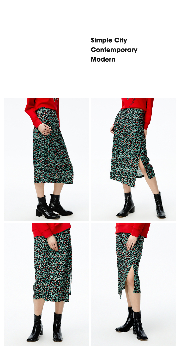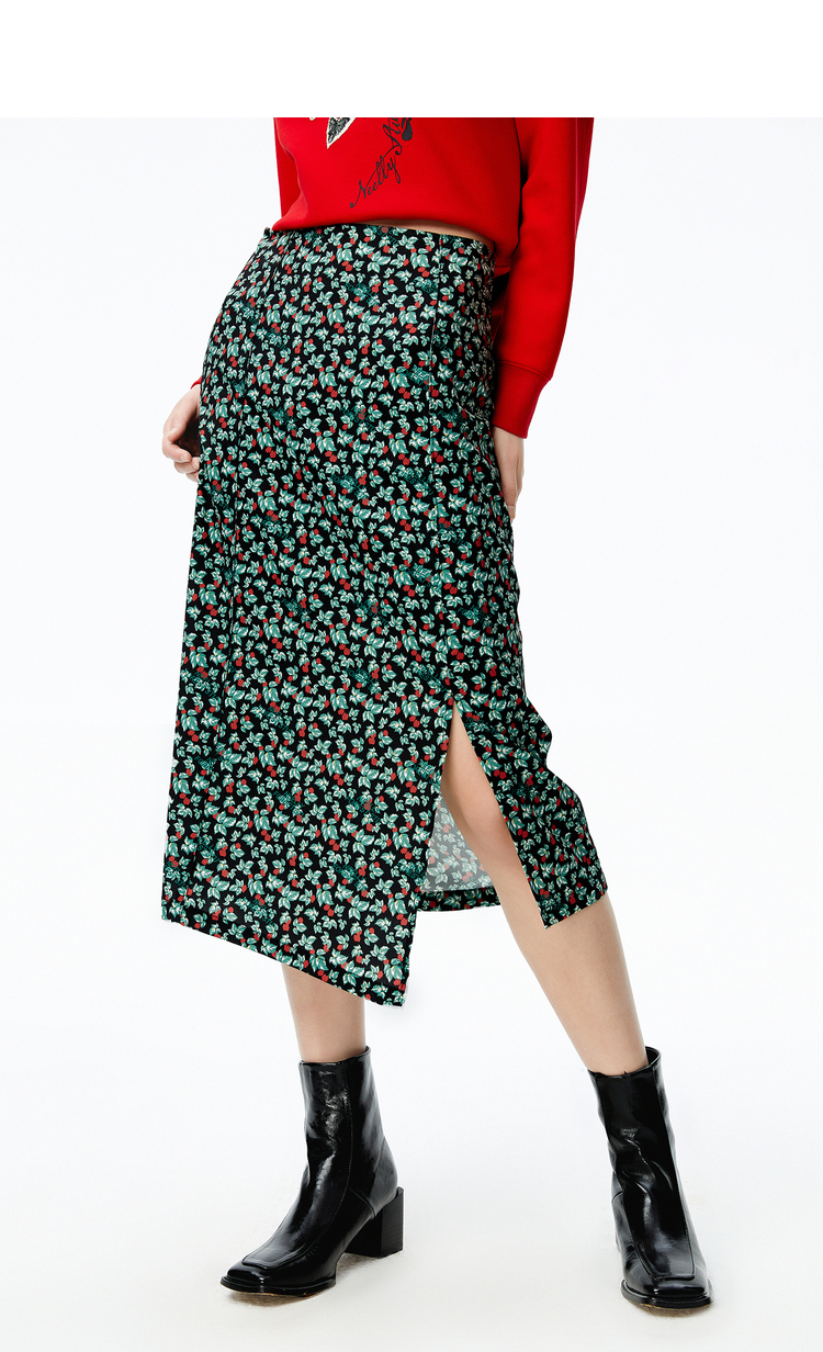 NEELLY纳俪商场同款2022秋季新款碎花半身裙女斜开叉高腰A字裙潮N22082E01088
