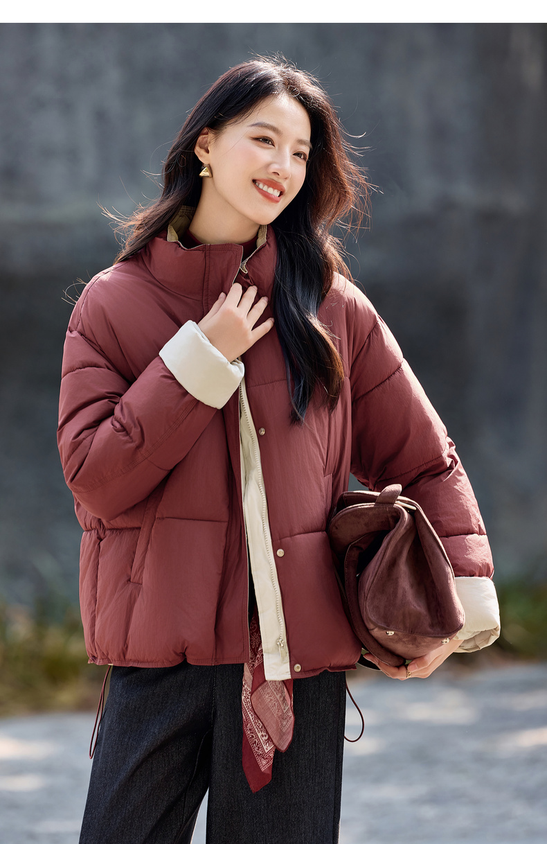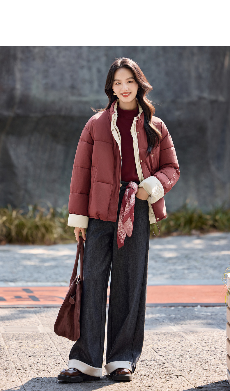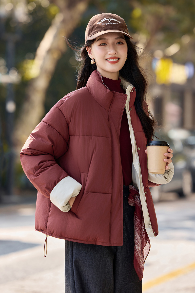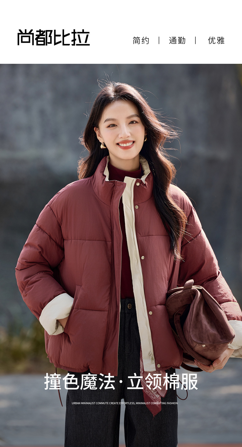 【内购】【撞色翻边袖】通勤立领按扣拉链可调节抽绳宽松显瘦不臃肿棉服-W54ME4665