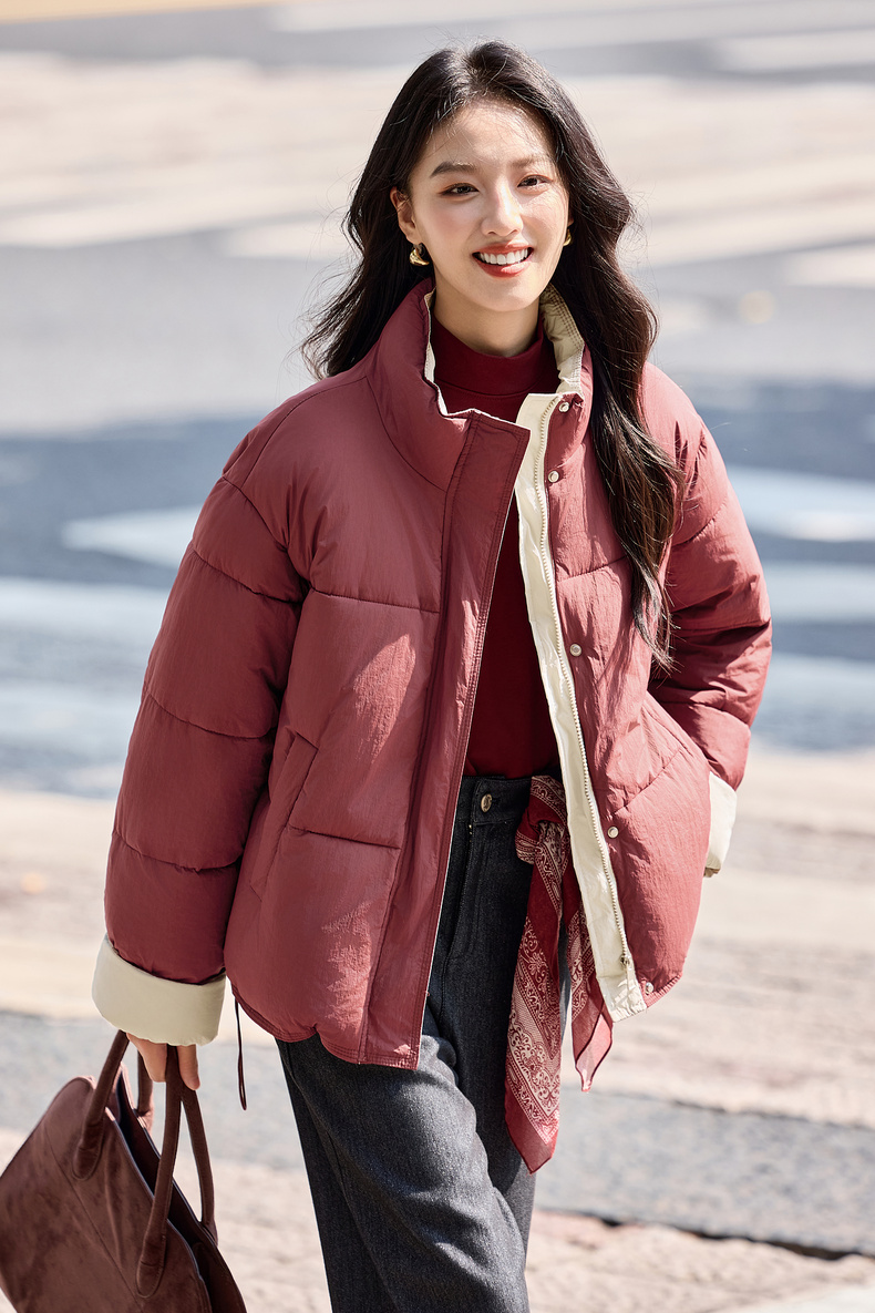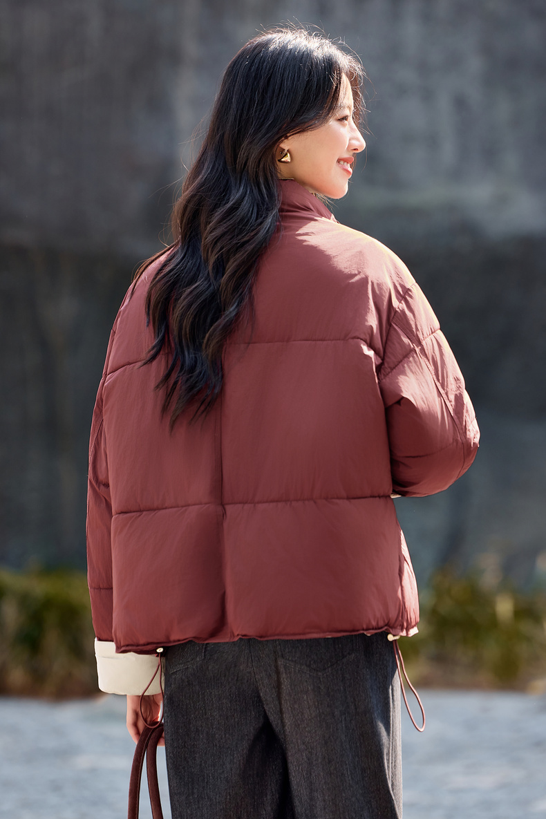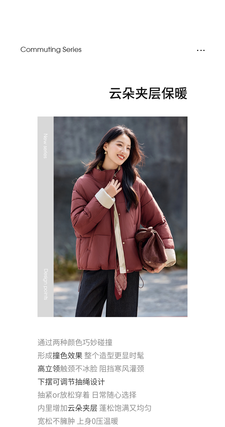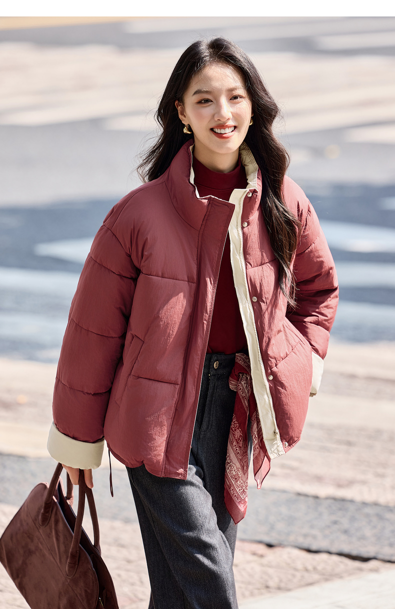 【内购】【撞色翻边袖】通勤立领按扣拉链可调节抽绳宽松显瘦不臃肿棉服-W54ME4665