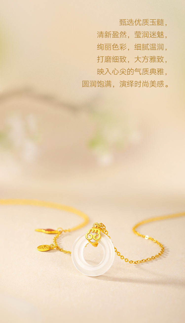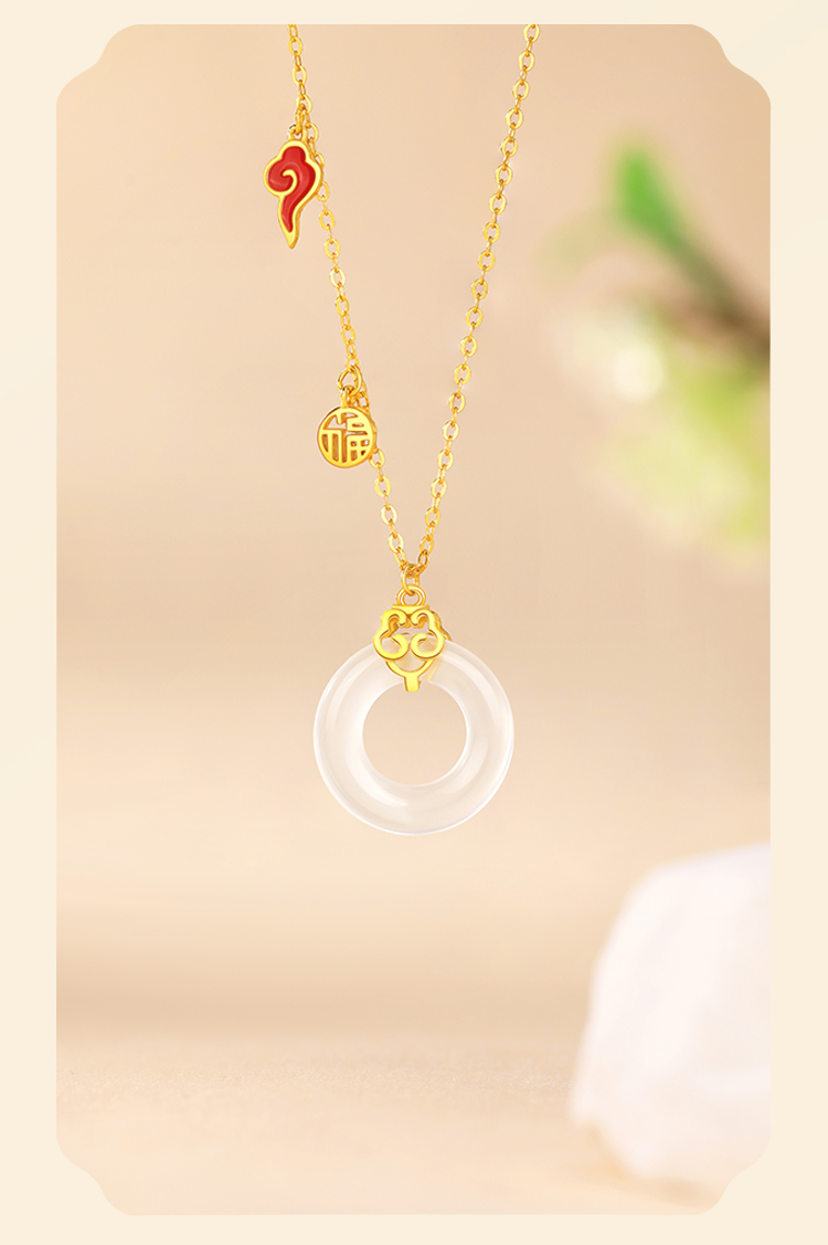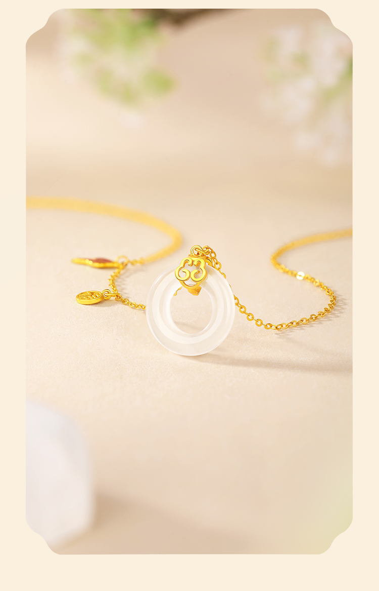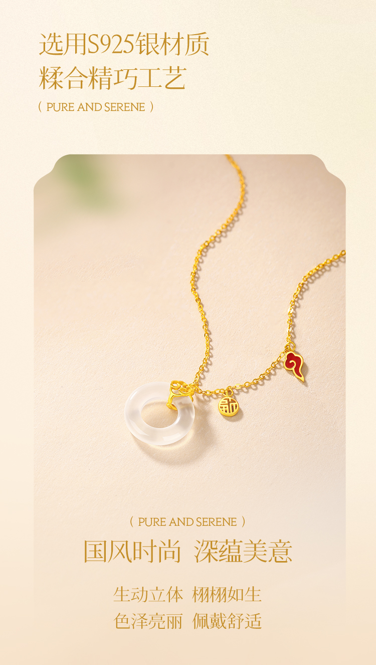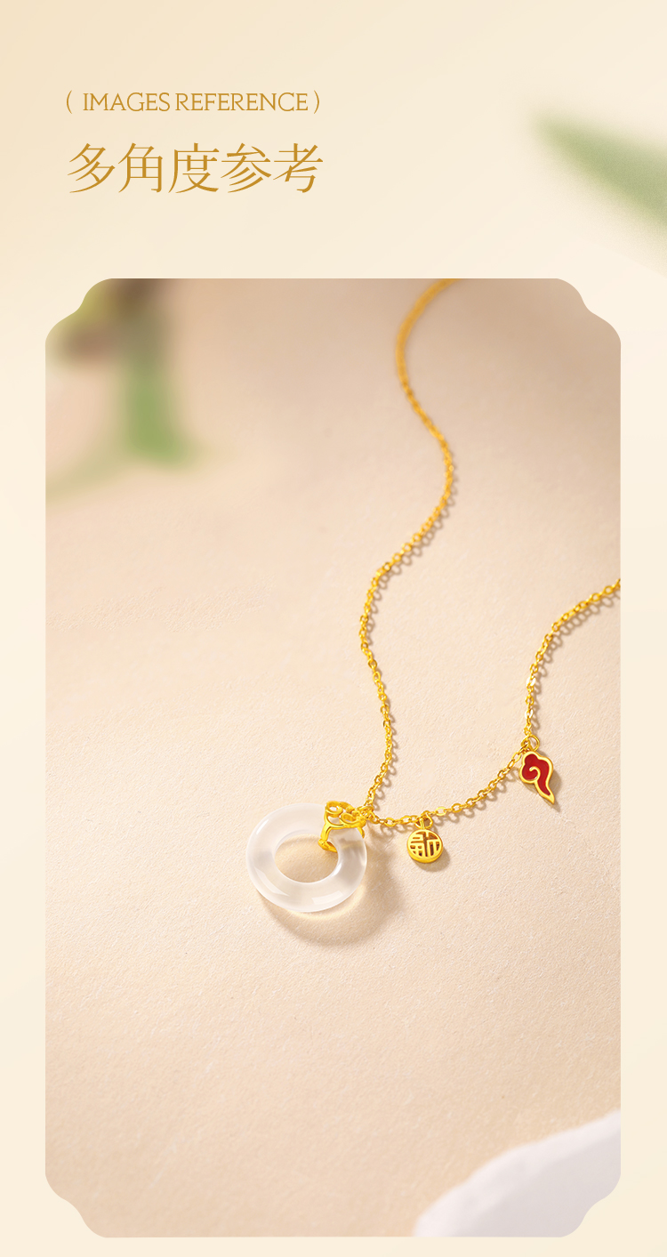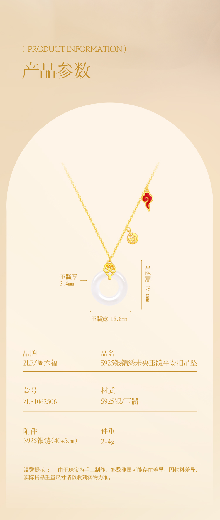 周六福S925银锦绣未央玉髓平安扣套链ZLFJ062506★