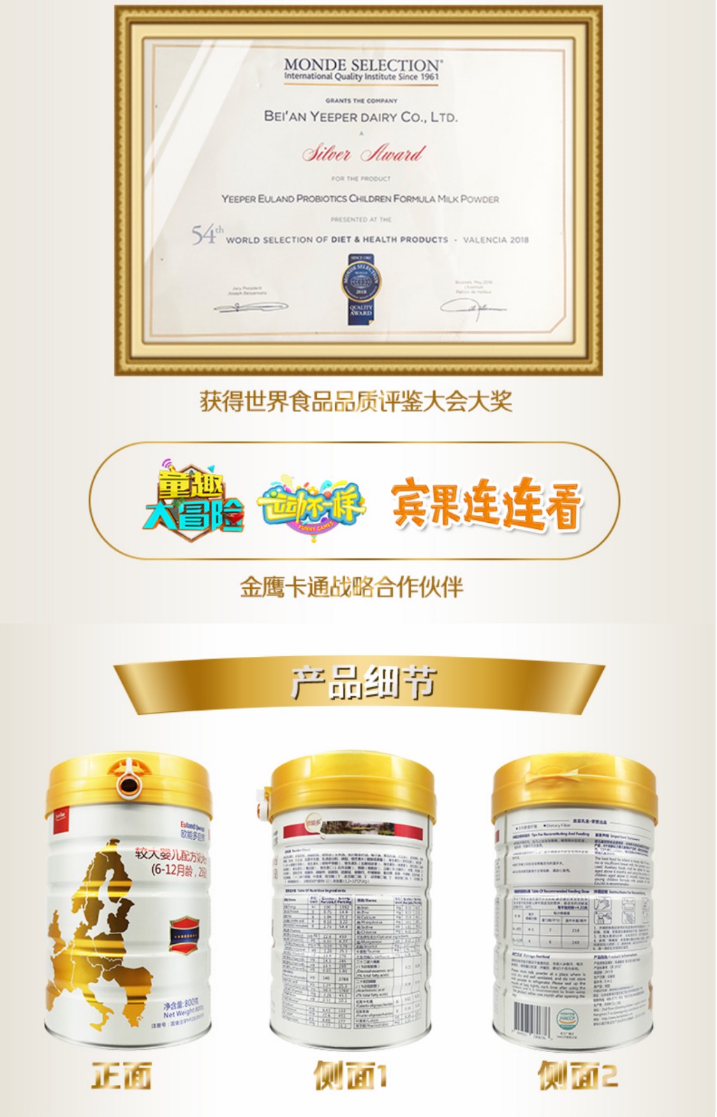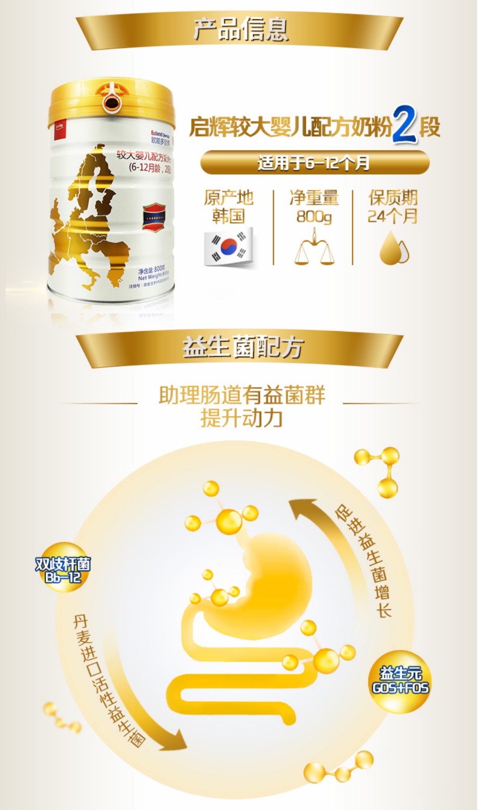 欧能多原装进口启辉益生菌奶粉2段800g【欧能多】