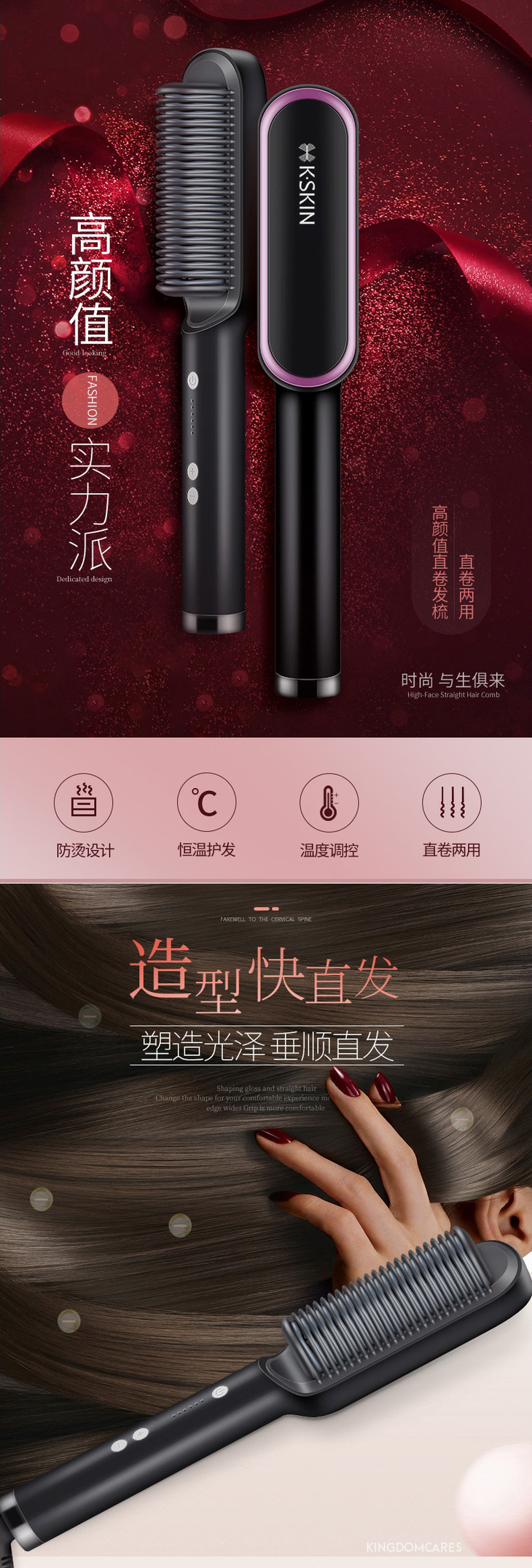 【金稻】金稻直发梳夹板直发卷发两用神器卷发棒不伤发负离子懒人女迷小型