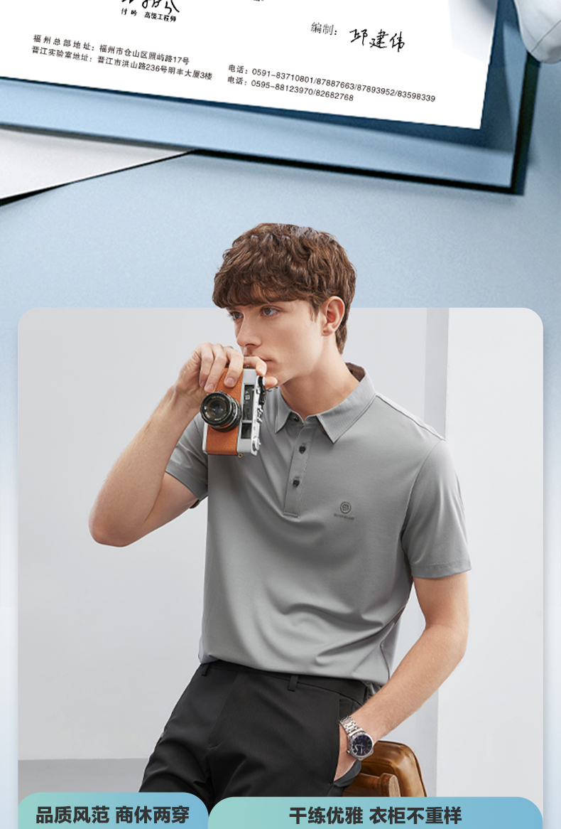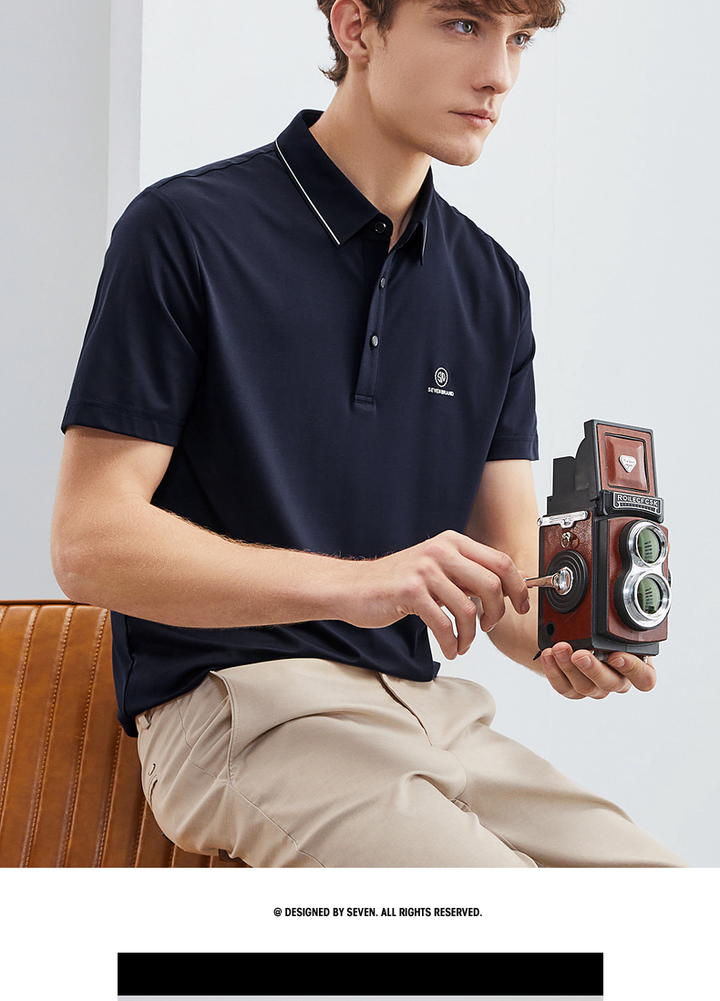 【弹力舒适】柒牌无缝工艺polo衫男短袖夏季新款商务休闲T恤 124T70520