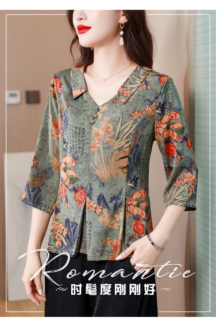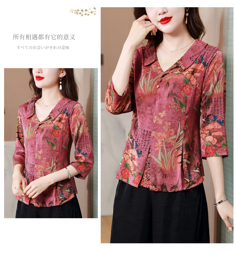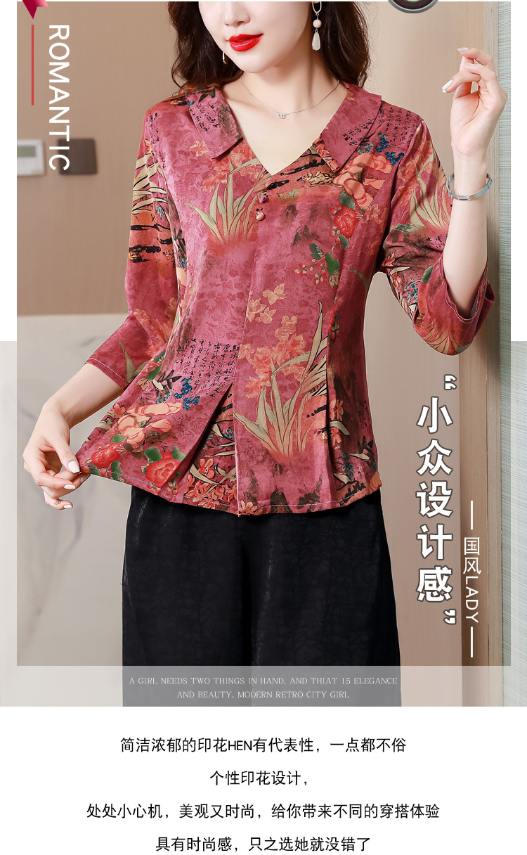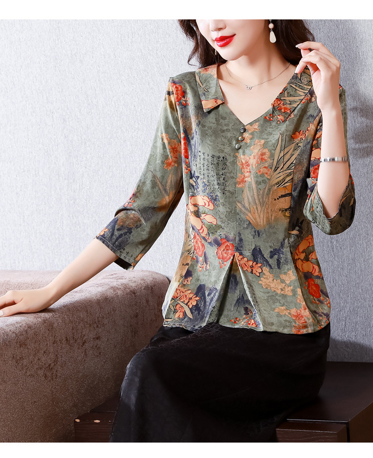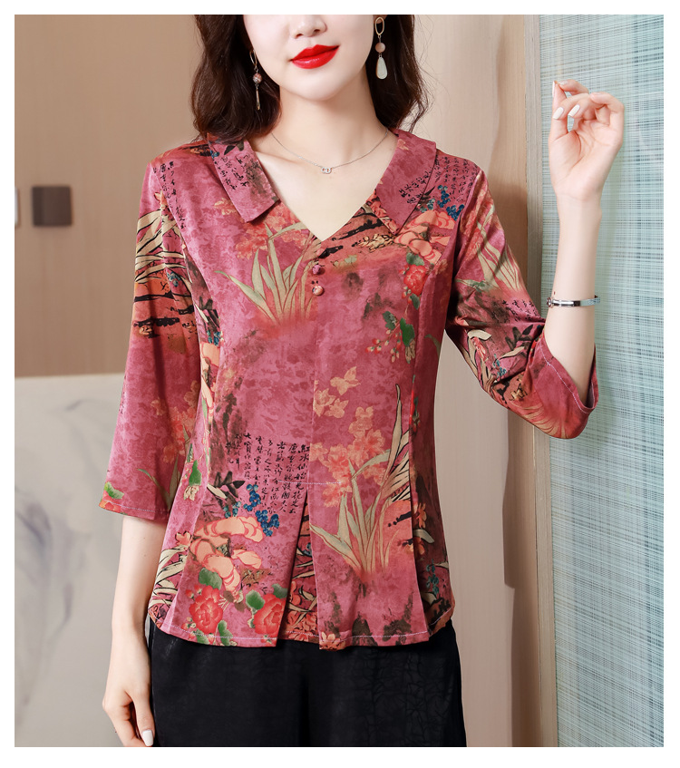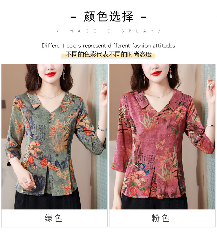 V领七分袖娃娃领,显瘦遮肚子减龄上衣KQL-H1909