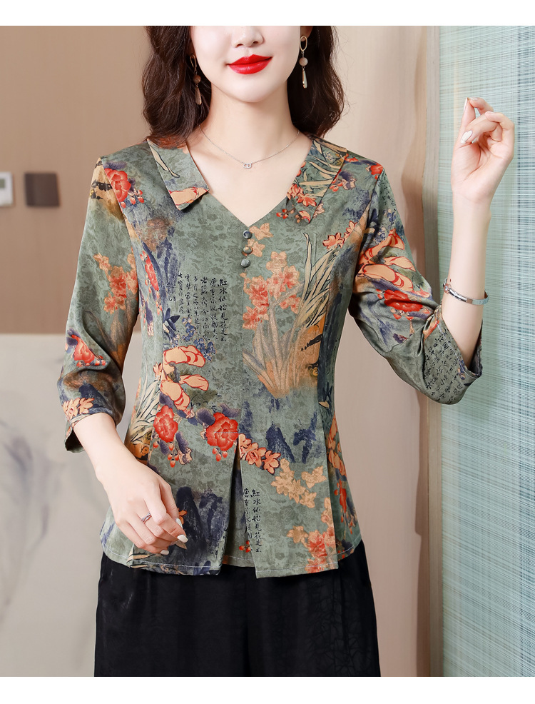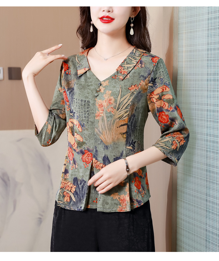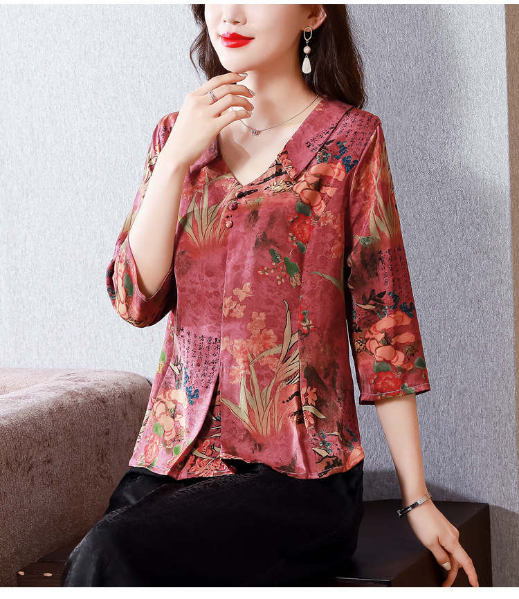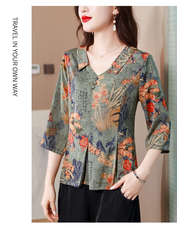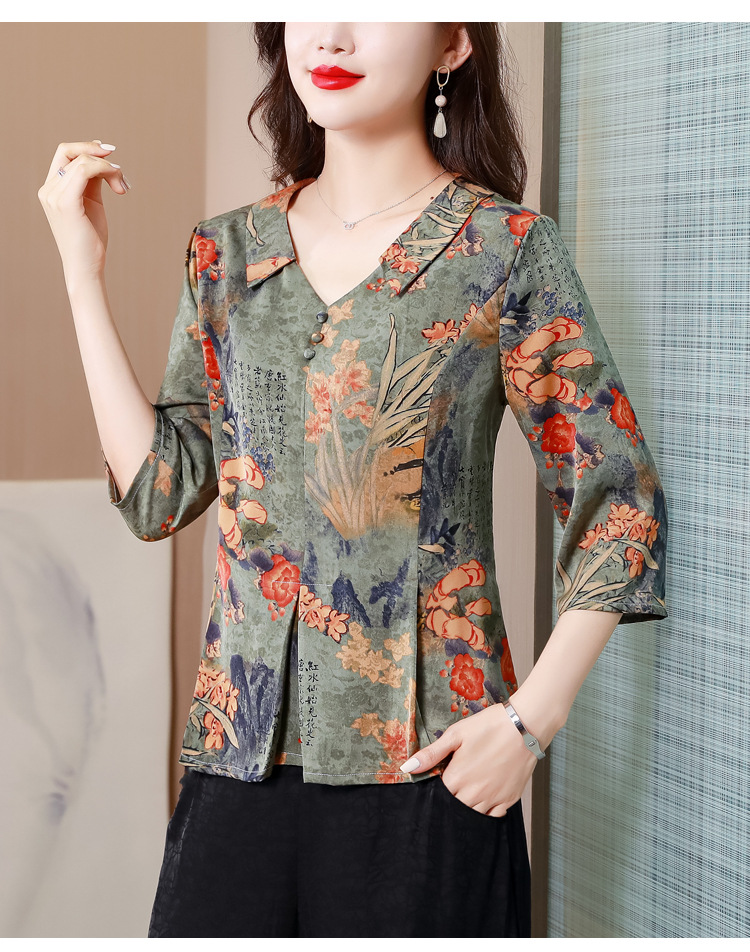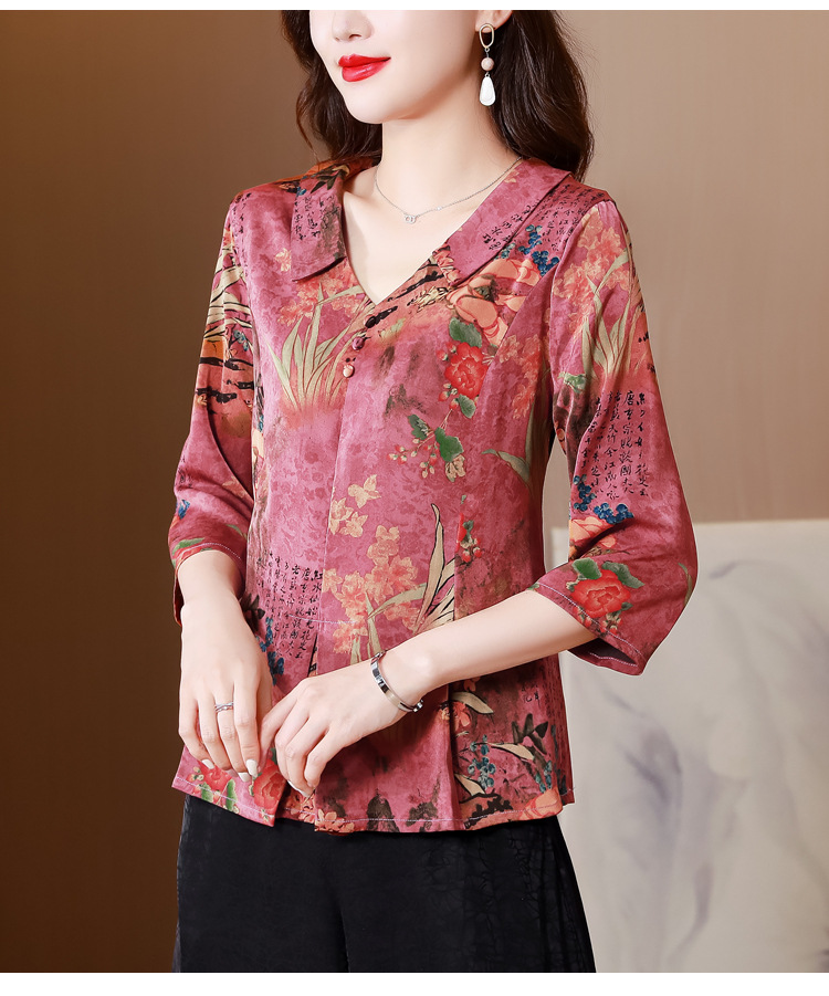 V领七分袖娃娃领,显瘦遮肚子减龄上衣KQL-H1909
