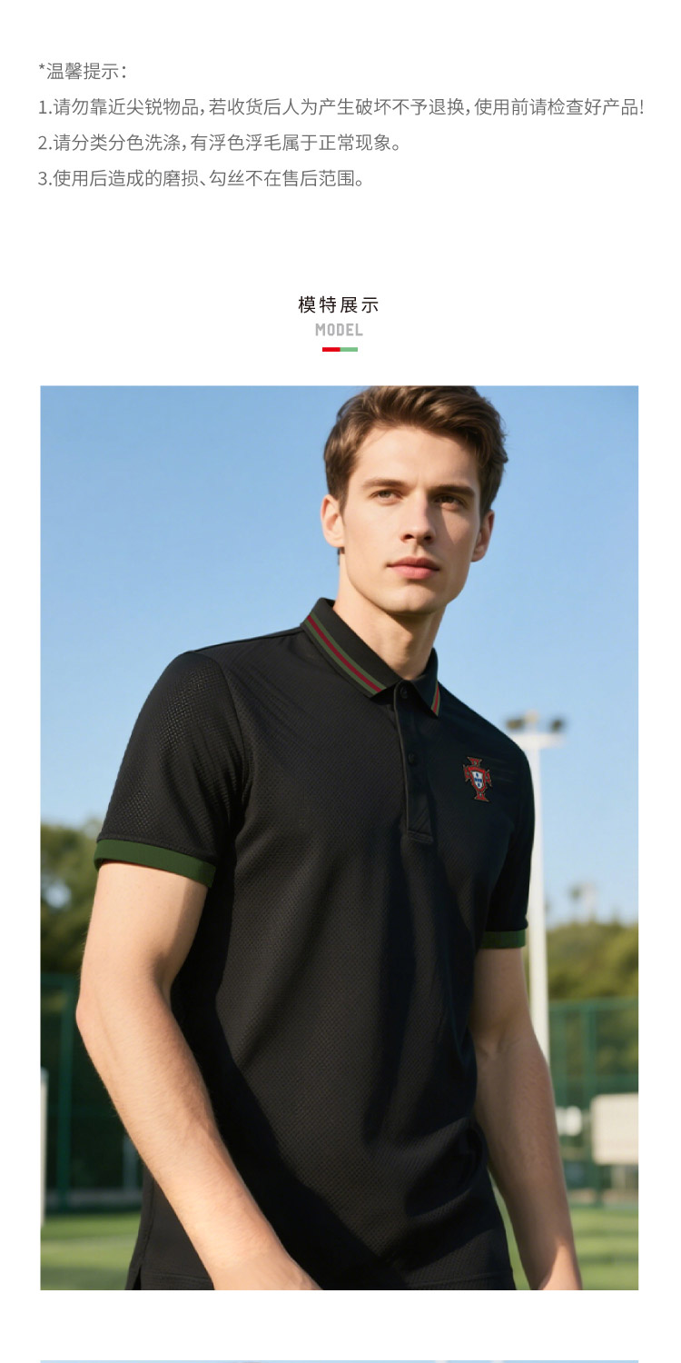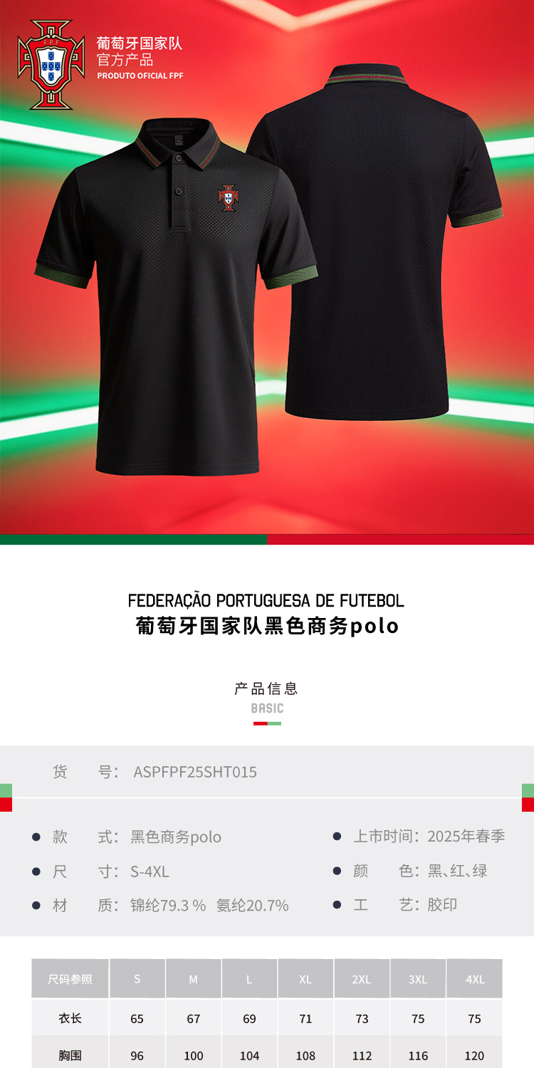 【官方正版】葡萄牙国家队 | 黑色商务polo衫短袖绿色螺纹袖口