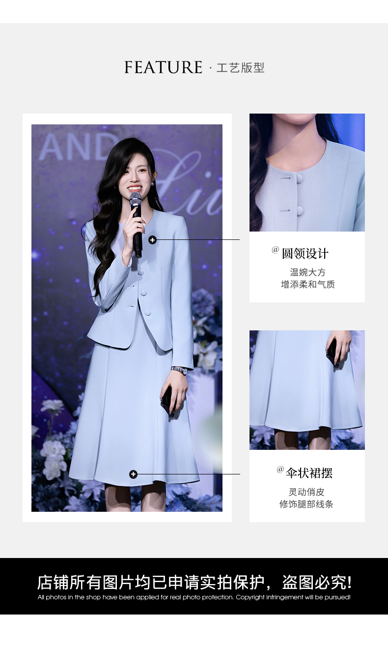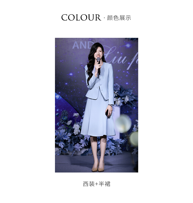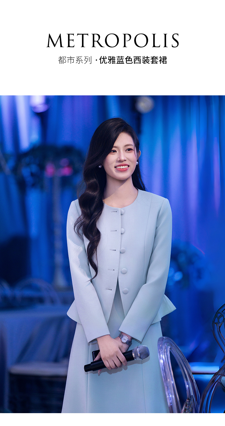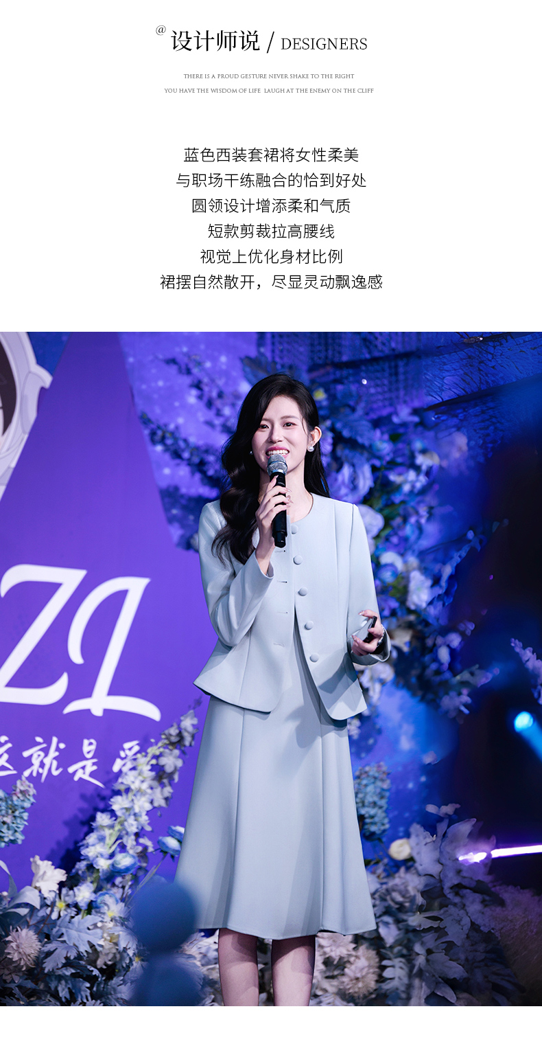 法小曼*子珍专款/秋冬新款气质蓝色主持人女士职业西服套装C2345Q1440