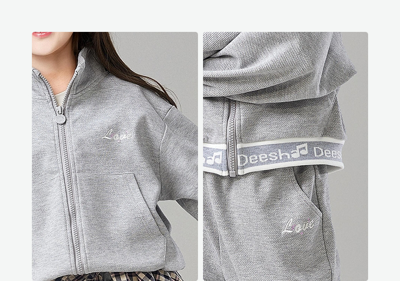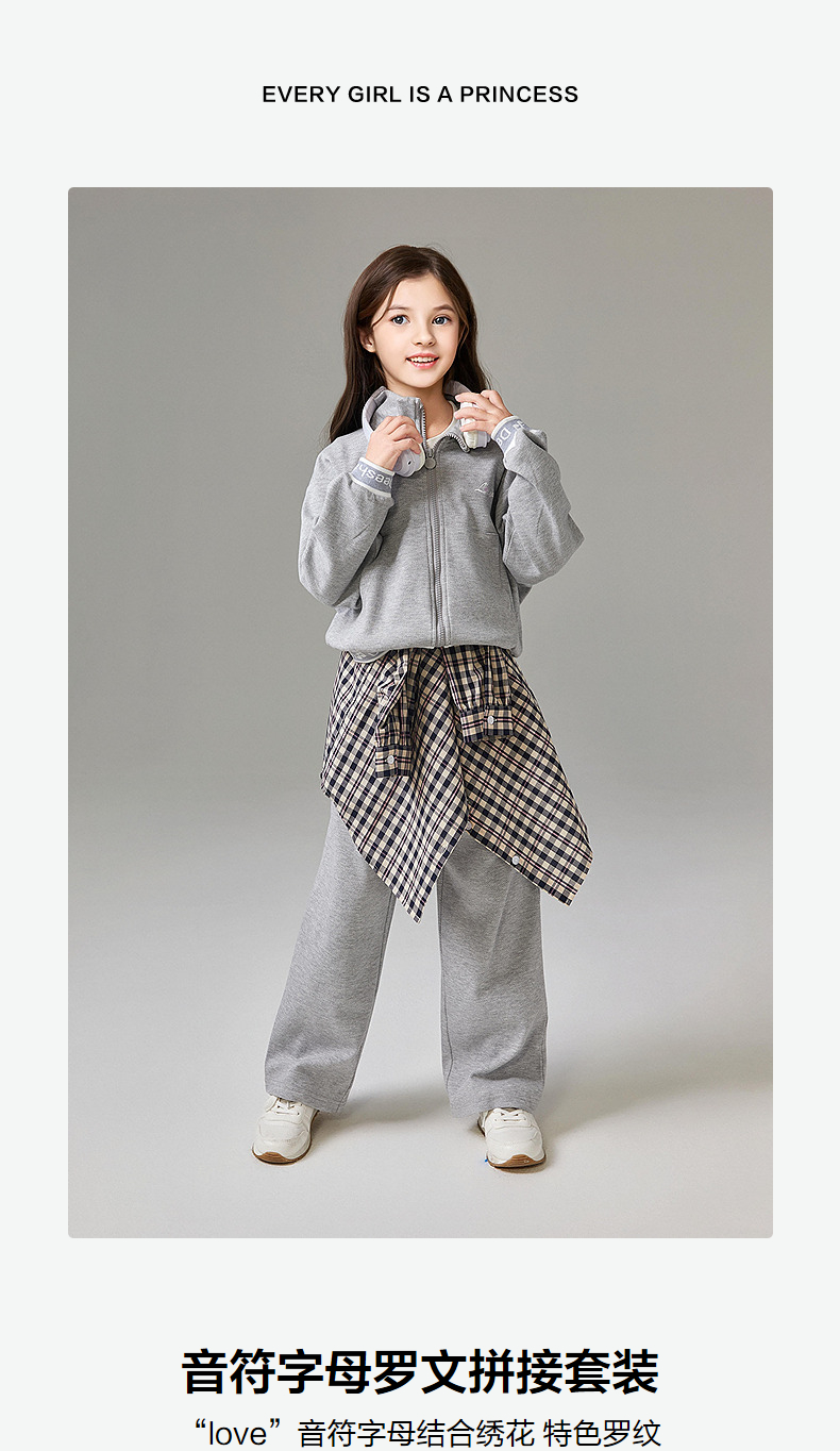 笛莎Deesha 童装女童套装2025春新款音符字母罗文拼接套装