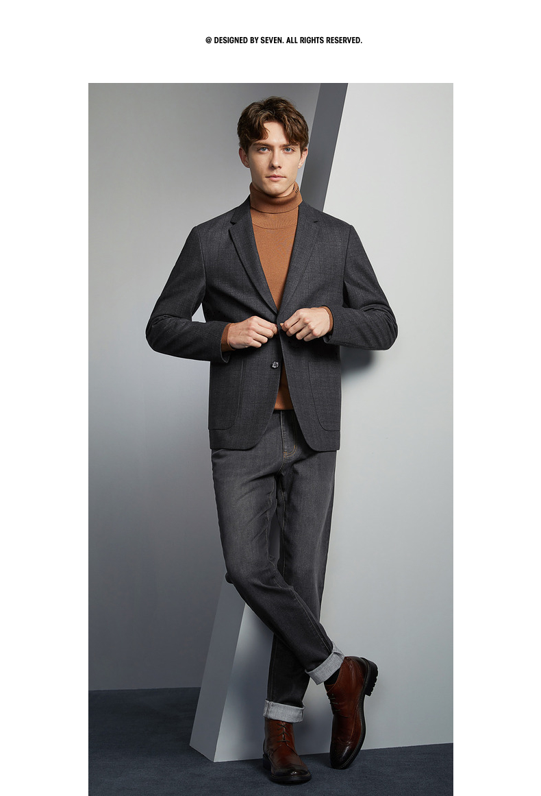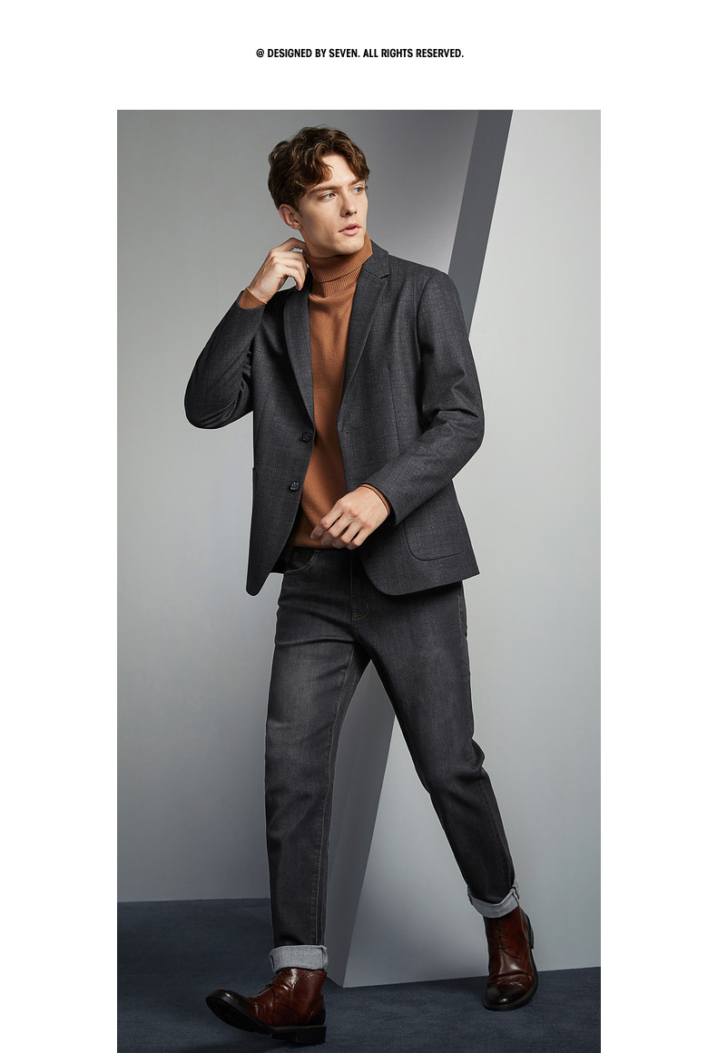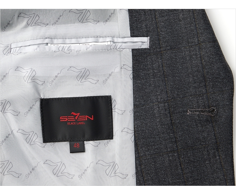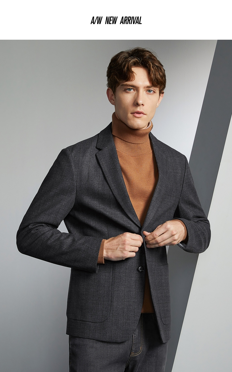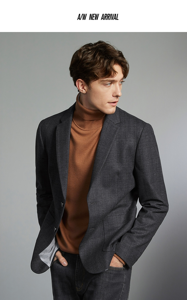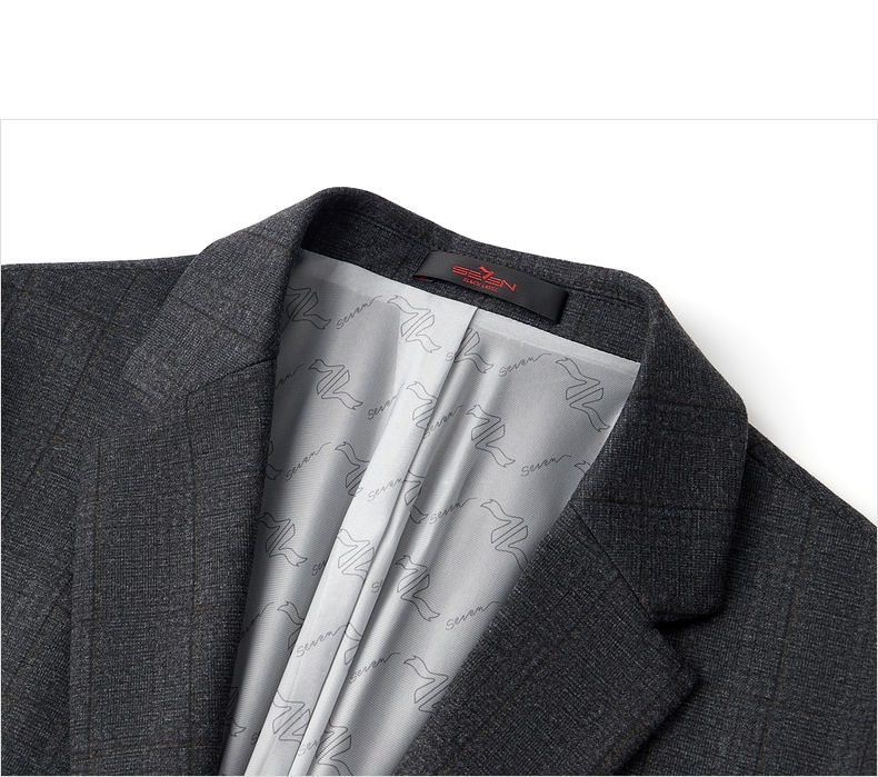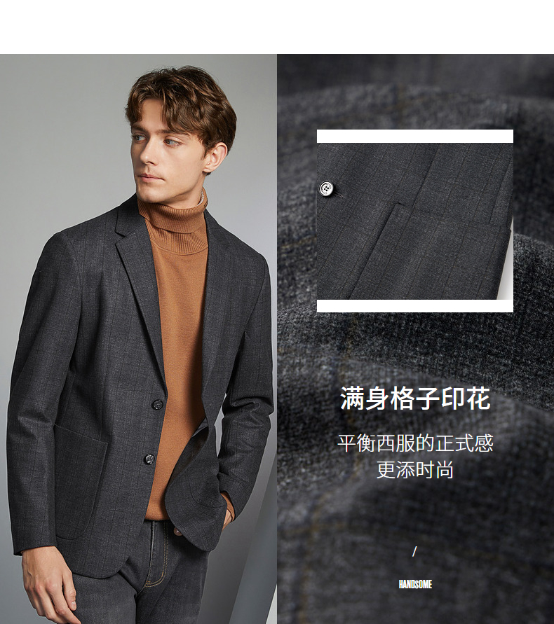 【特价】【含羊毛】柒牌男装格纹单西装男士秋冬新款灰色修身西服外套 125C70440
