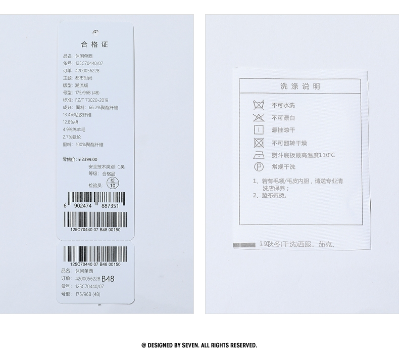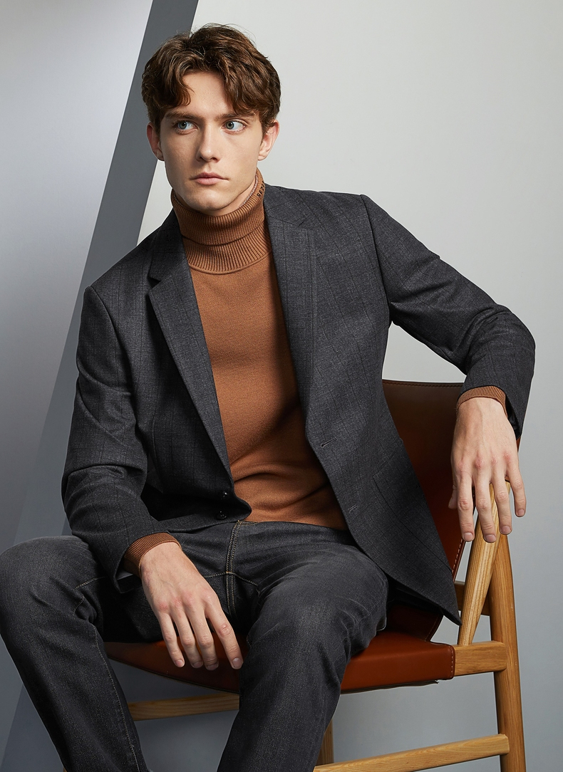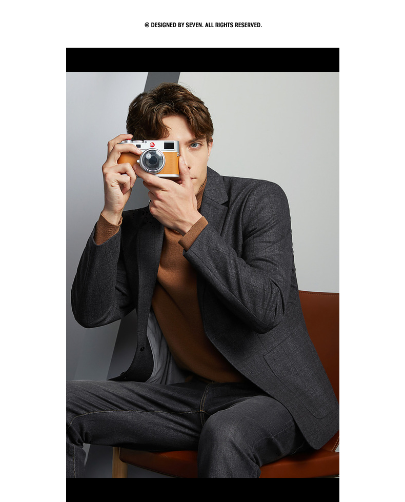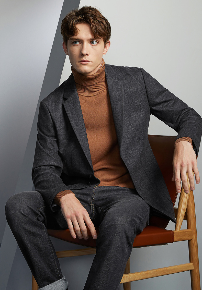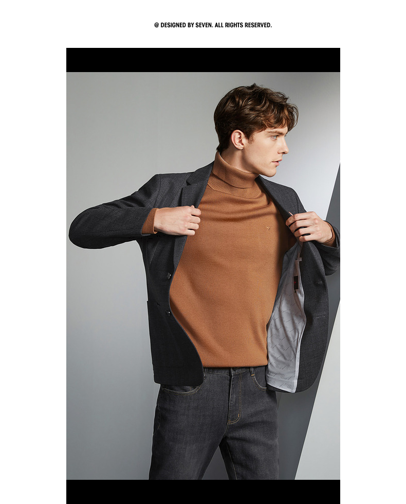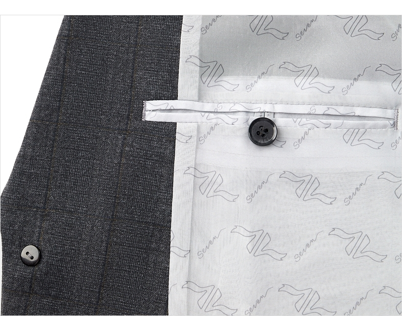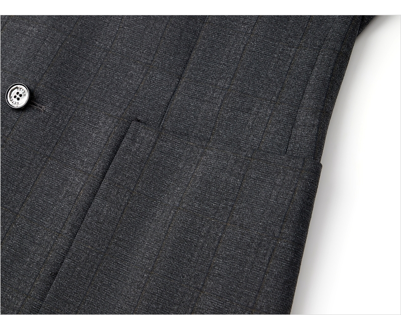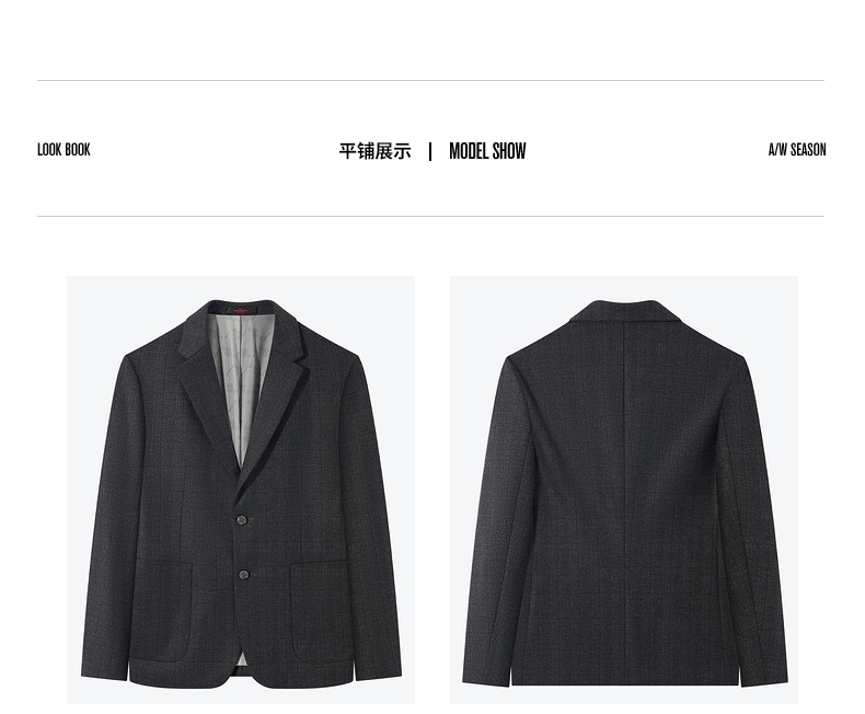 【特价】【含羊毛】柒牌男装格纹单西装男士秋冬新款灰色修身西服外套 125C70440