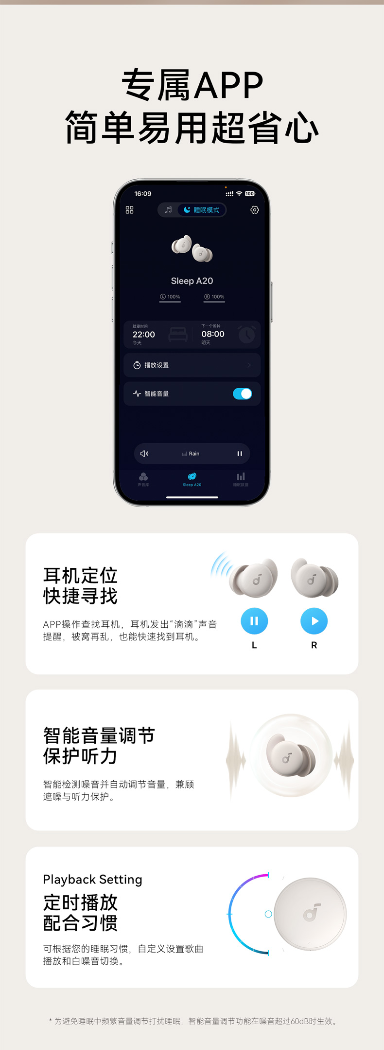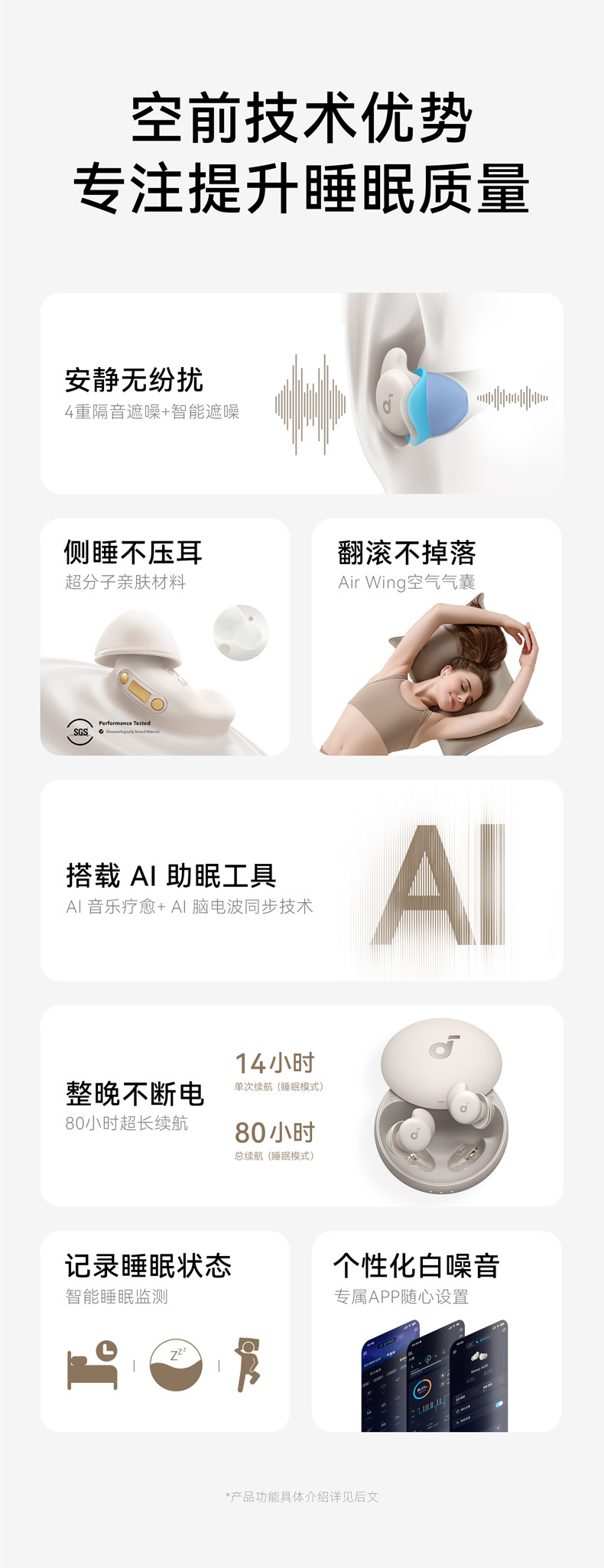 声阔Sleep A20睡眠耳机专用睡觉可侧睡不痛长续航 A6611
