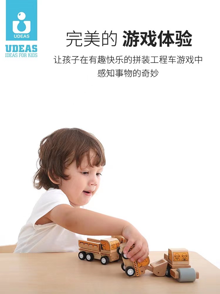【会员兑换】摩伽儿童工程车套装系列挖掘机玩具车挖土机混凝土搅拌车吊车木制男孩