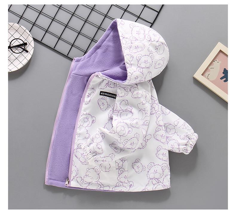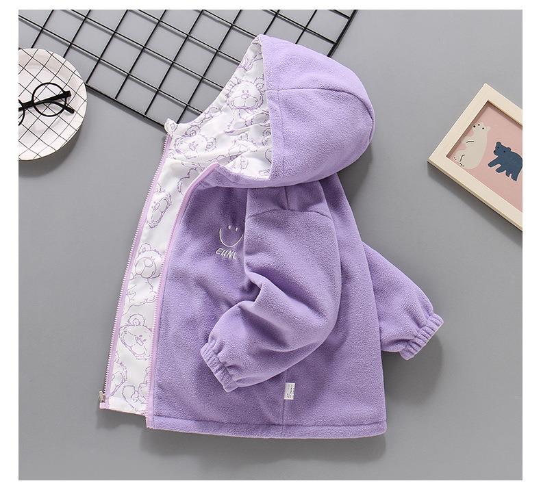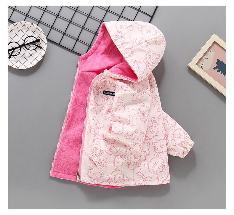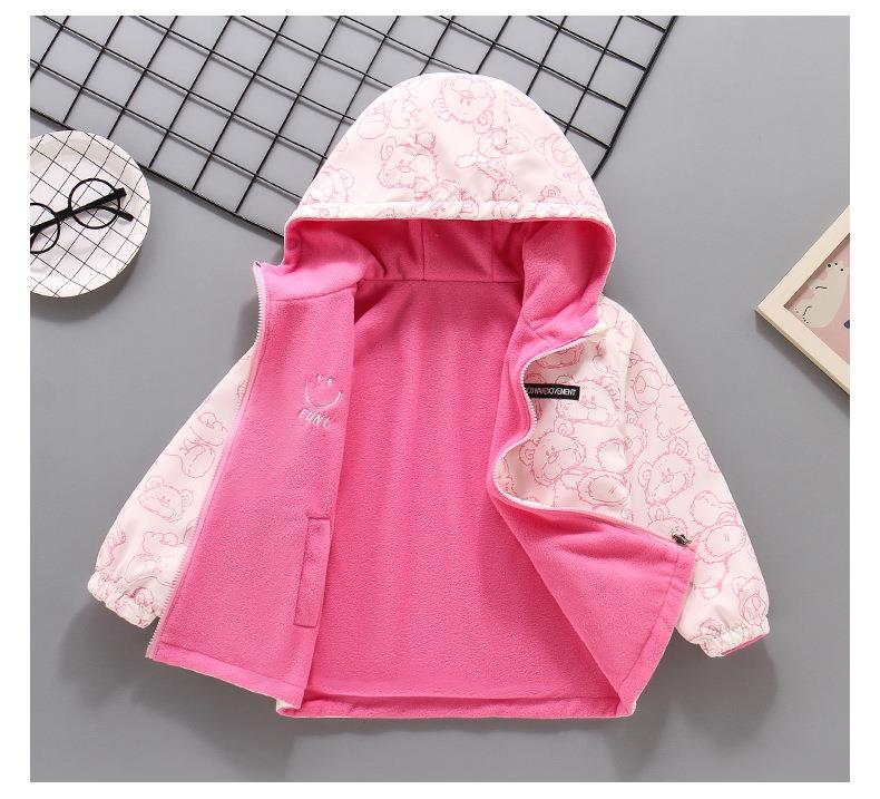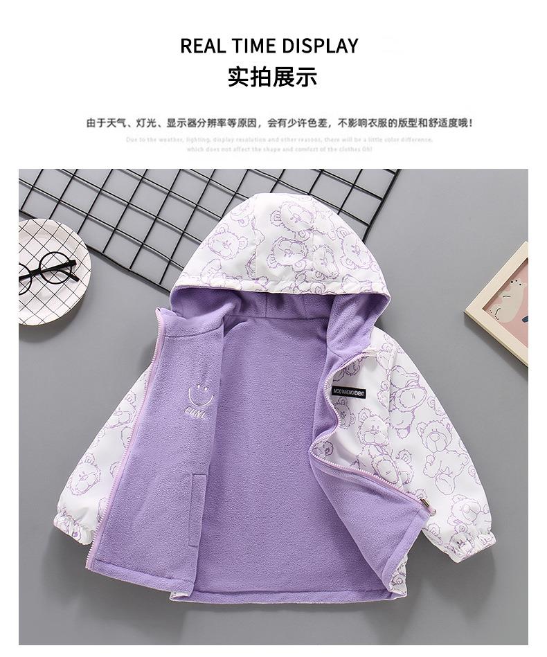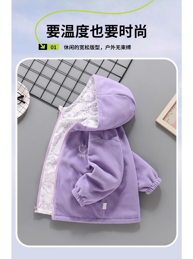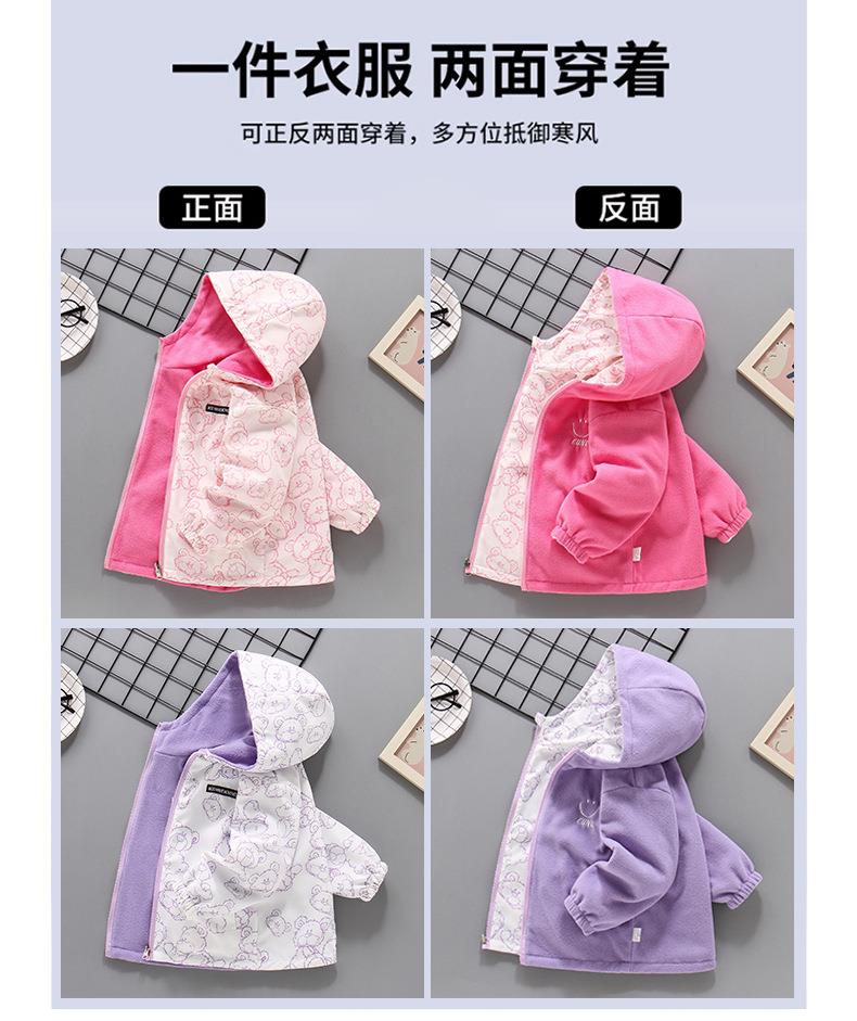 2025新款摇粒绒春秋装加绒女孩薄绒风衣 女童冲锋衣外套双面可穿