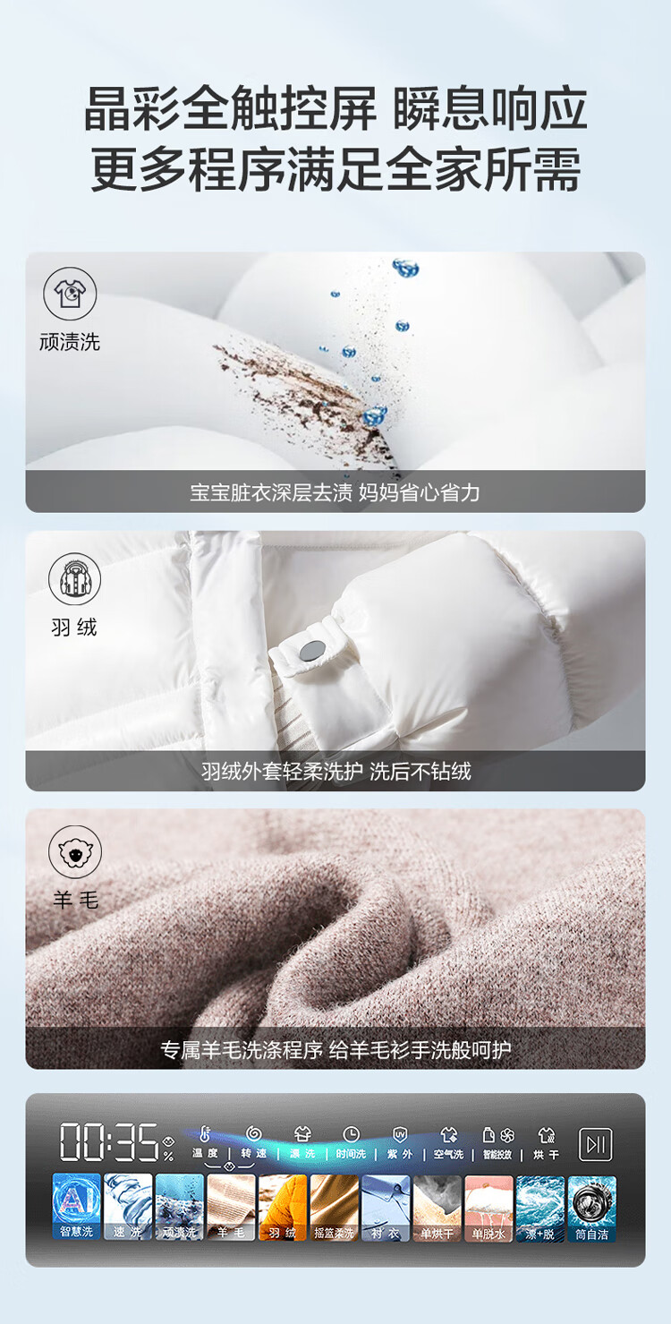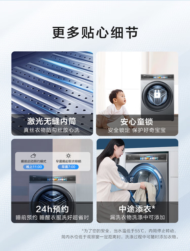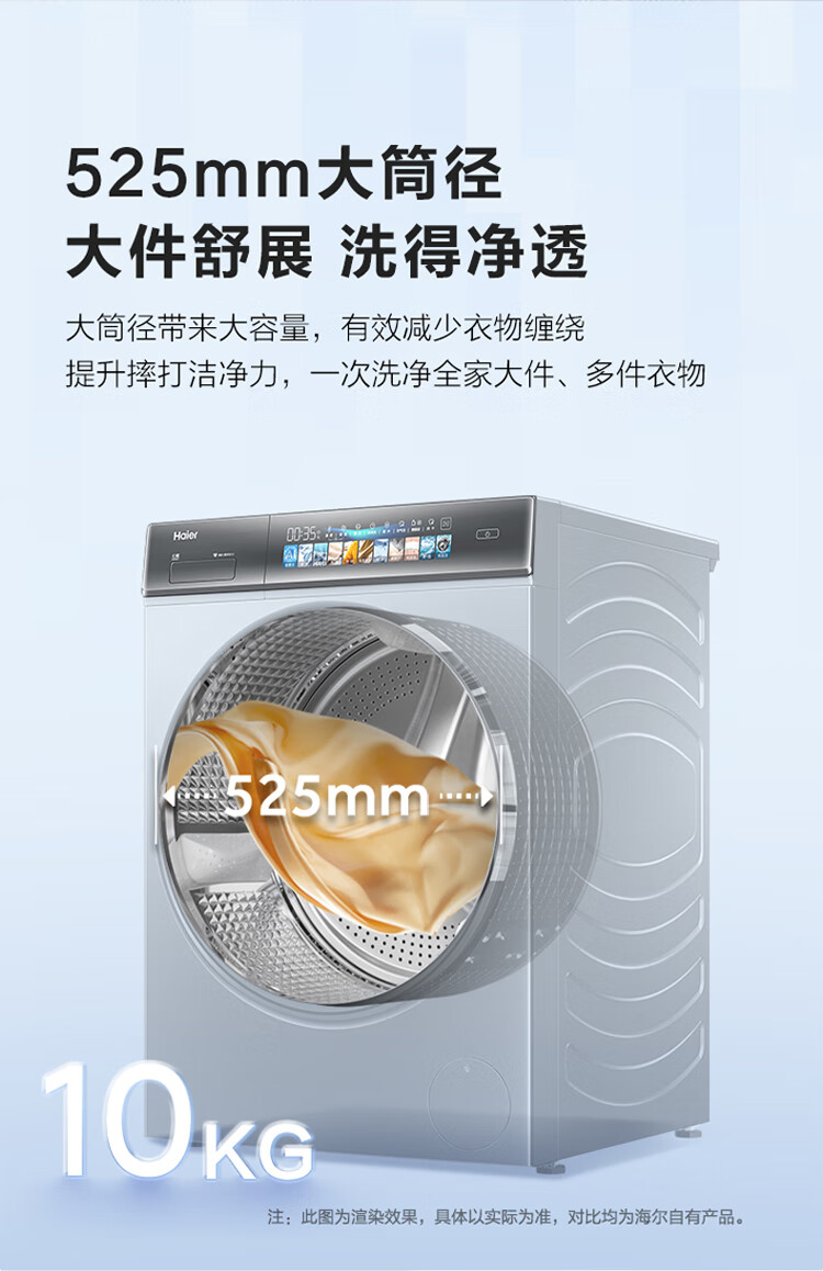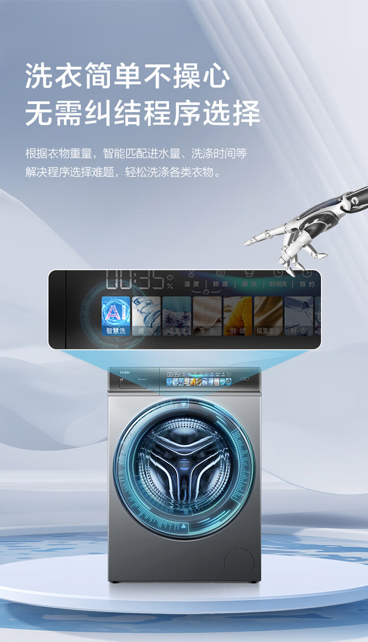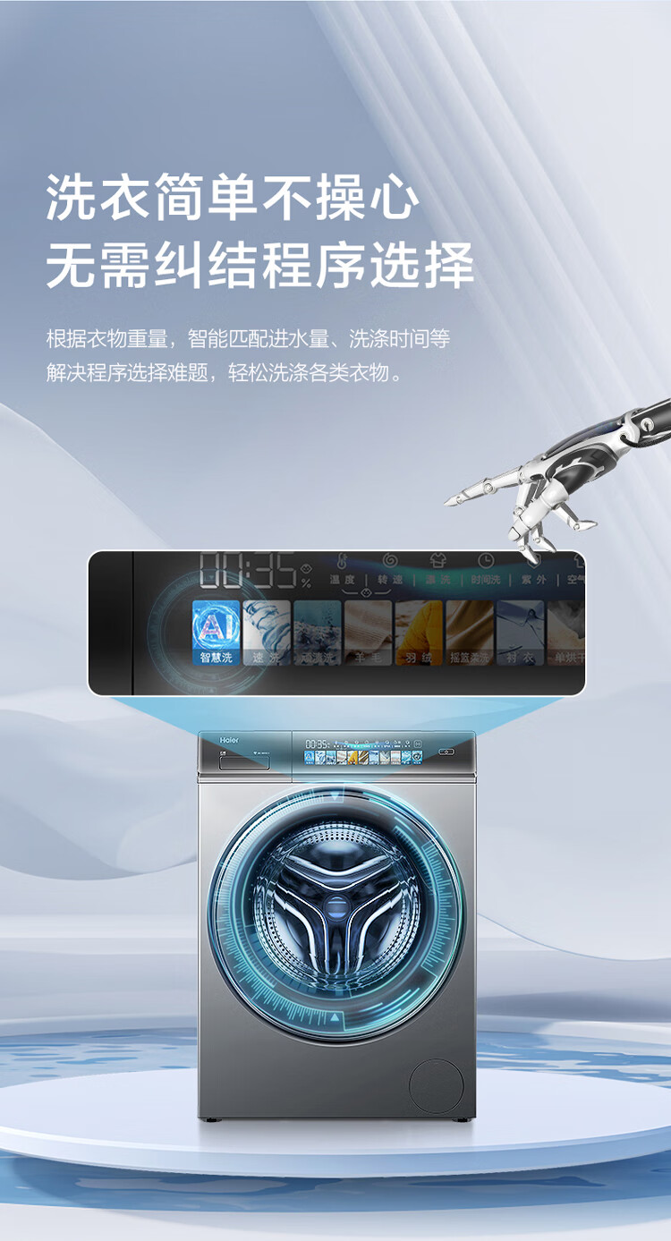 【精华洗】海尔精华洗晶彩屏078直驱洗衣机超薄平嵌大容量巴除菌全自动洗衣机 洗烘一体+双智投+全触屏G10078HBD14LS