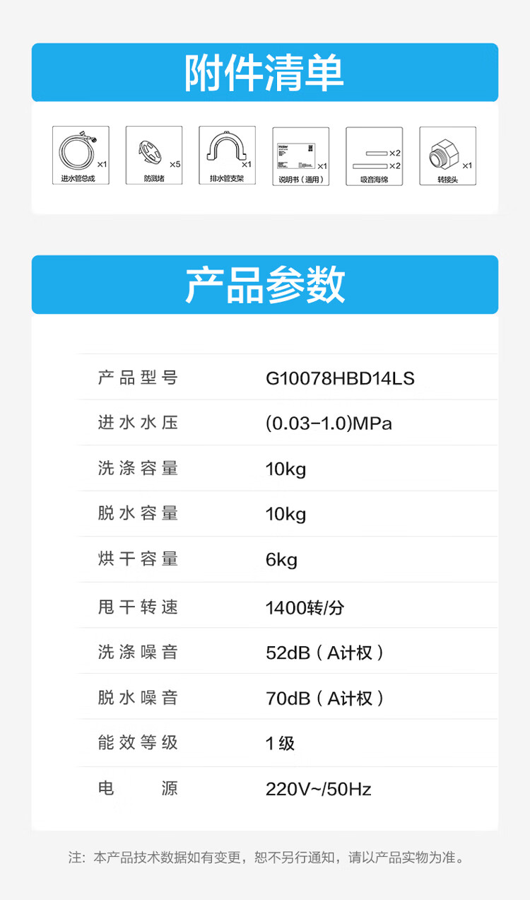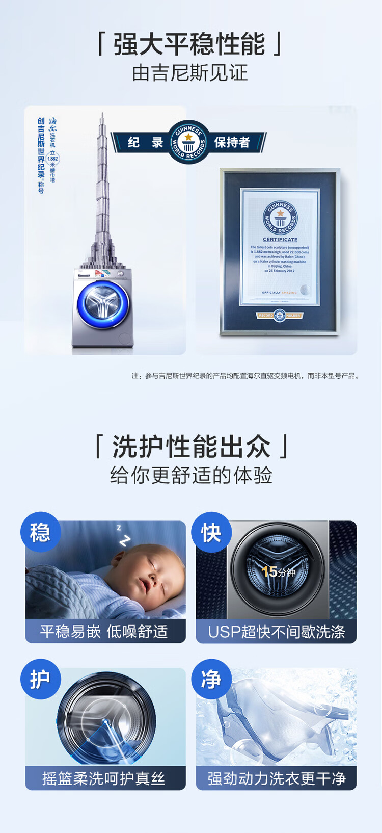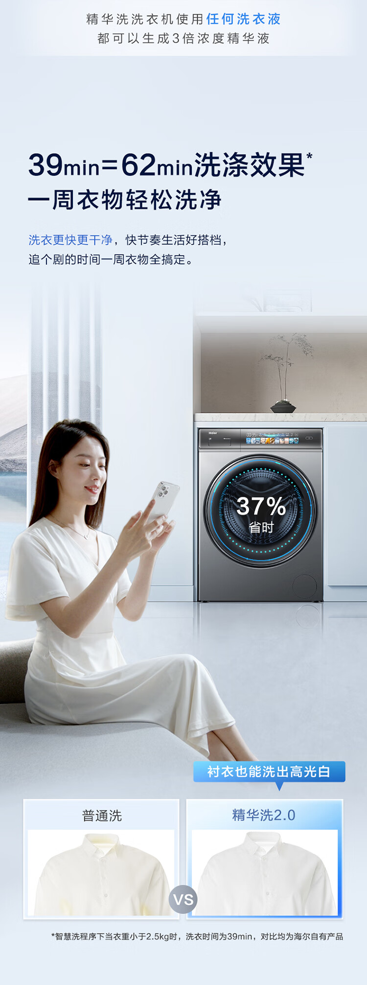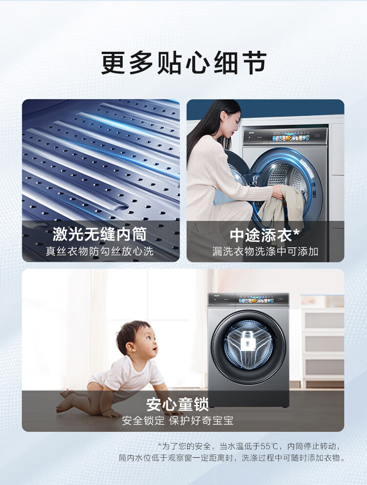 【精华洗】海尔精华洗晶彩屏078直驱洗衣机超薄平嵌大容量巴除菌全自动洗衣机 洗烘一体+双智投+全触屏G10078HBD14LS