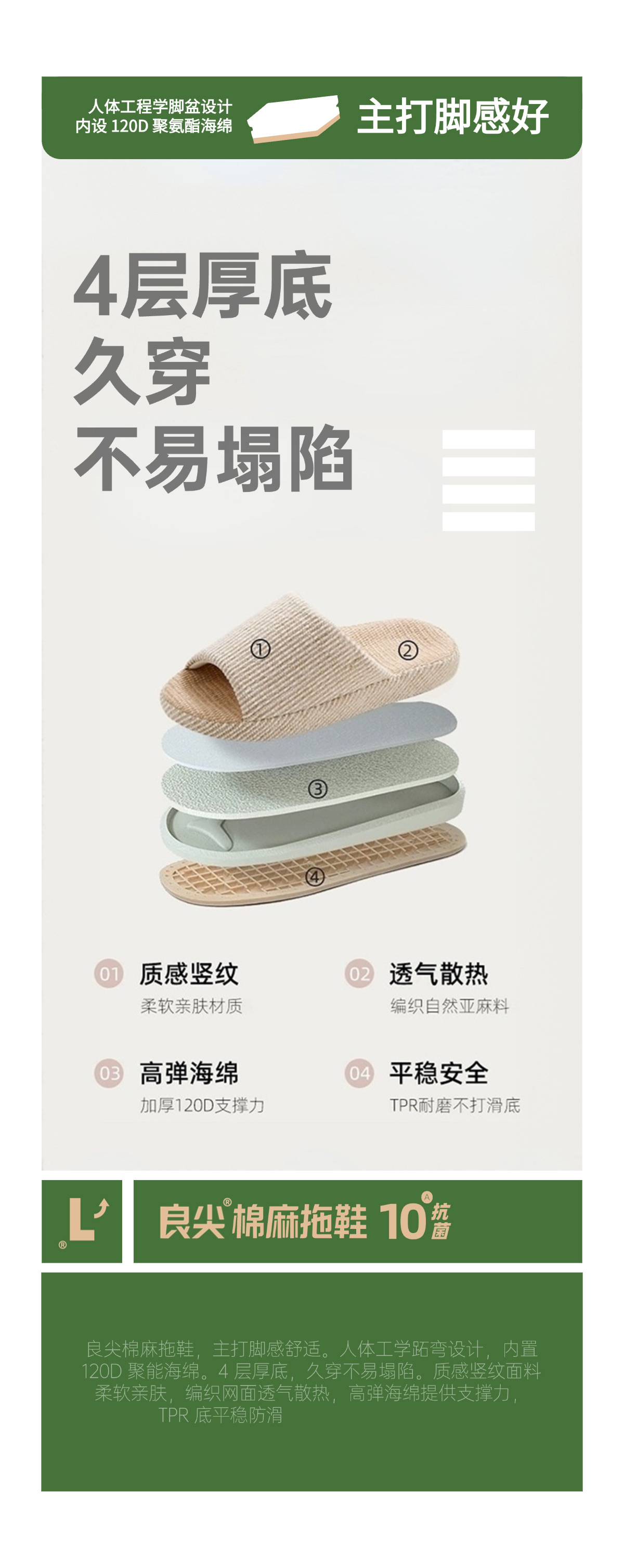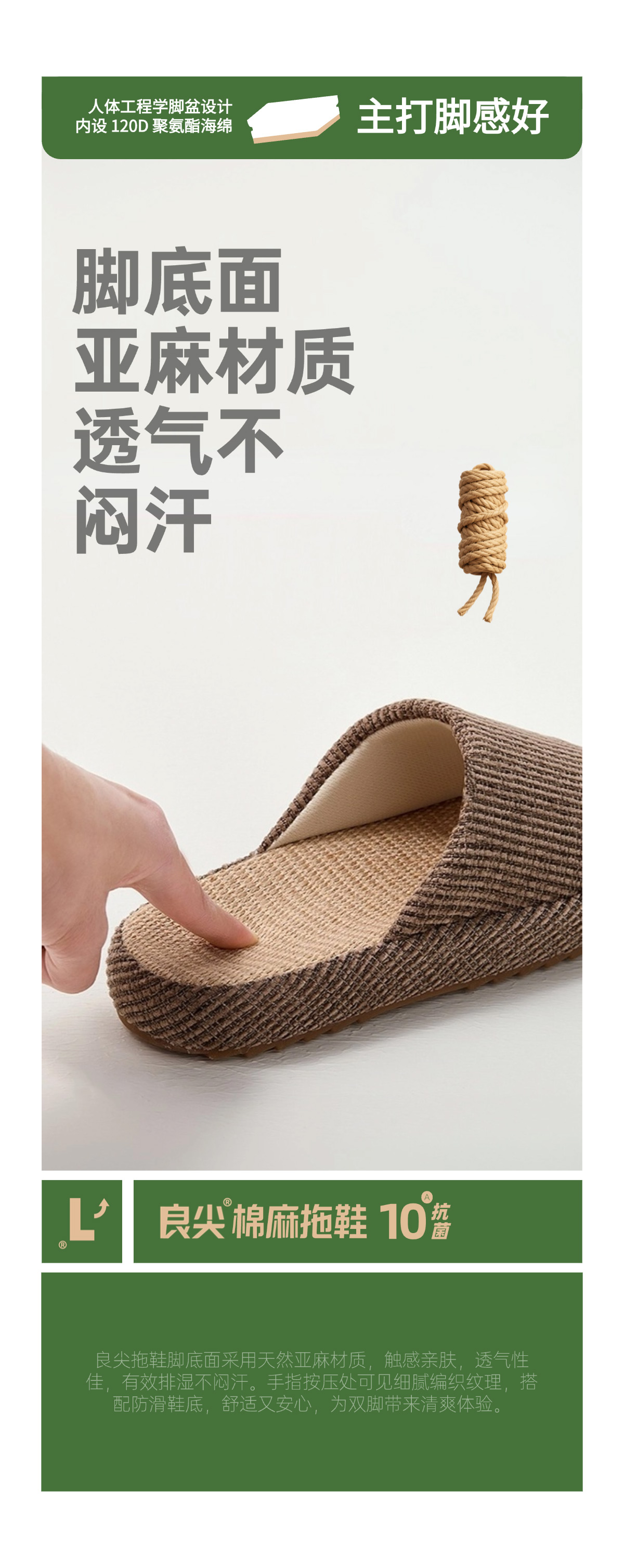 热卖!静音好穿不臭脚!正品良尖棉麻拖鞋 10A抑菌!120D人体工学内置鞋底,脚感舒服 鞋底TPR贴片,防滑耐磨! 男女款